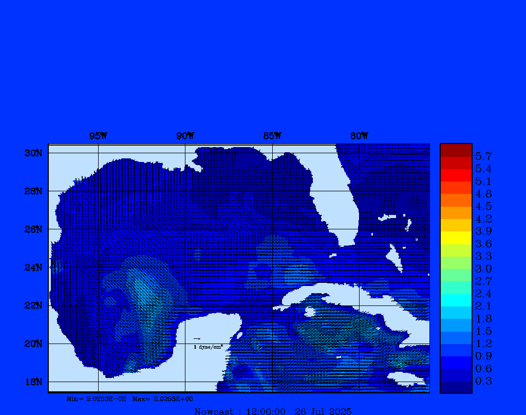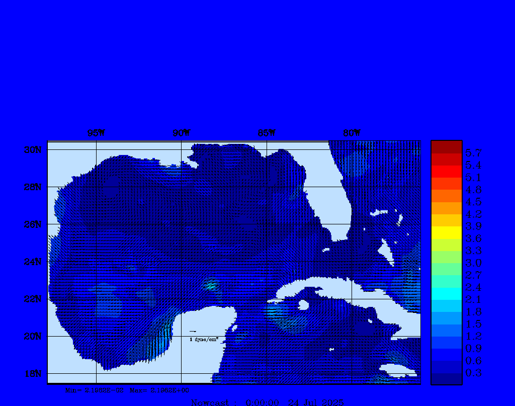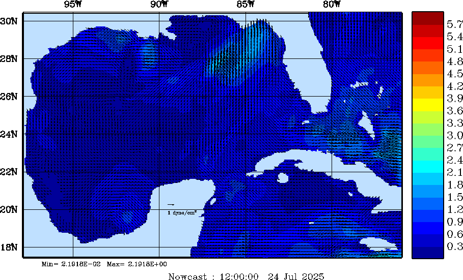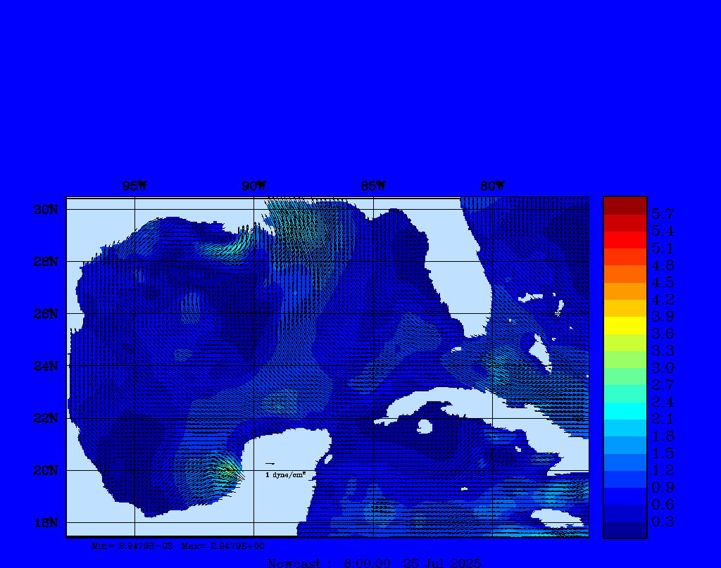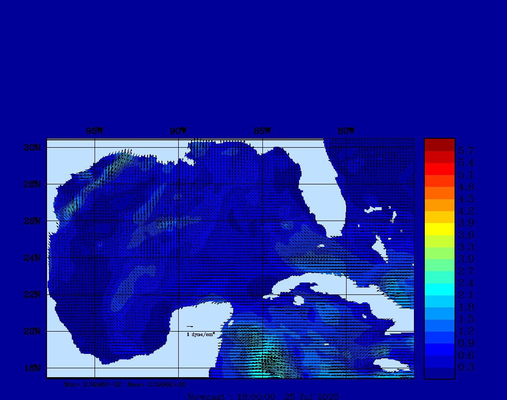 | Wind Stress Snapshots (dynes/cm2); processed by MSEAS from merged NCEP fields |