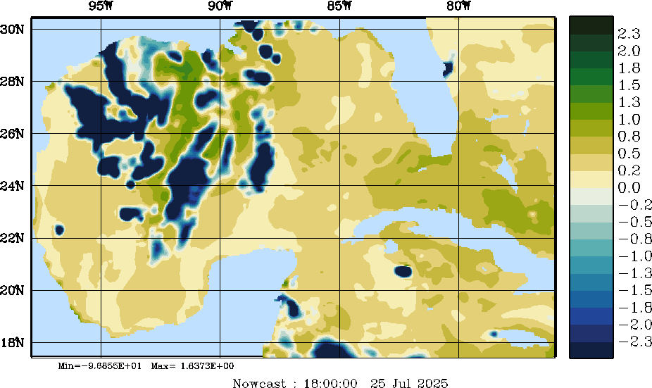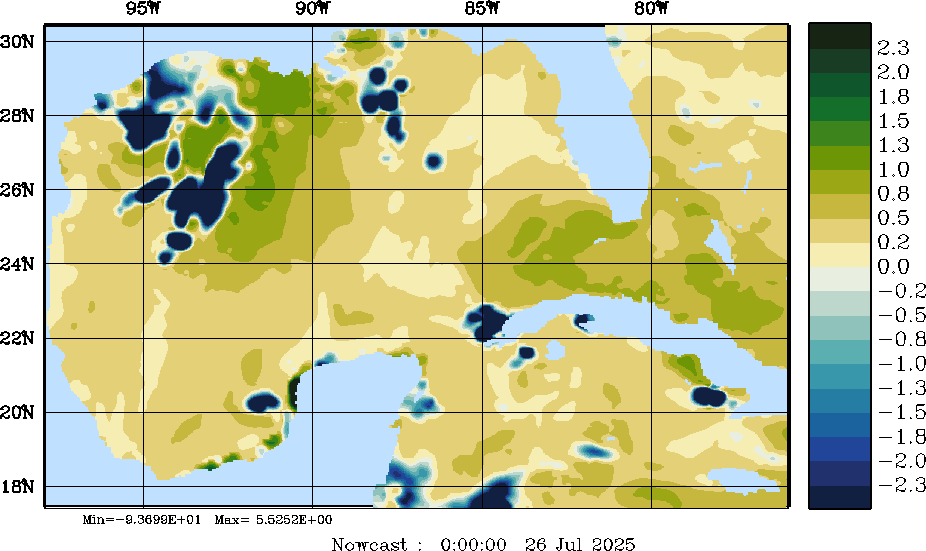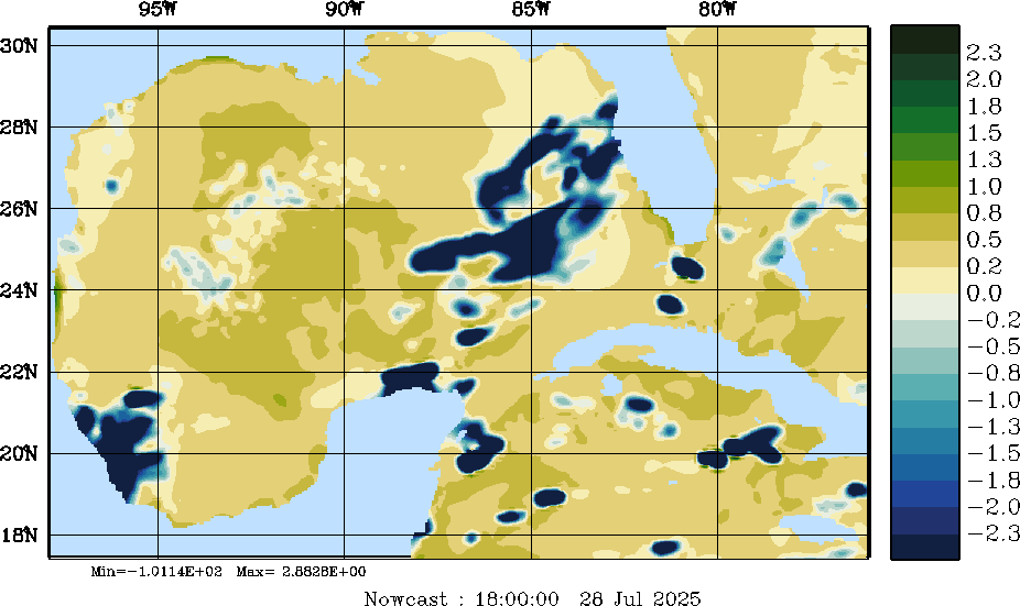| E - P Snapshots (cm/day); processed by MSEAS from merged NCEP fields |