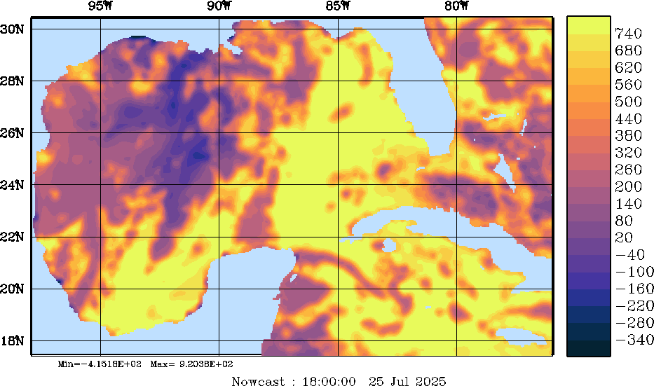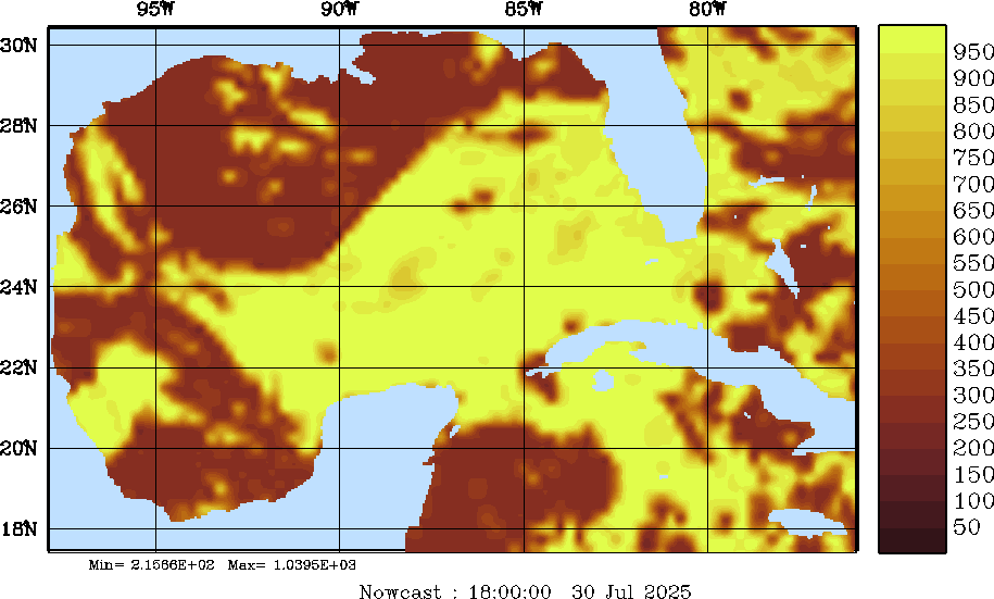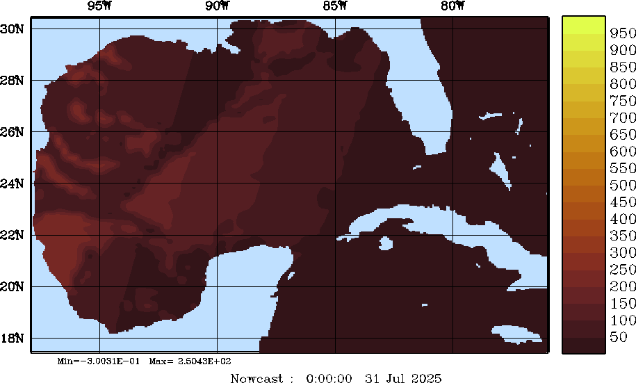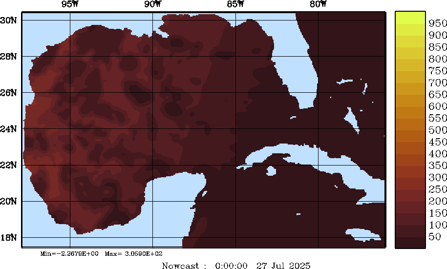 | SW Radiation Snapshots (W/m2); processed by MSEAS from merged NCEP fields |