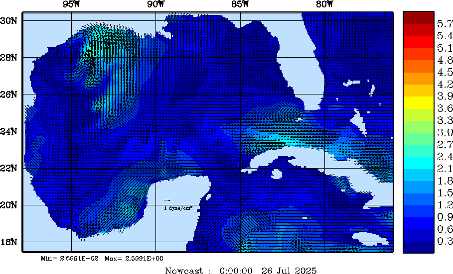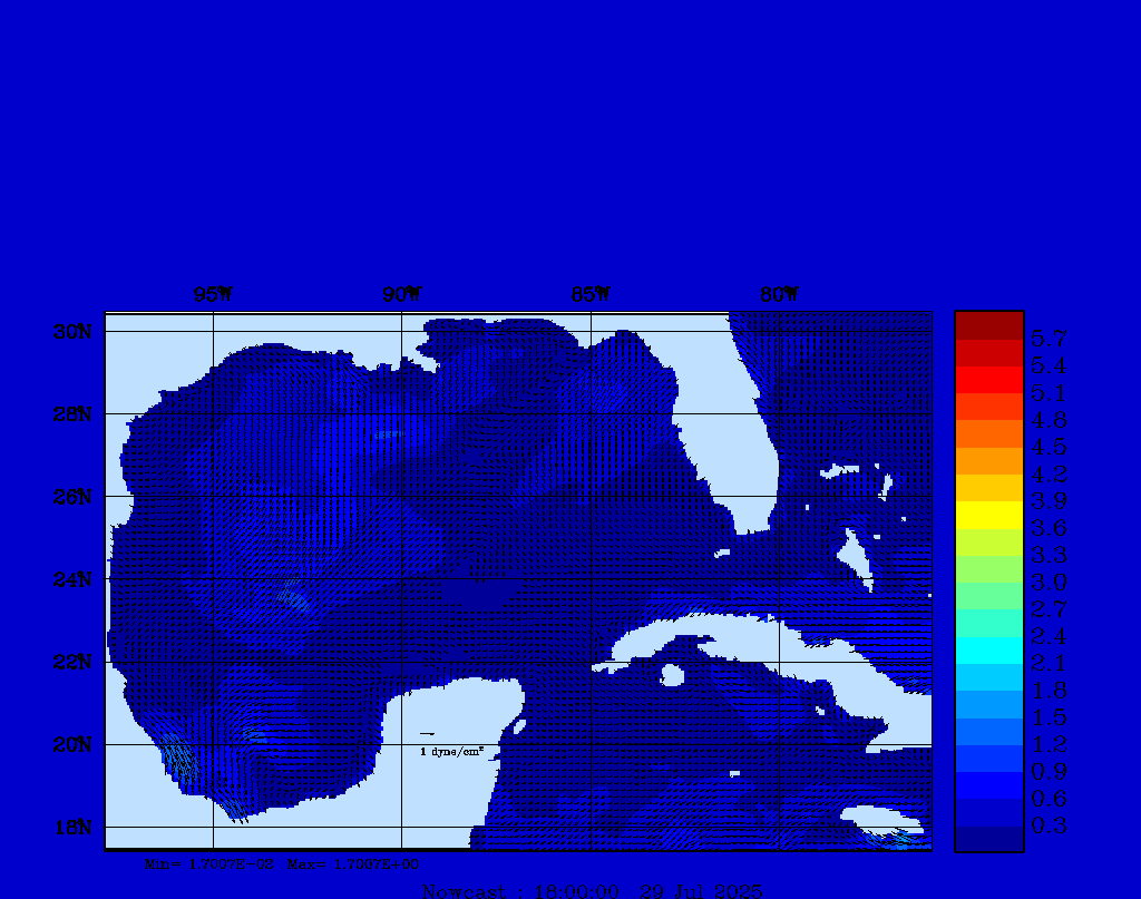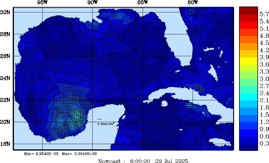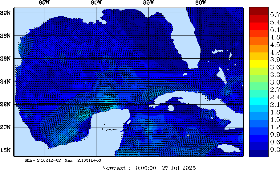 | Wind Stress Snapshots (dynes/cm2); processed by MSEAS from merged NCEP fields |