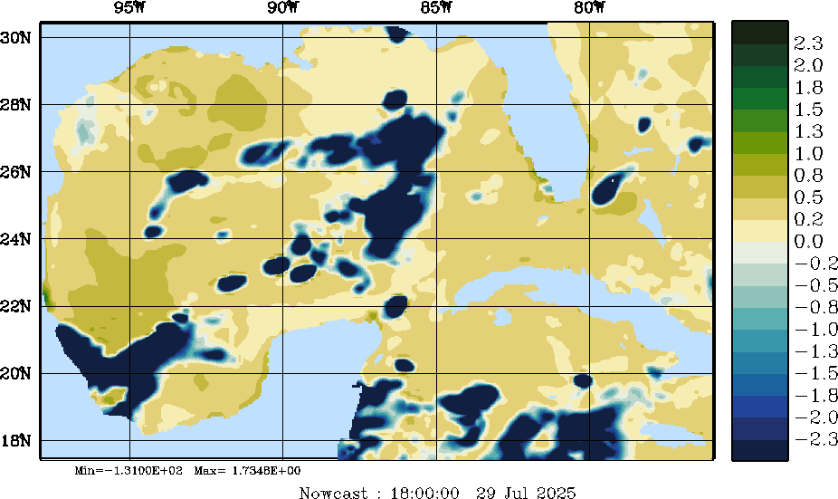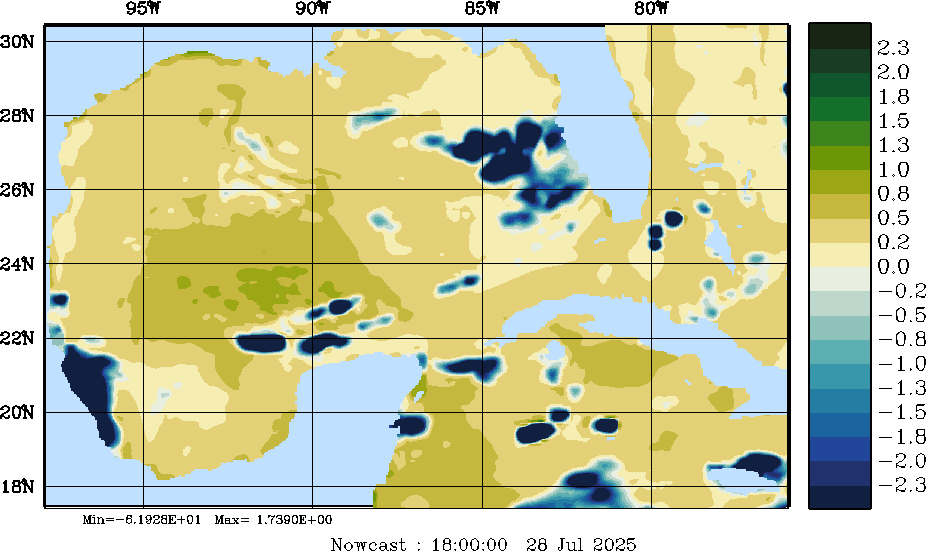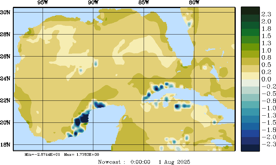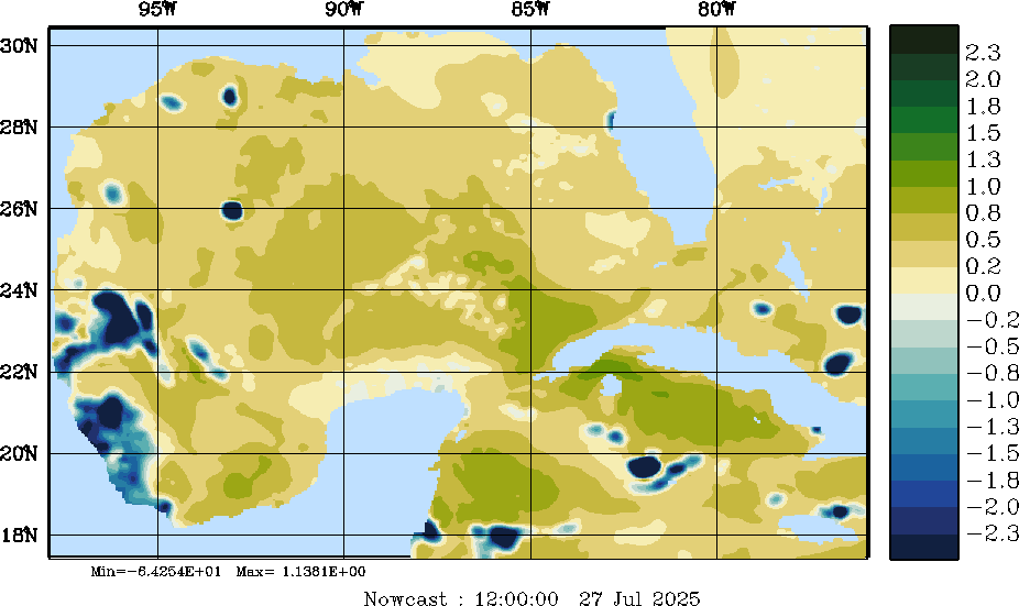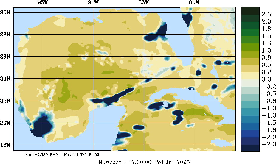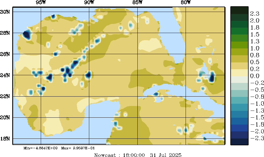 | E - P Snapshots (cm/day); processed by MSEAS from merged NCEP fields |