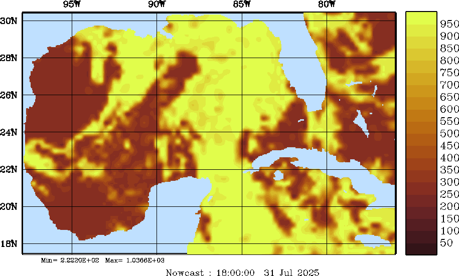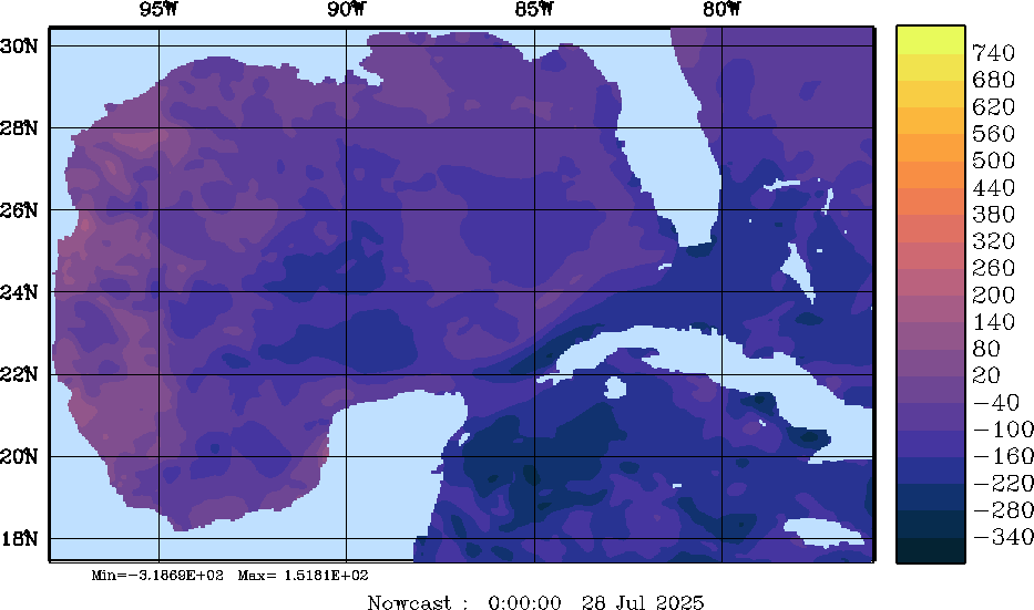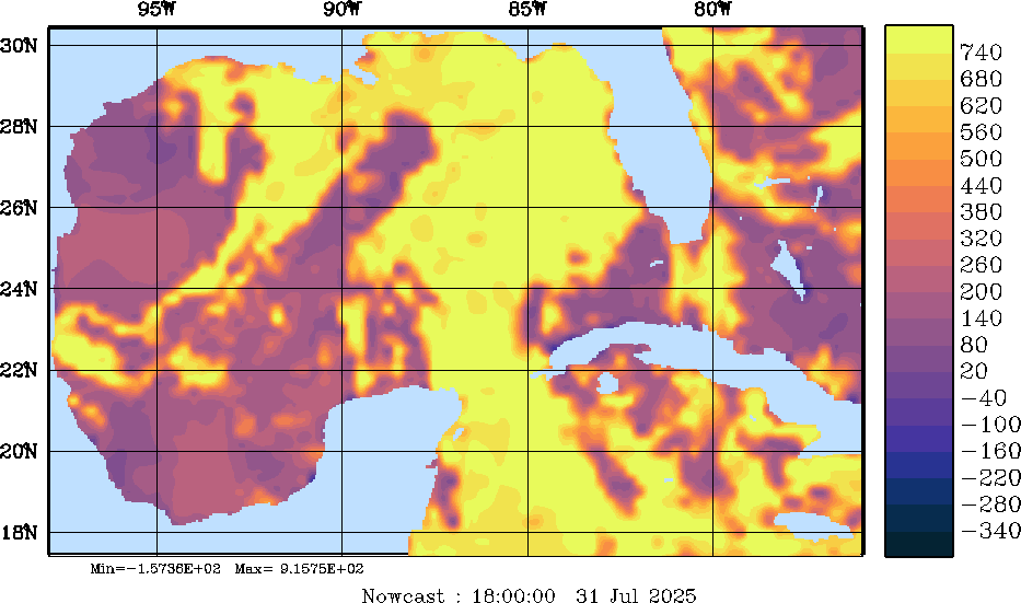 | SW Radiation Snapshots (W/m2); processed by MSEAS from merged NCEP fields |