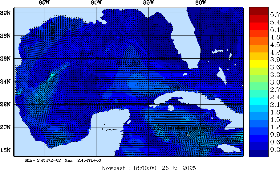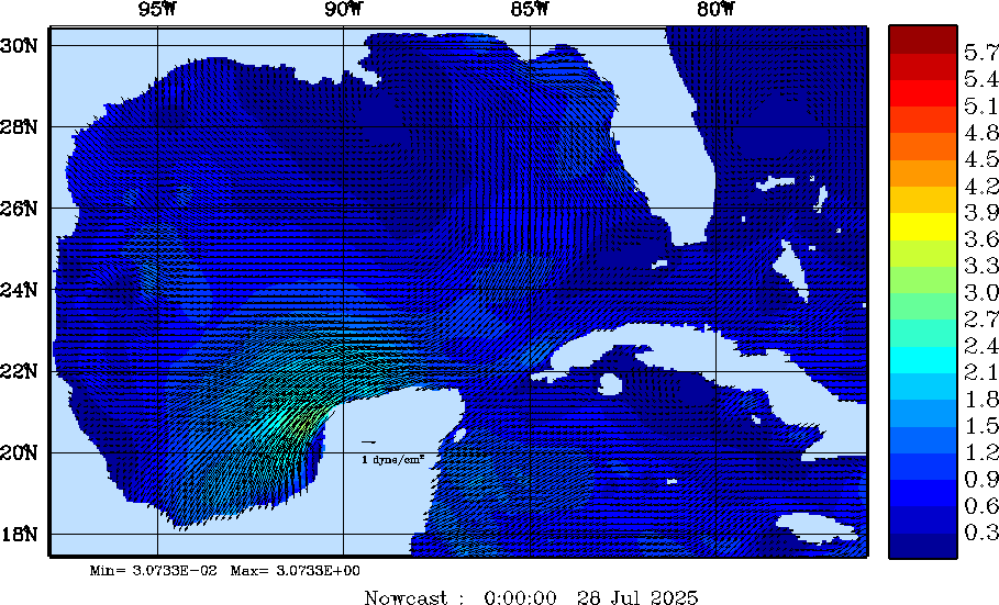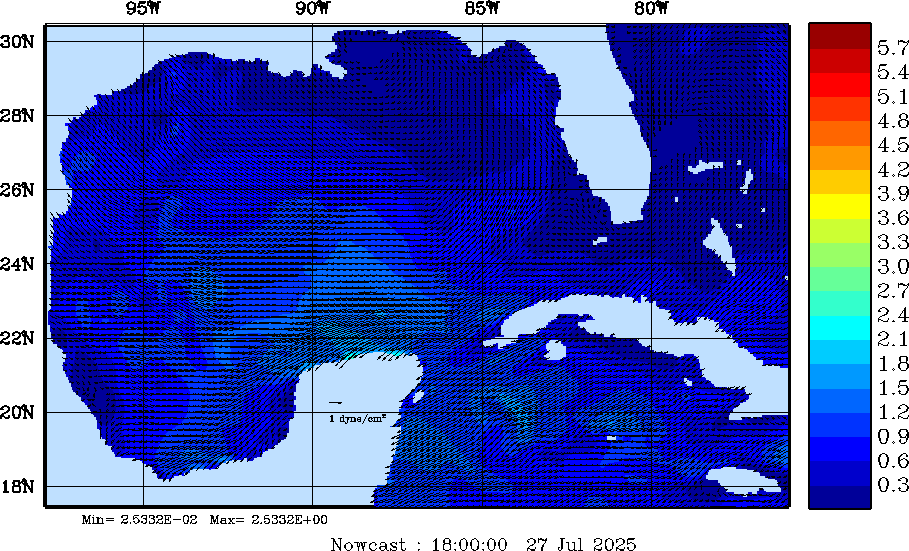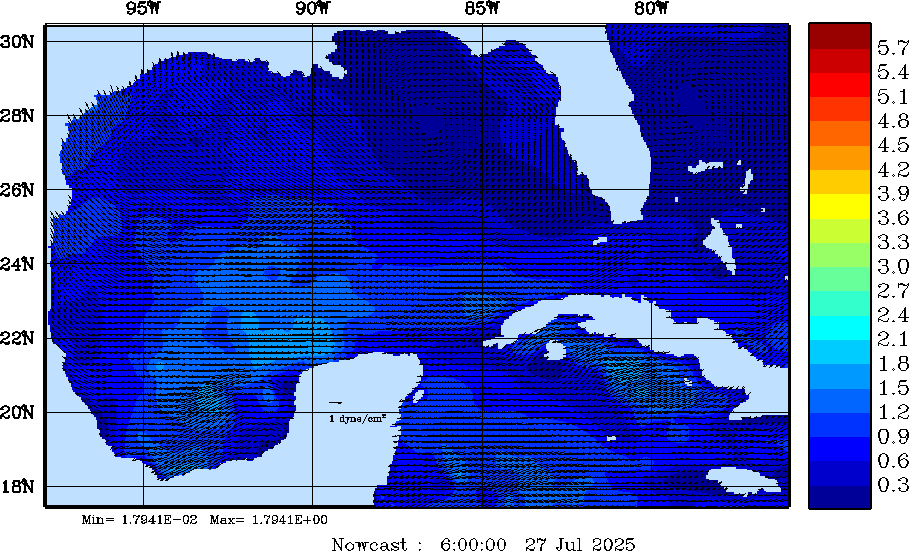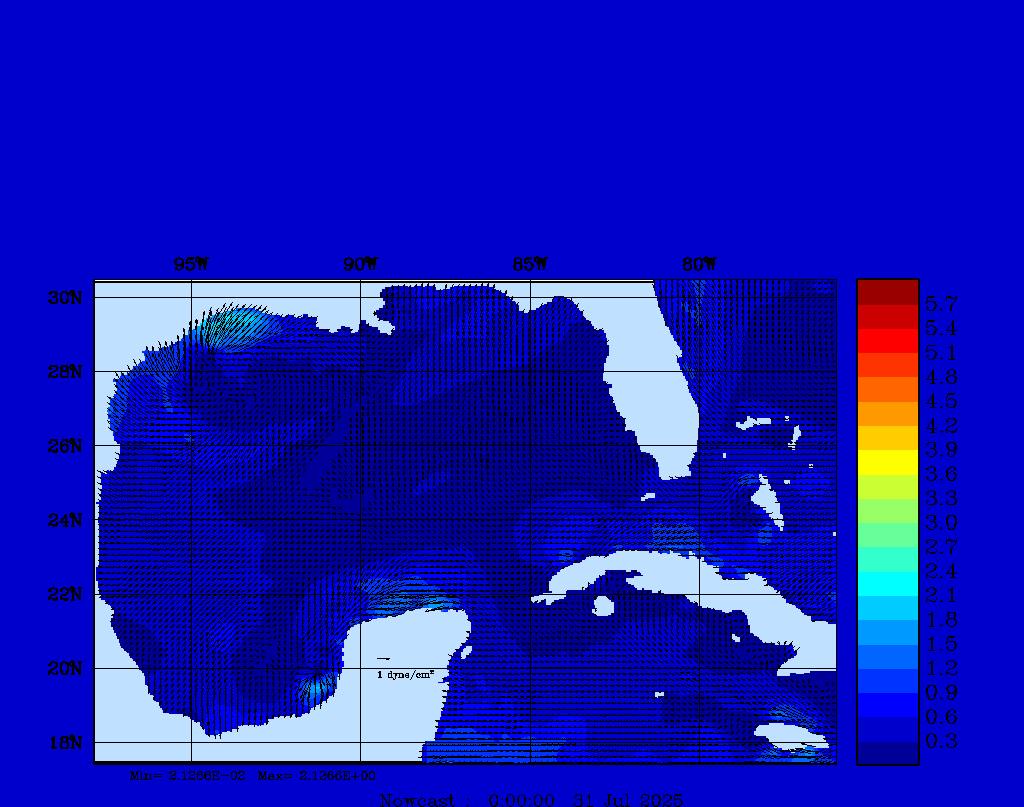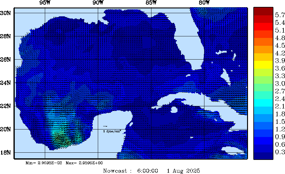 | Wind Stress Snapshots (dynes/cm2); processed by MSEAS from merged NCEP fields |