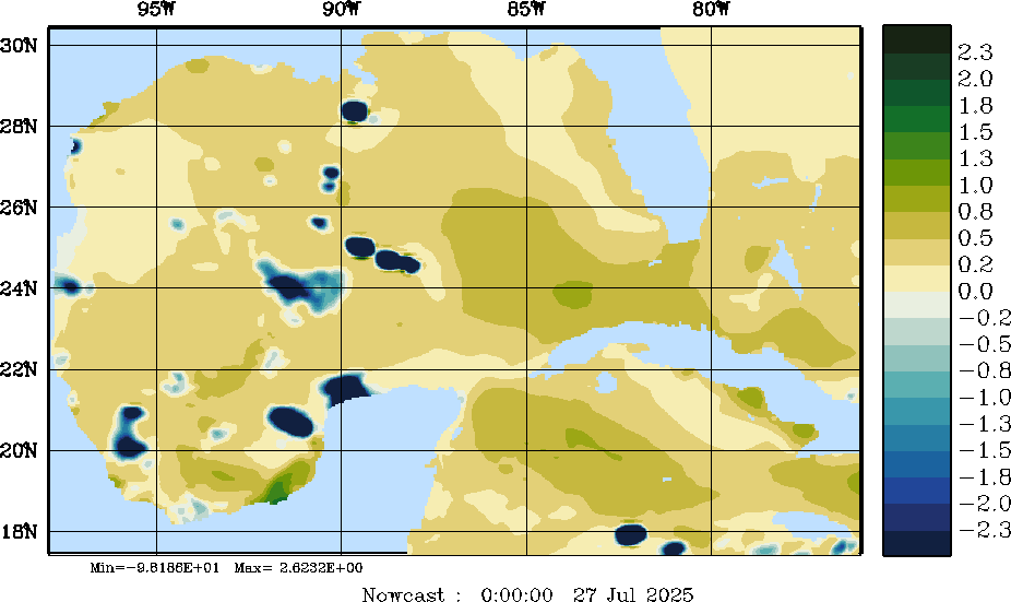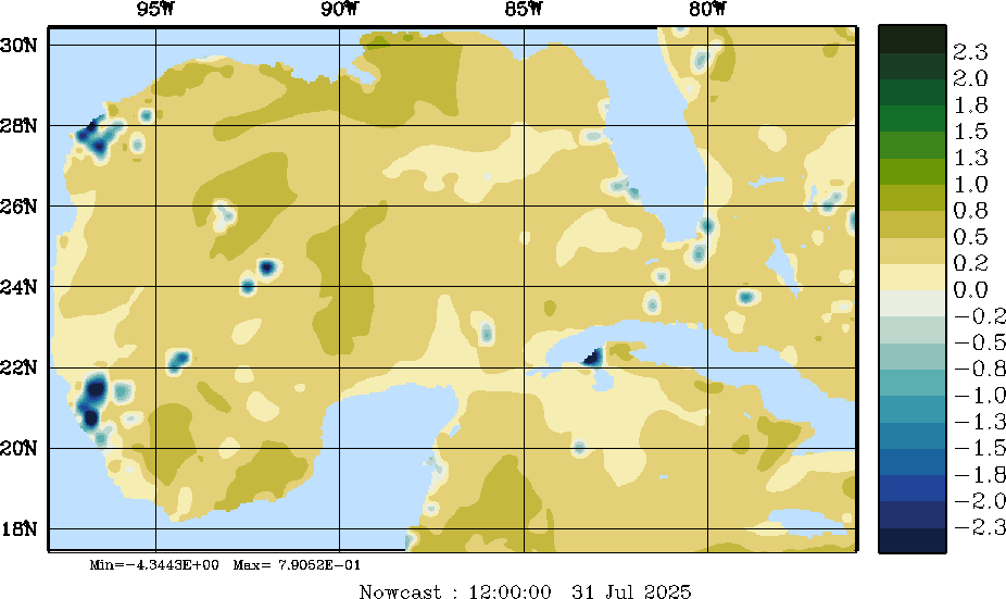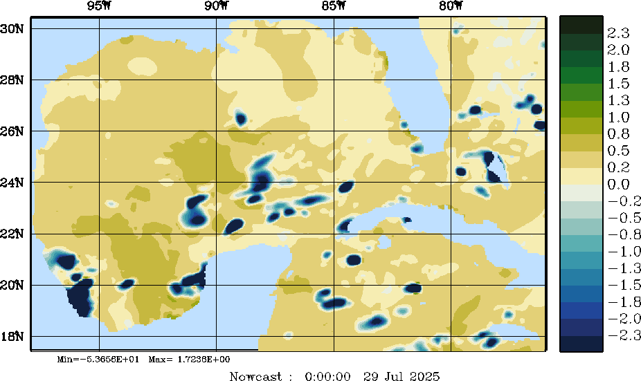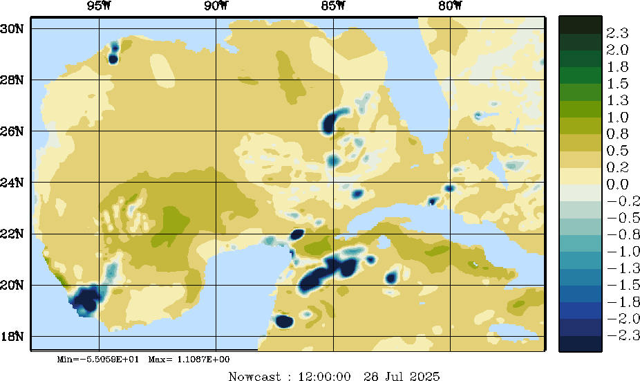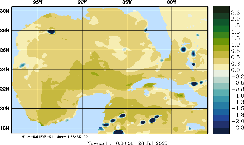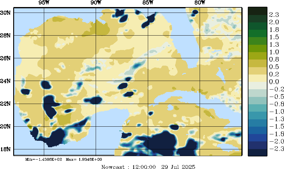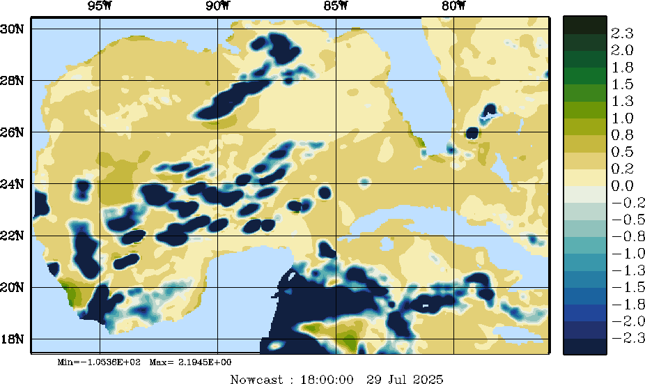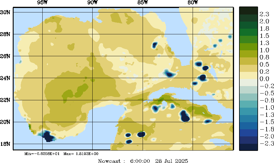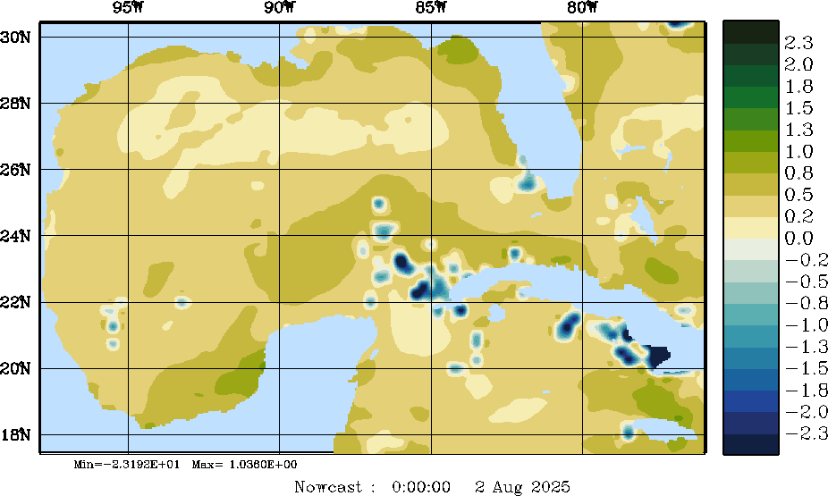 | E - P Snapshots (cm/day); processed by MSEAS from merged NCEP fields |