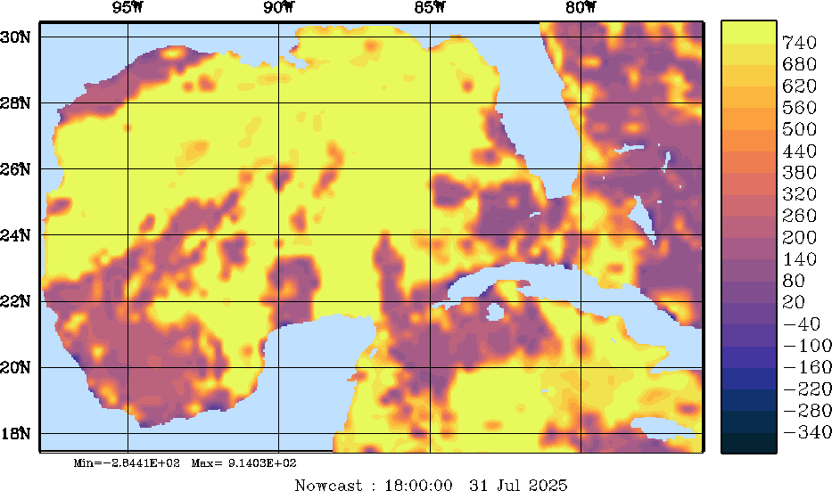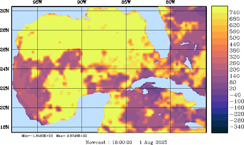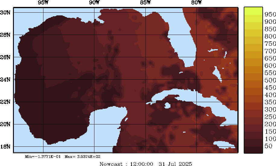 | SW Radiation Snapshots (W/m2); processed by MSEAS from merged NCEP fields |