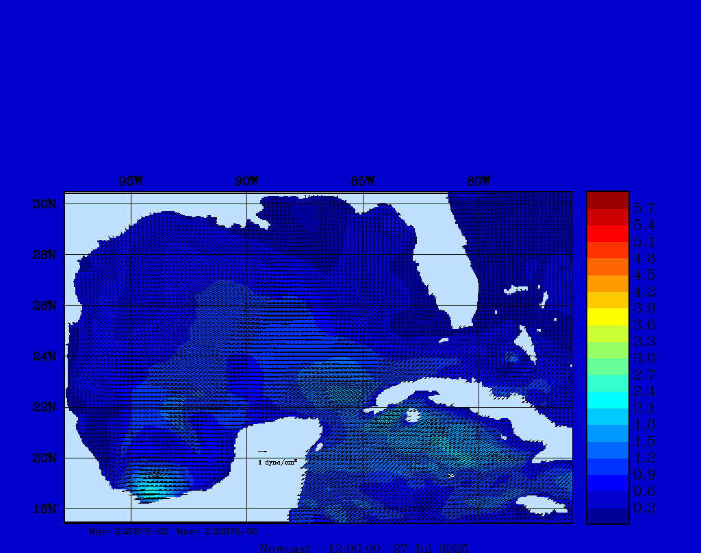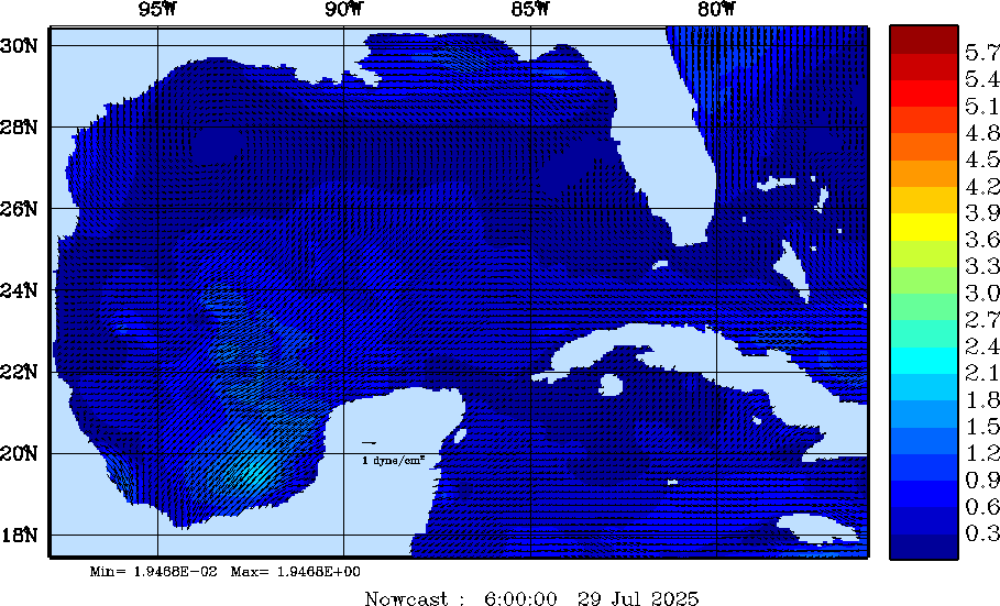 | Wind Stress Snapshots (dynes/cm2); processed by MSEAS from merged NCEP fields |