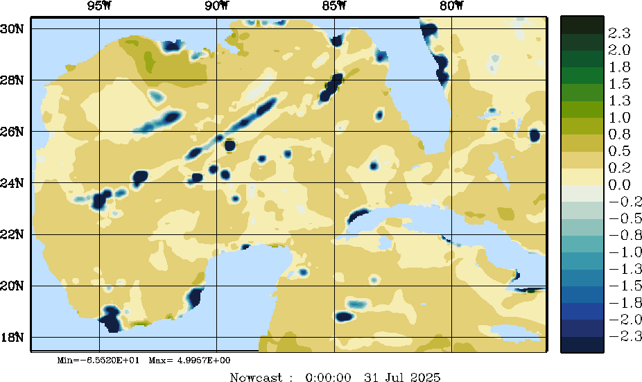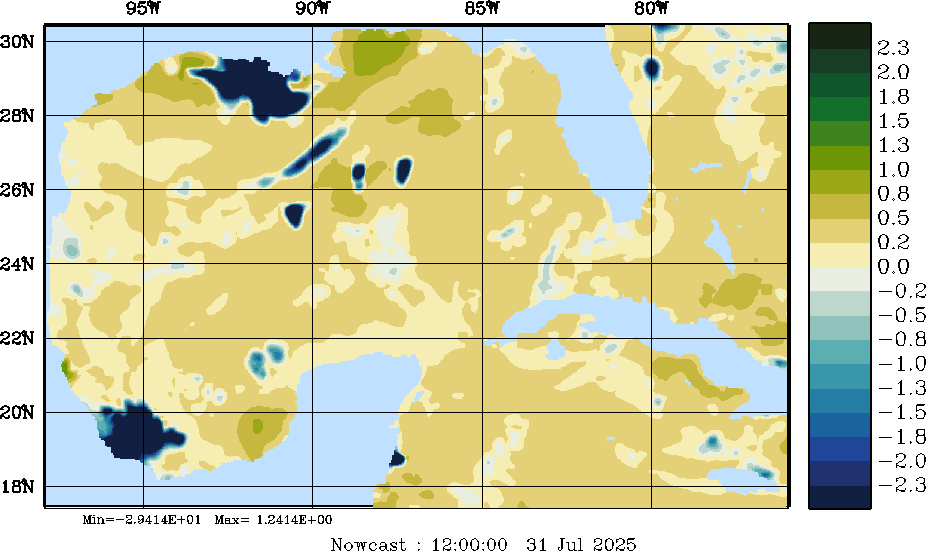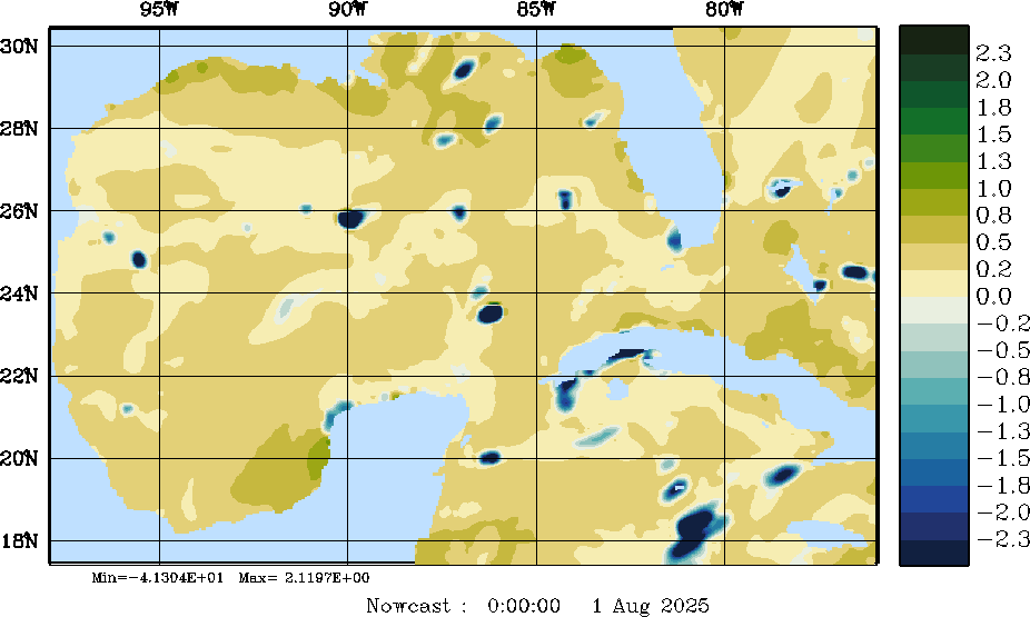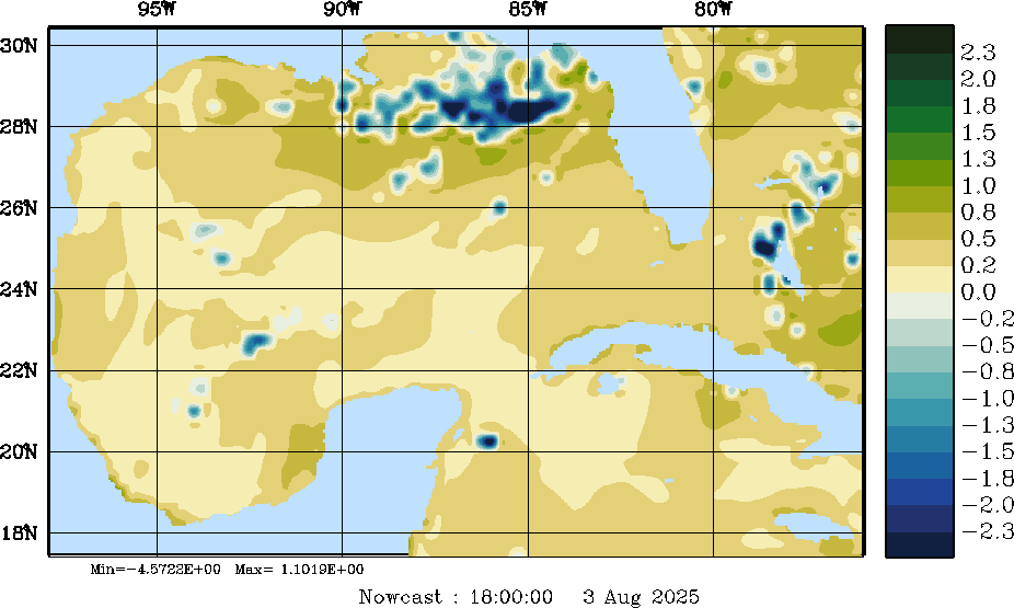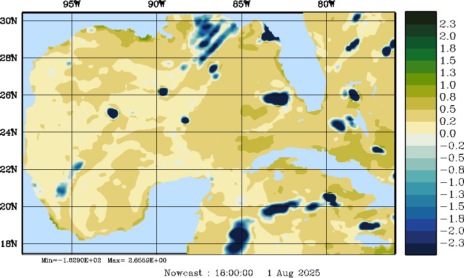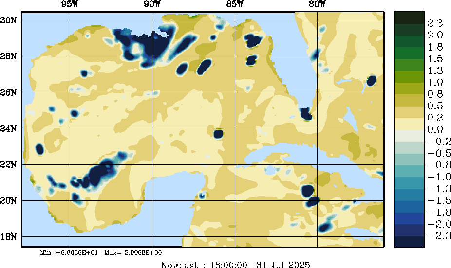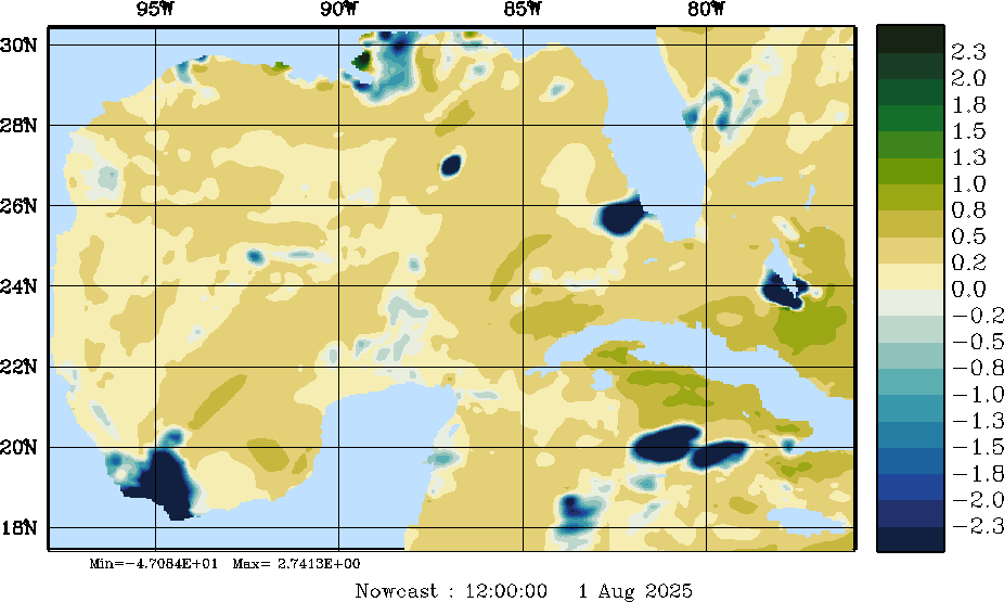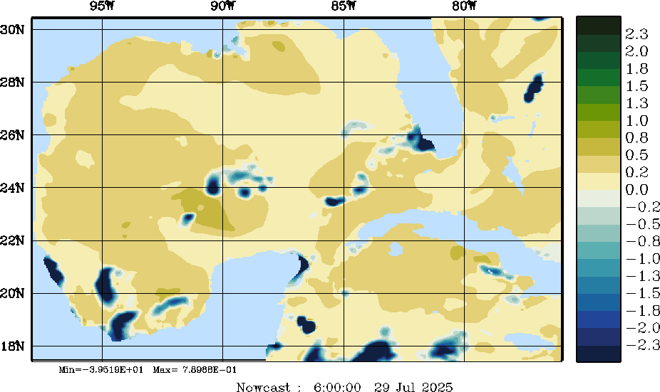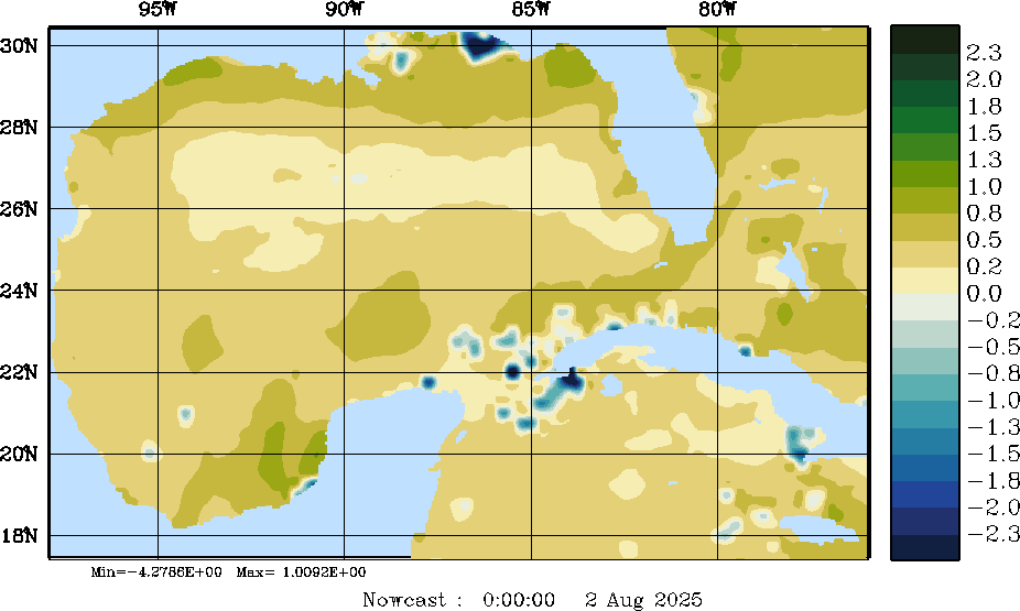 E - P Snapshots (cm/day); processed by MSEAS from merged NCEP fields |