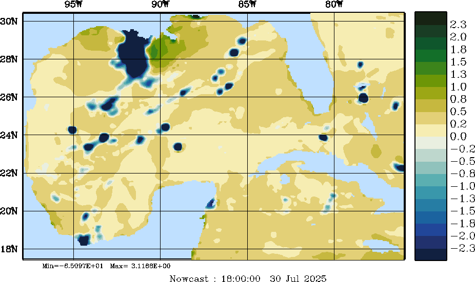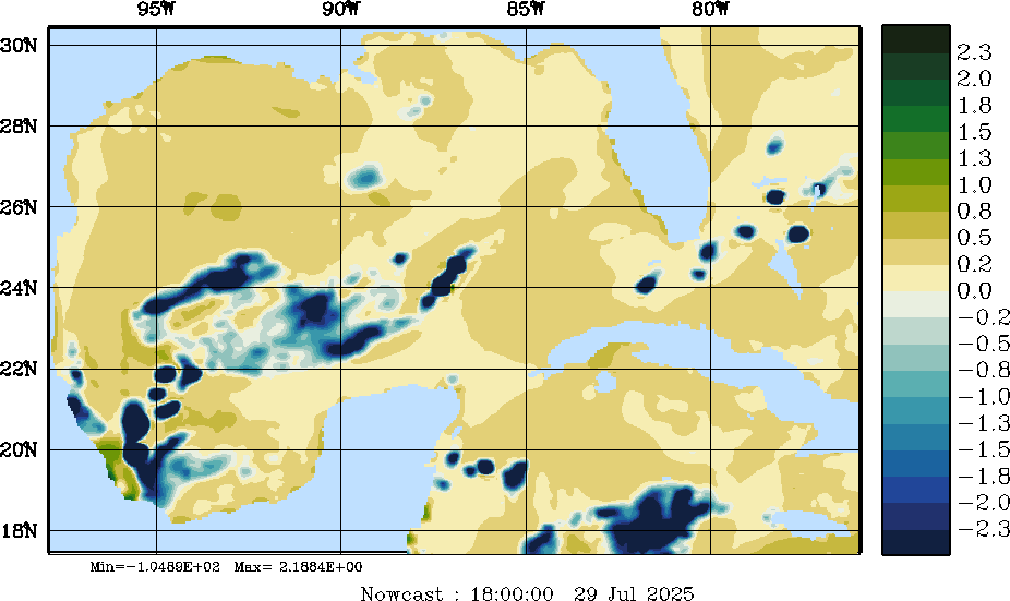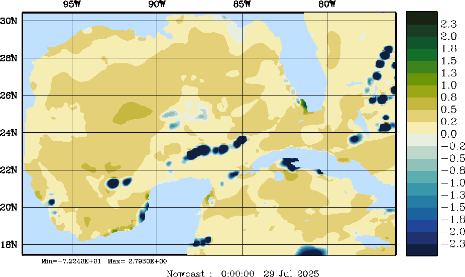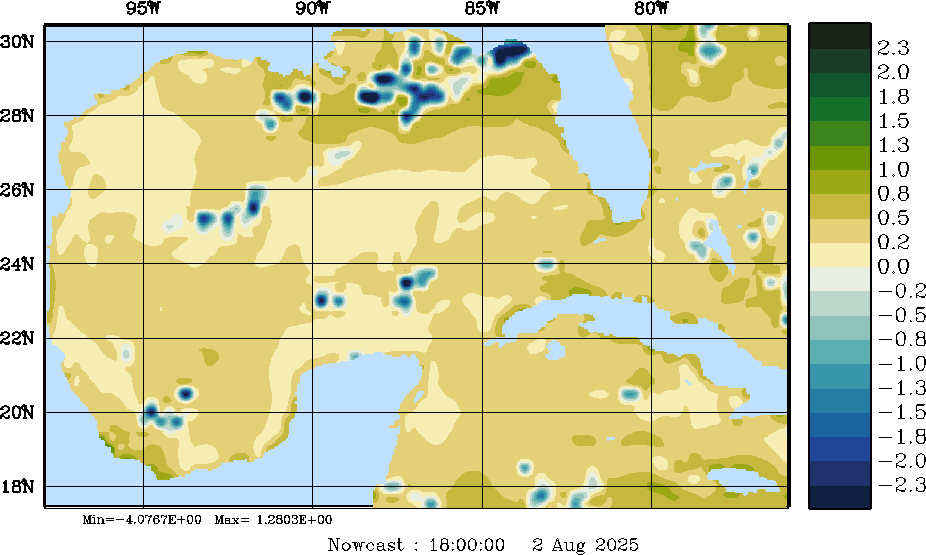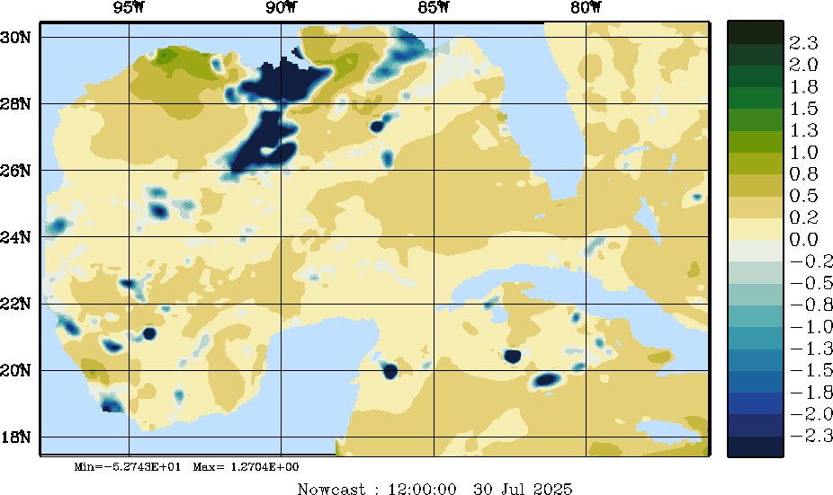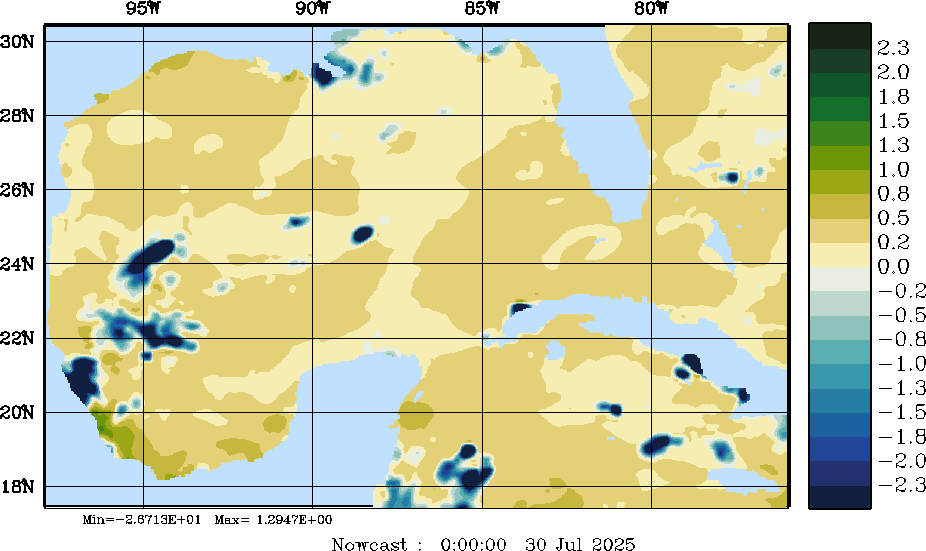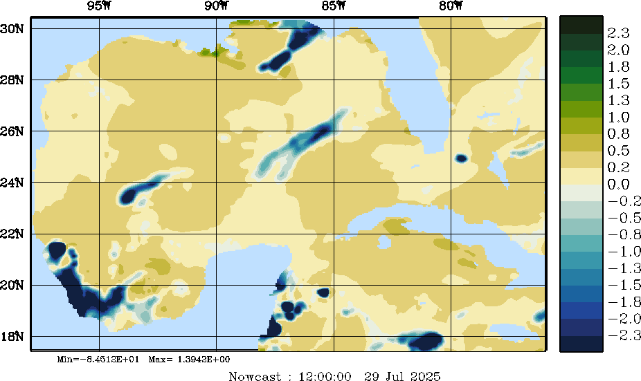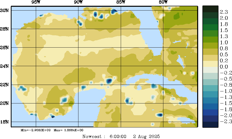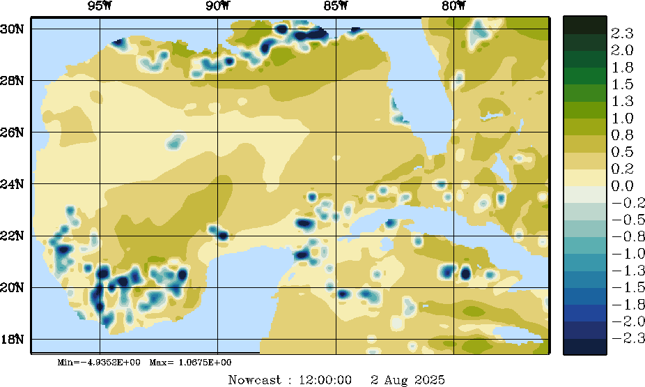 E - P Snapshots (cm/day); processed by MSEAS from merged NCEP fields |