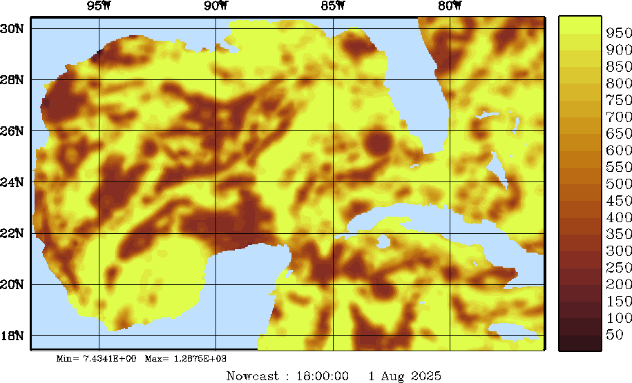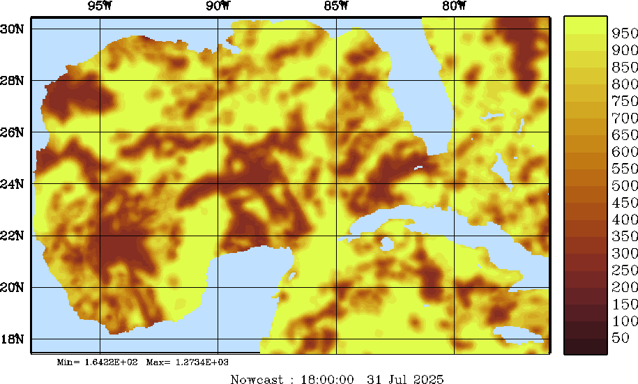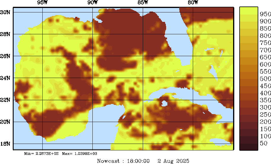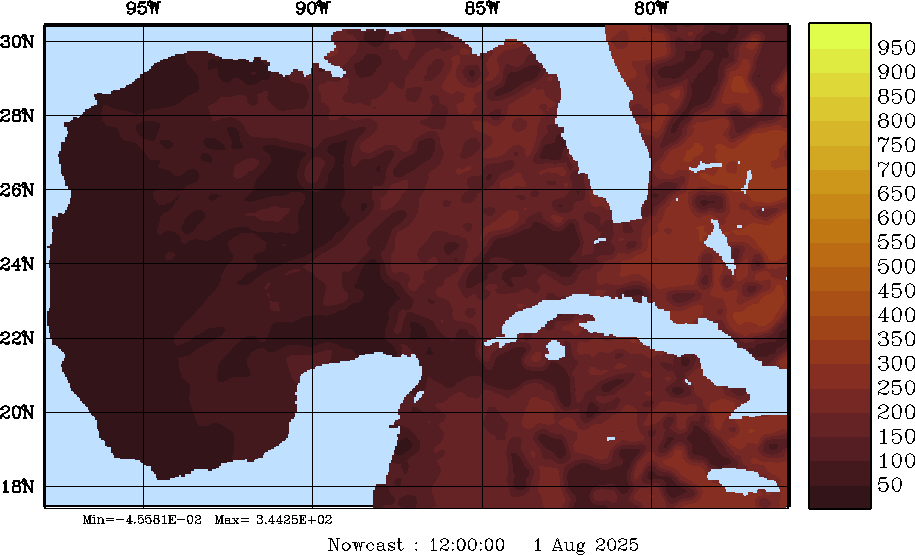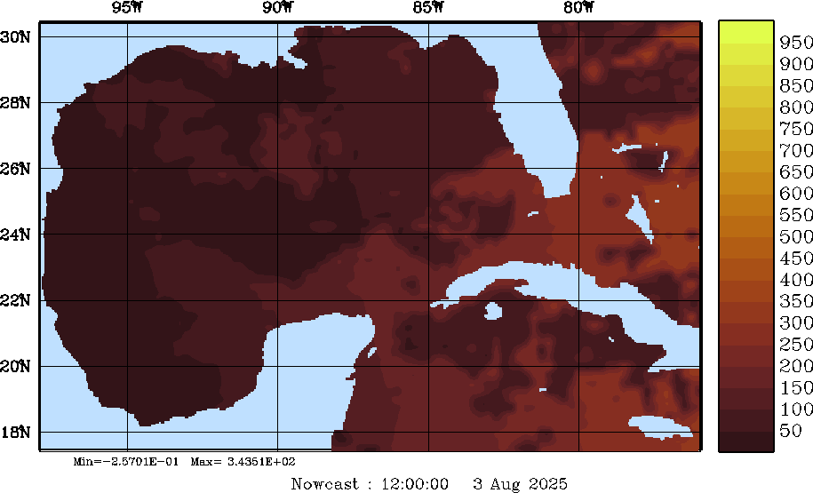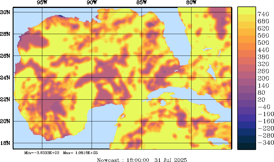 SW Radiation Snapshots (W/m2); processed by MSEAS from merged NCEP fields |