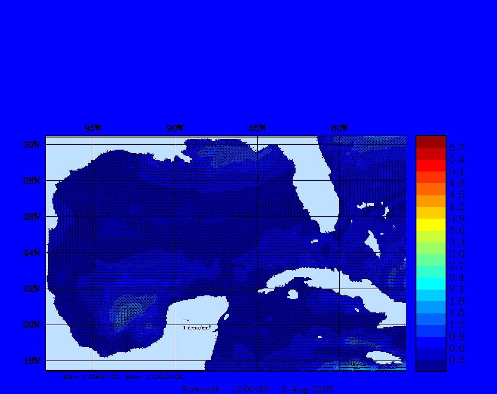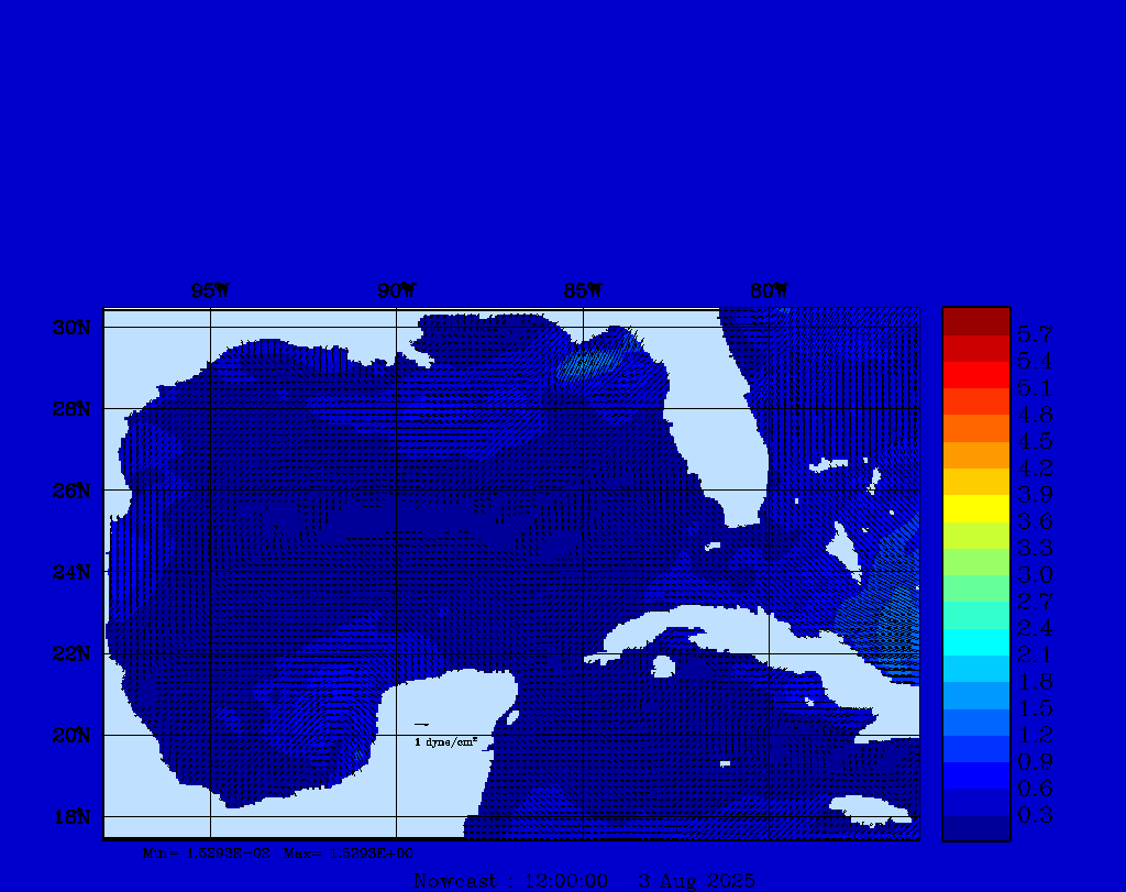 Wind Stress Snapshots (dynes/cm2); processed by MSEAS from merged NCEP fields |