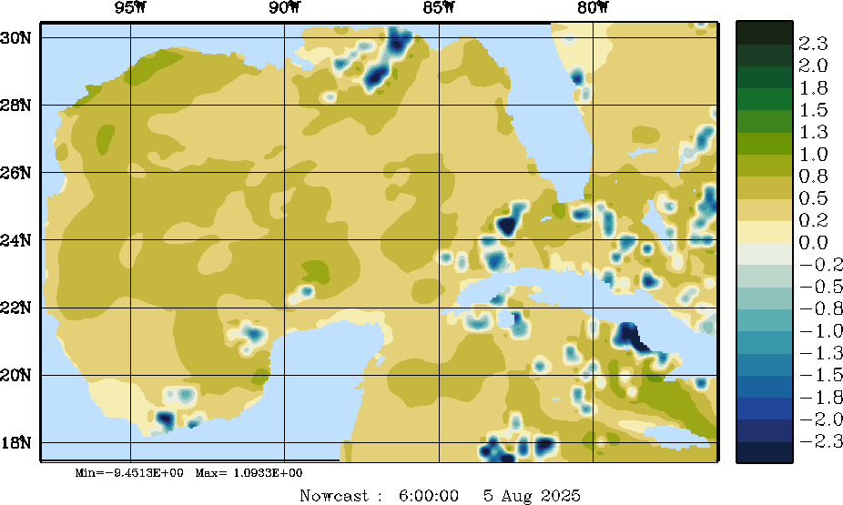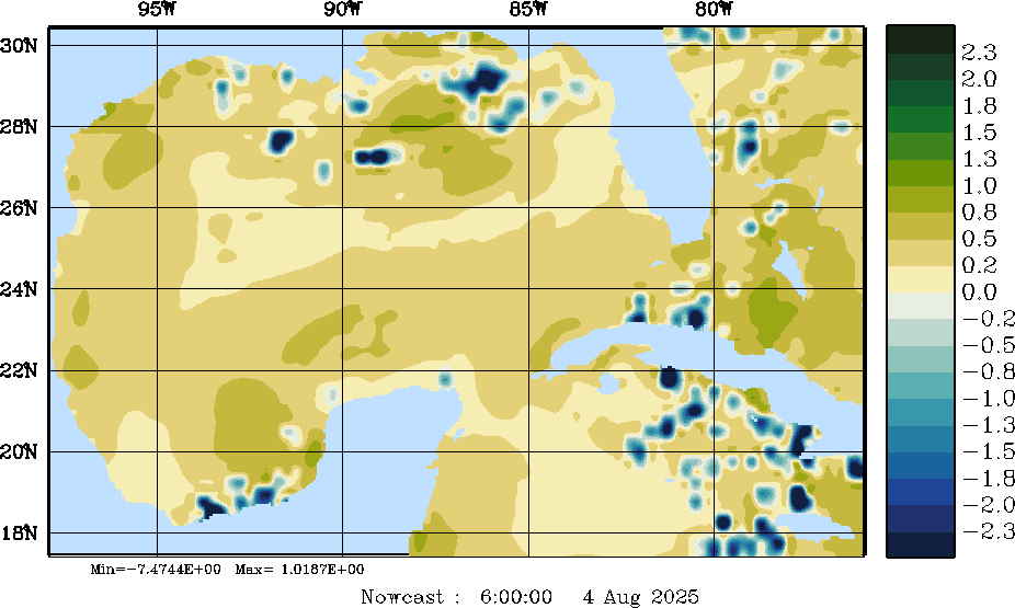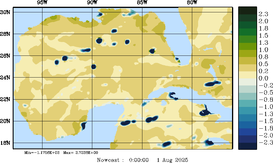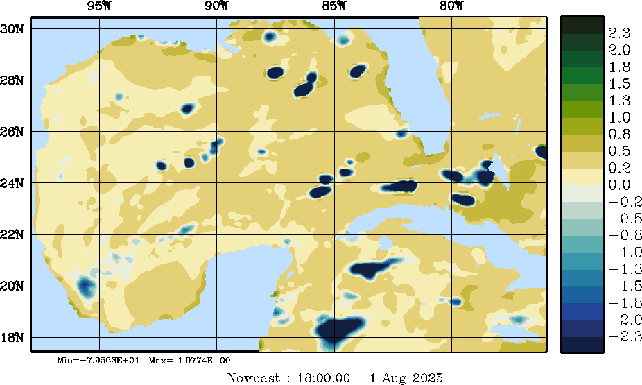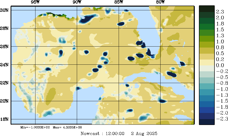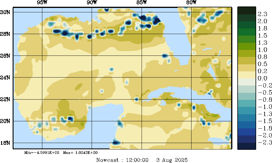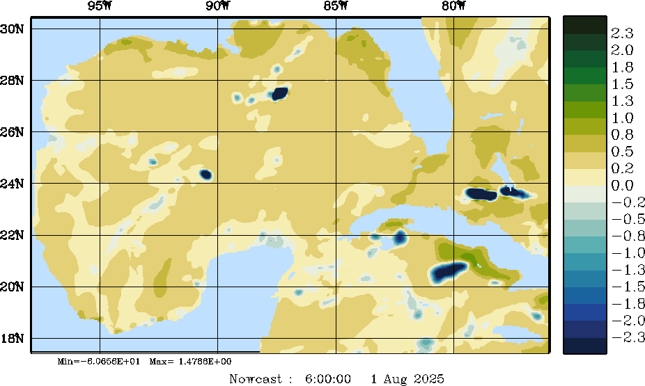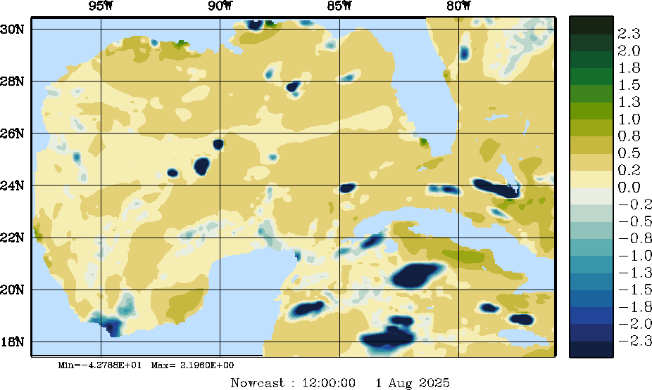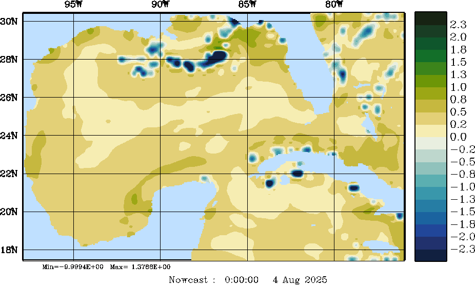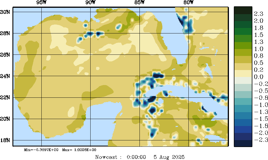E - P Snapshots (cm/day); processed by MSEAS from merged NCEP fields |