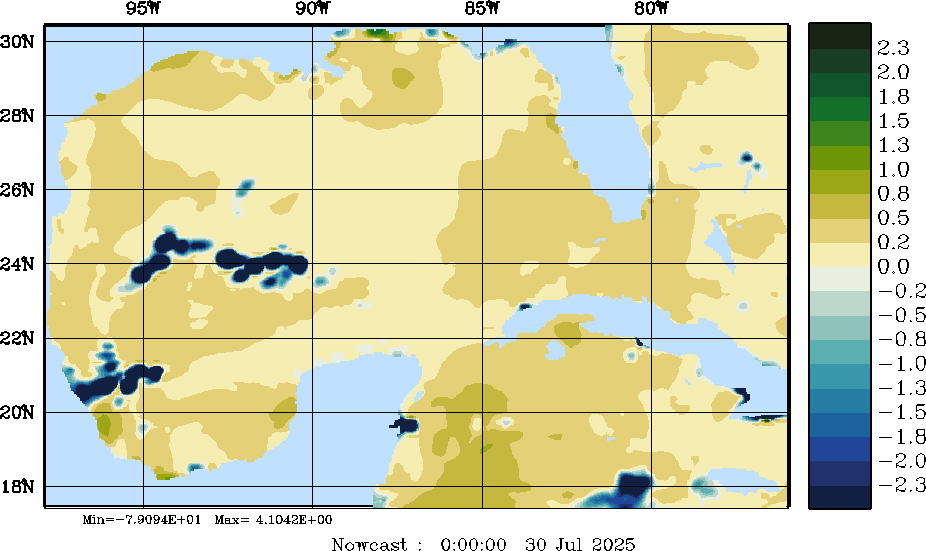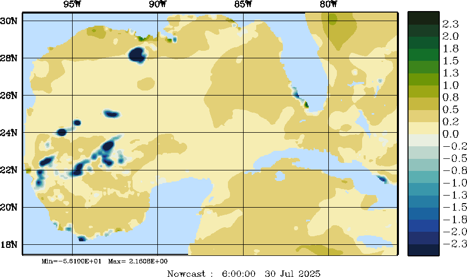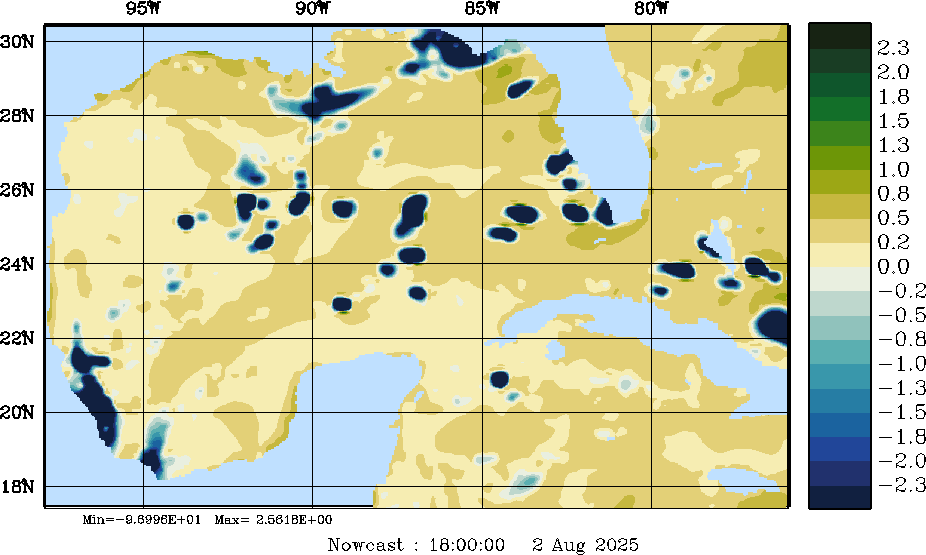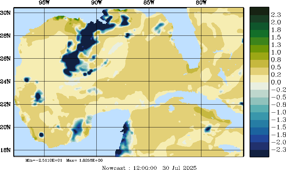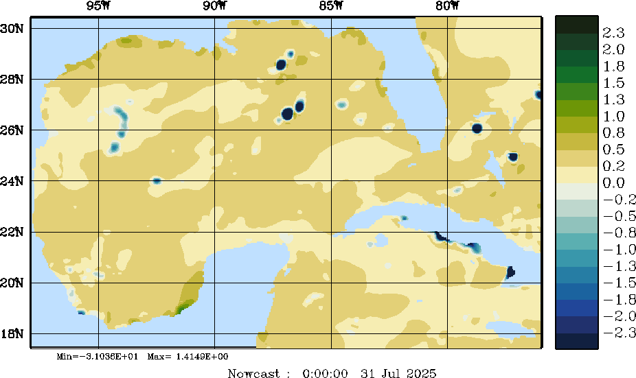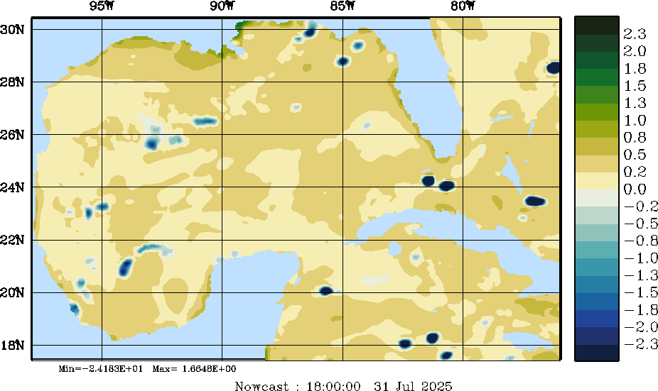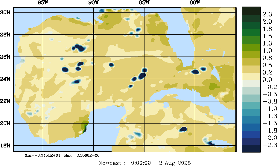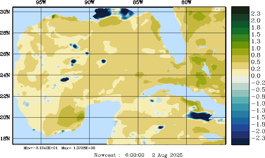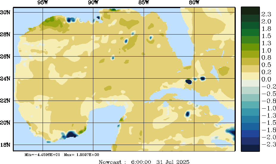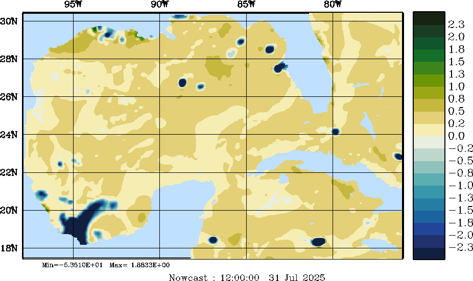 E - P Snapshots (cm/day); processed by MSEAS from merged NCEP fields |