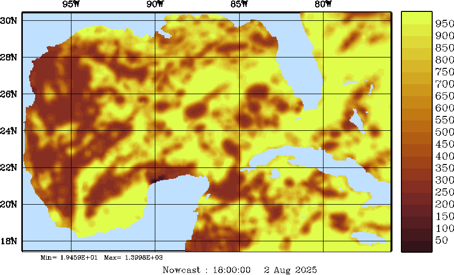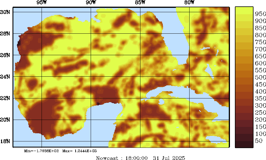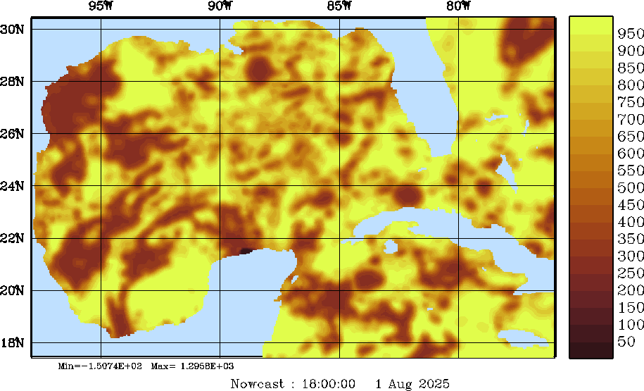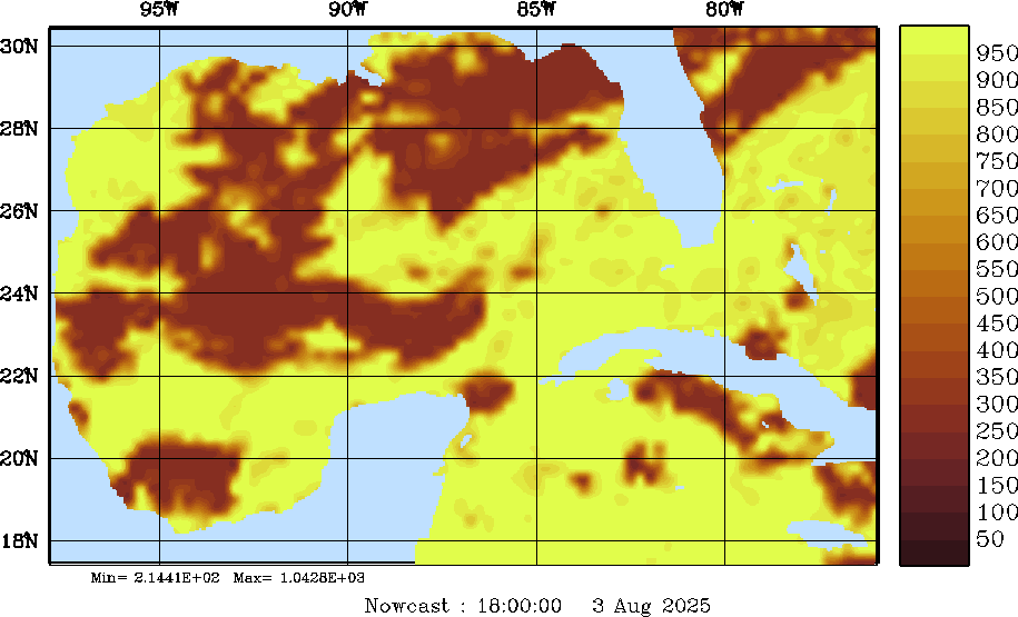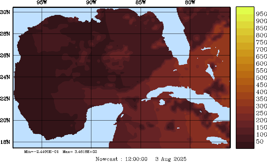 SW Radiation Snapshots (W/m2); processed by MSEAS from merged NCEP fields |