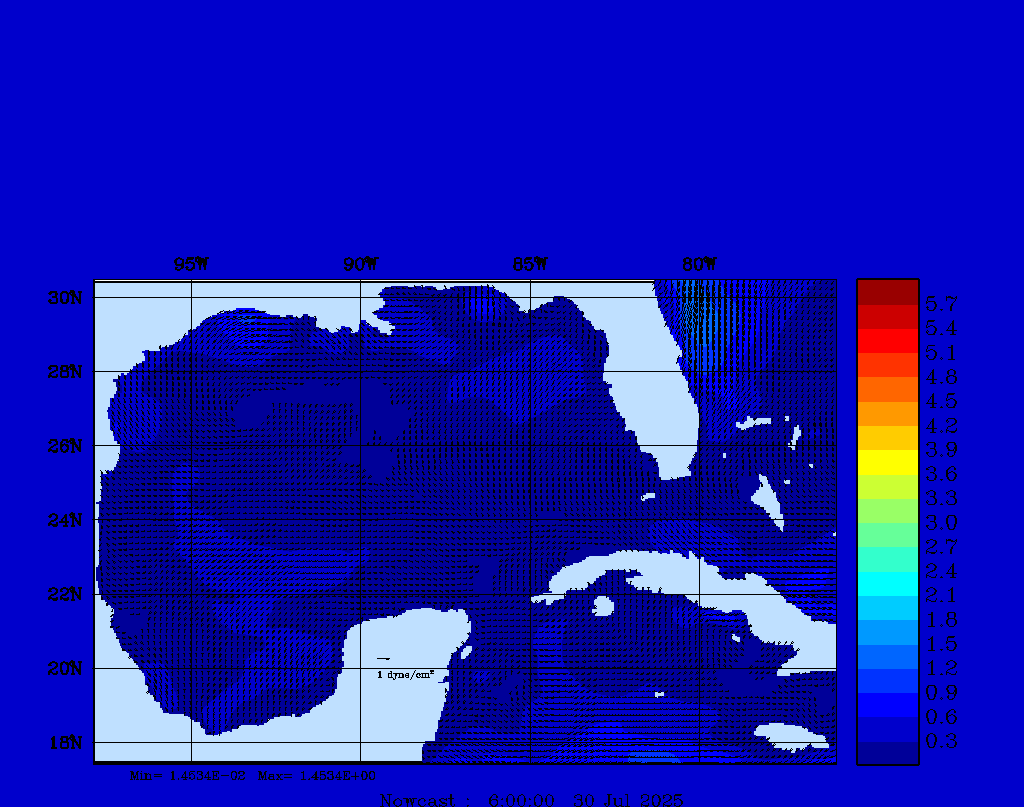Wind Stress Snapshots (dynes/cm2); processed by MSEAS from merged NCEP fields |