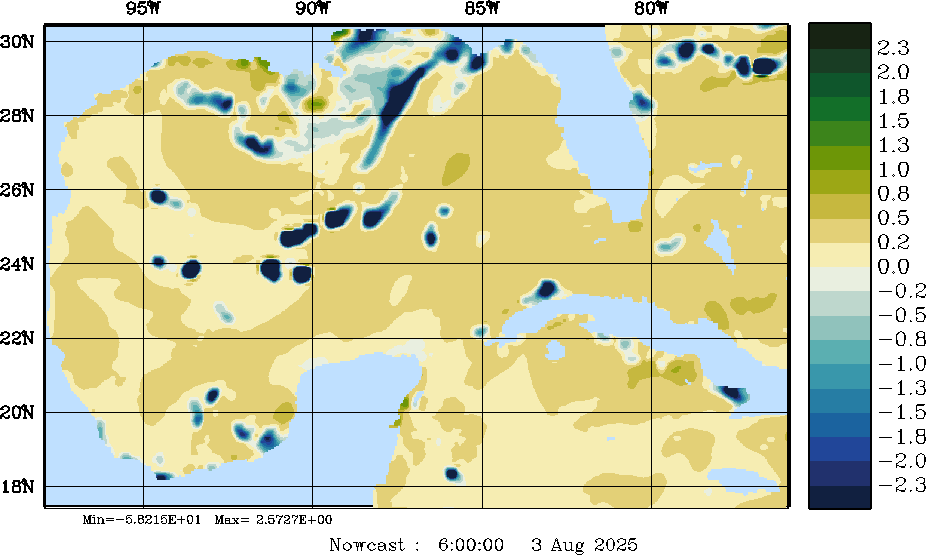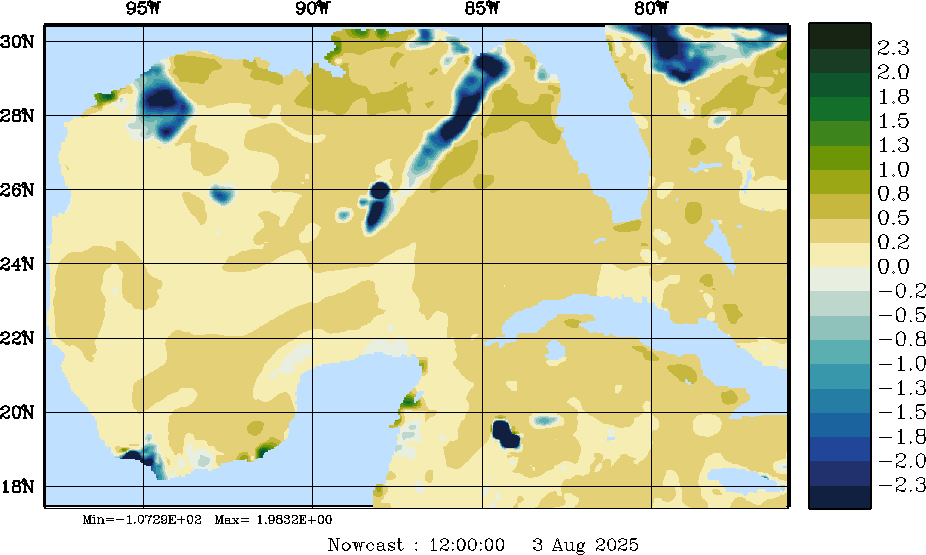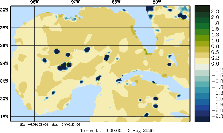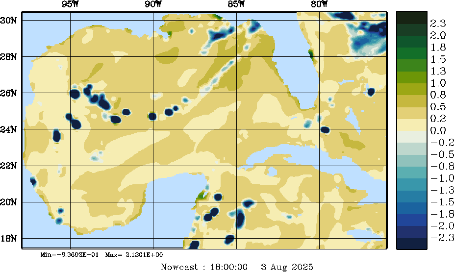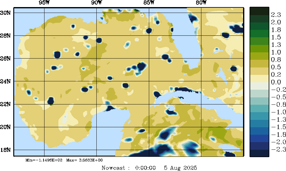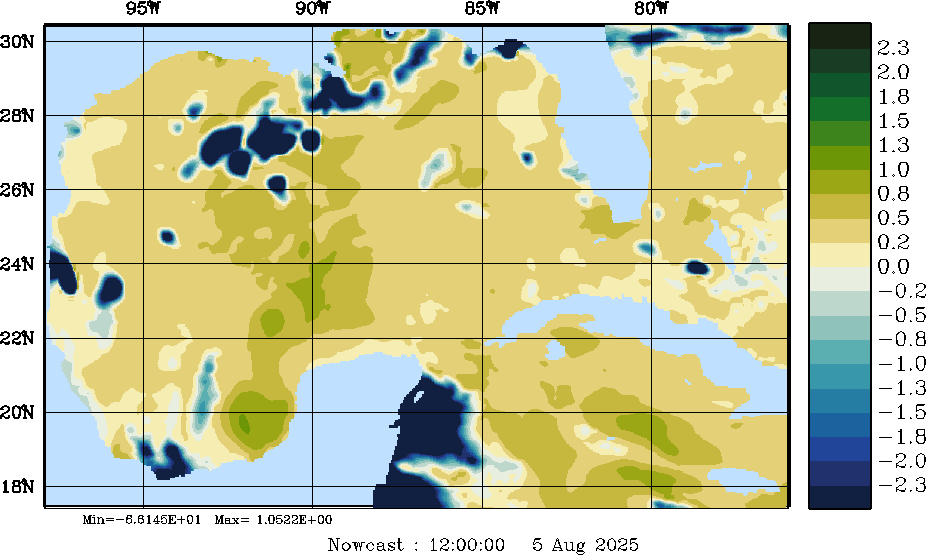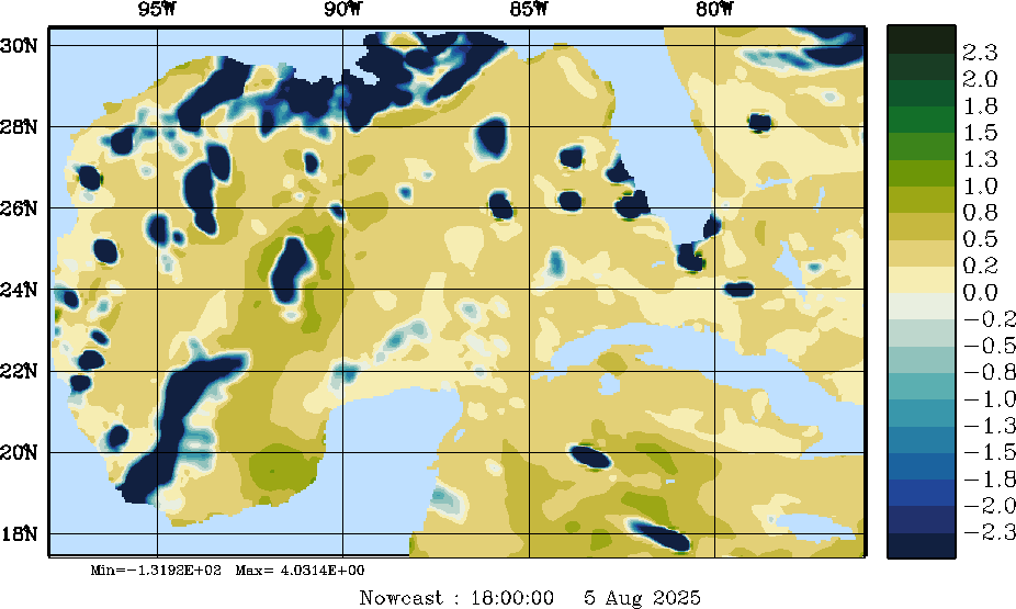 | E - P Snapshots (cm/day); processed by MSEAS from merged NCEP fields |