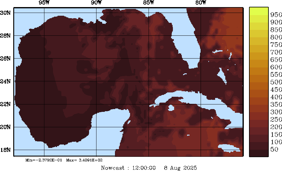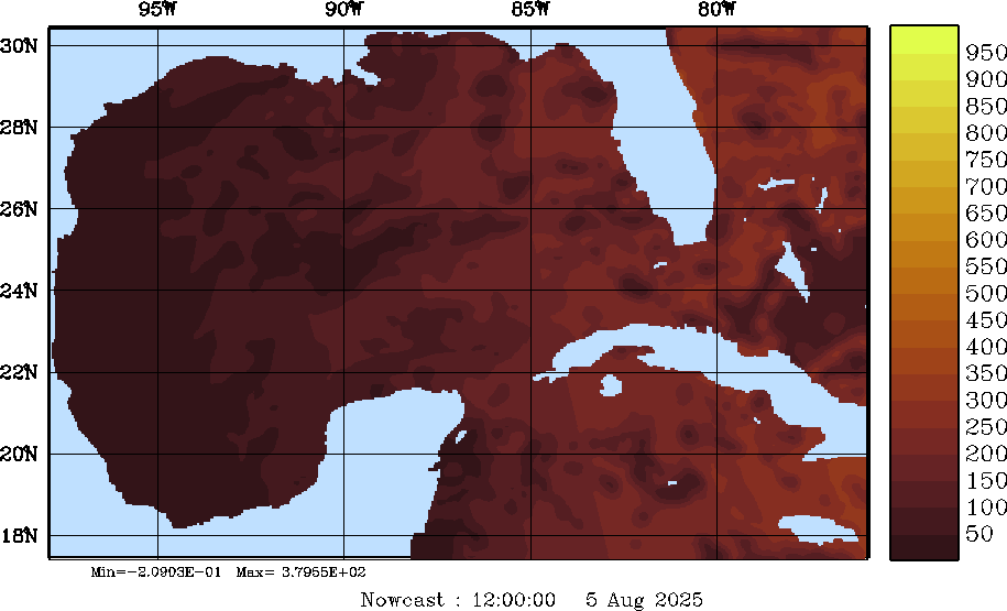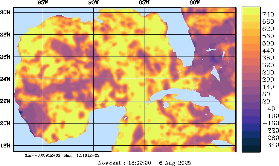 | SW Radiation Snapshots (W/m2); processed by MSEAS from merged NCEP fields |