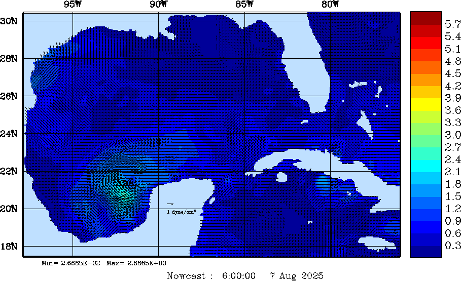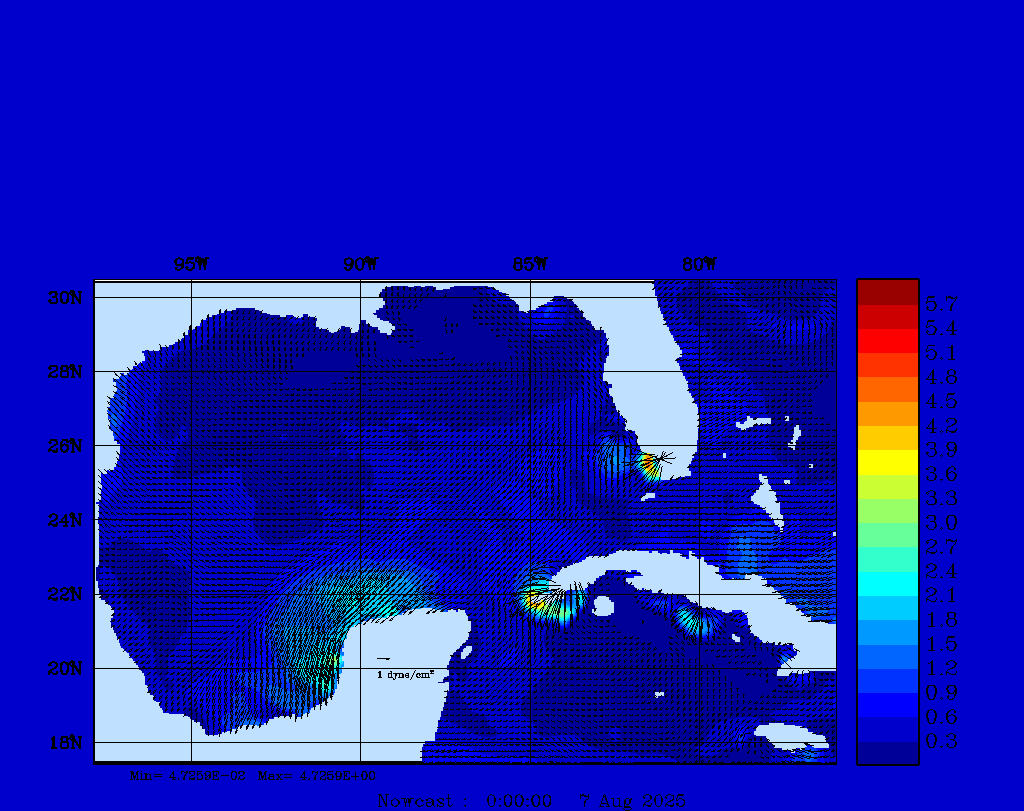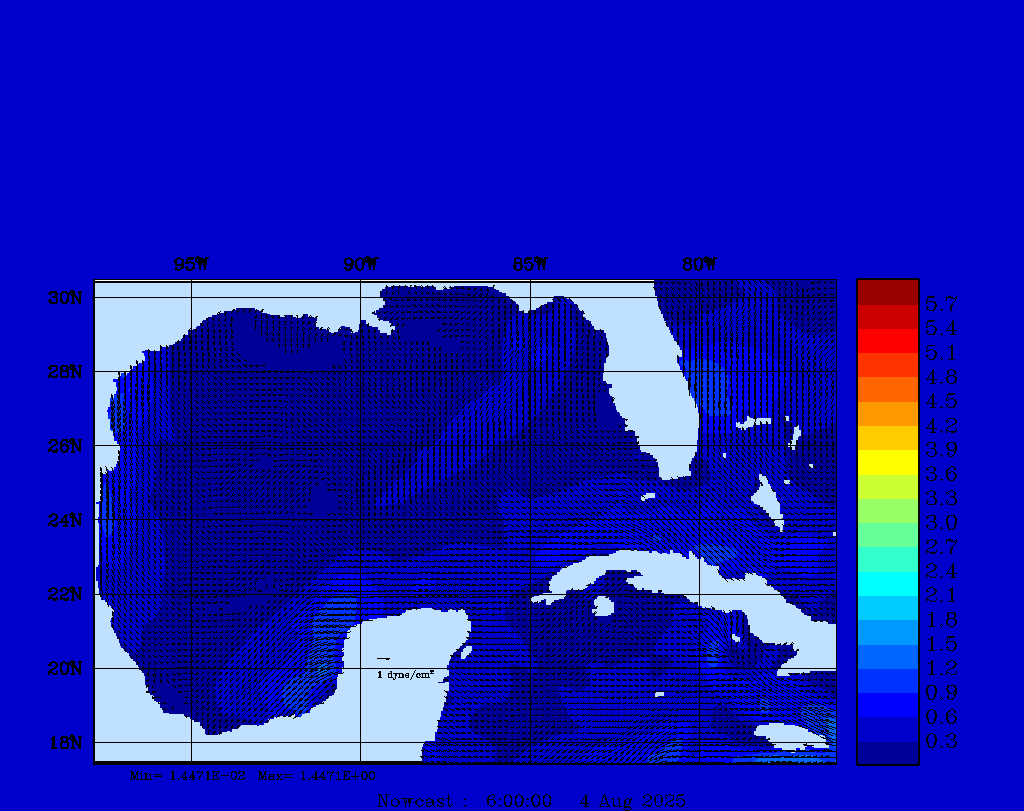 | Wind Stress Snapshots (dynes/cm2); processed by MSEAS from merged NCEP fields |