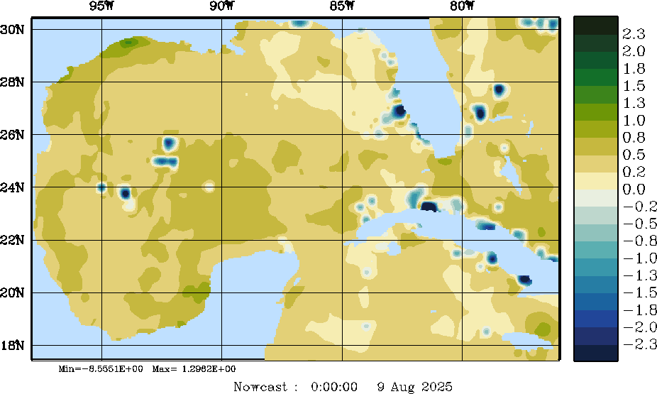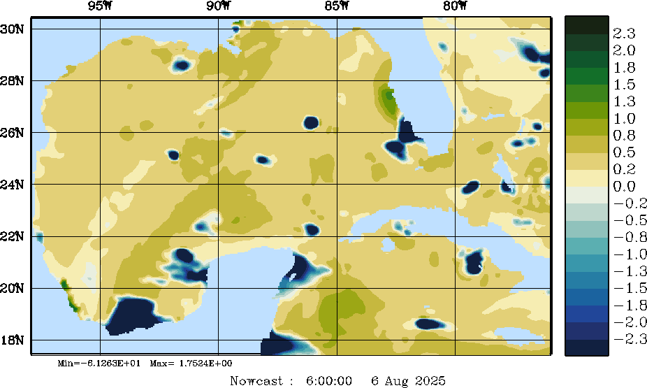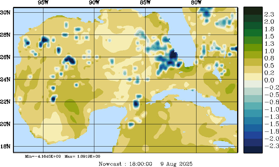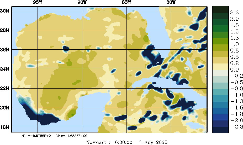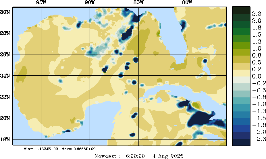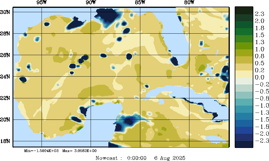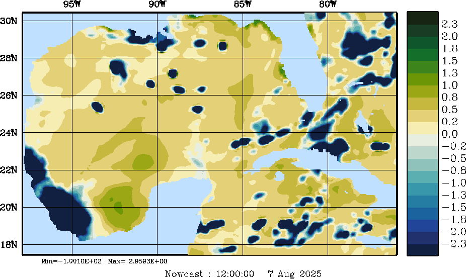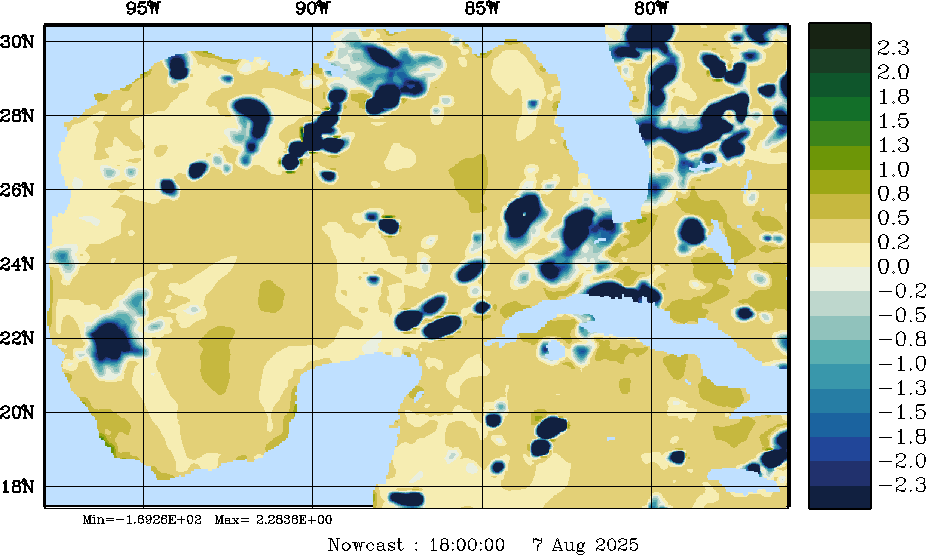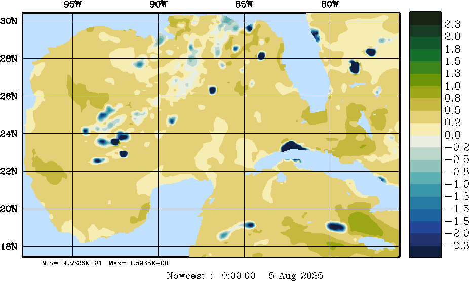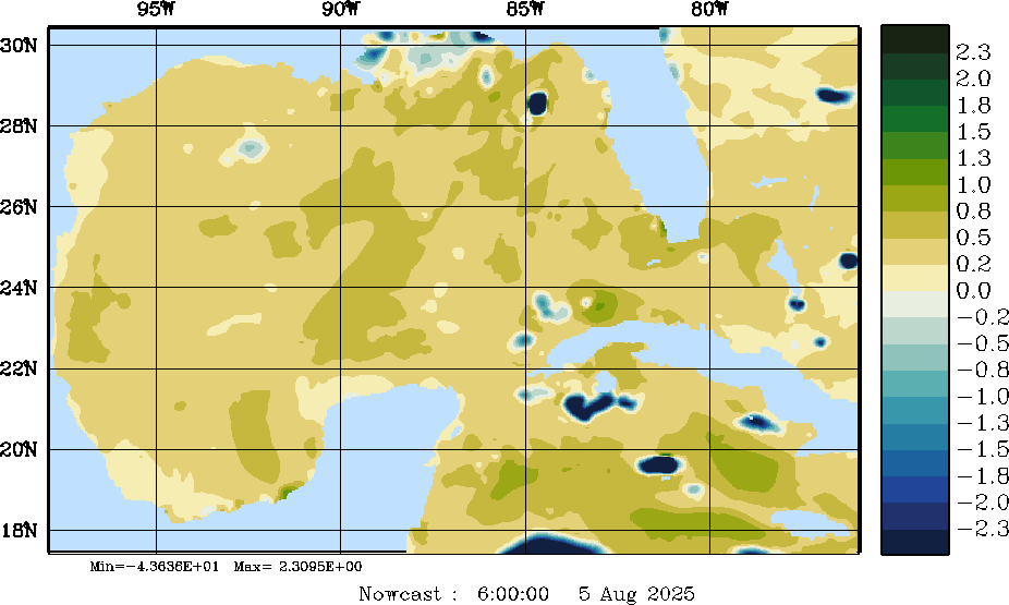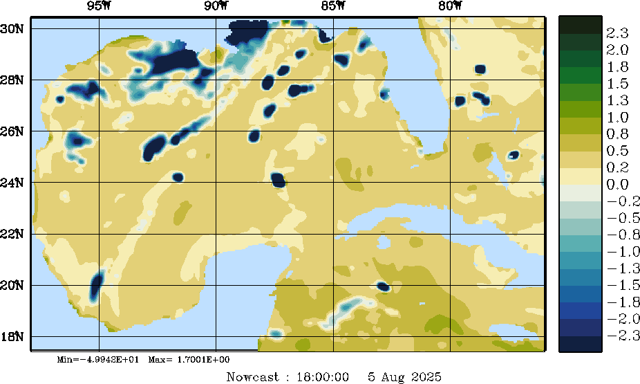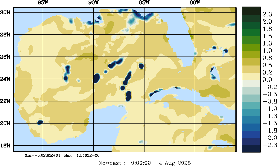 E - P Snapshots (cm/day); processed by MSEAS from merged NCEP fields |