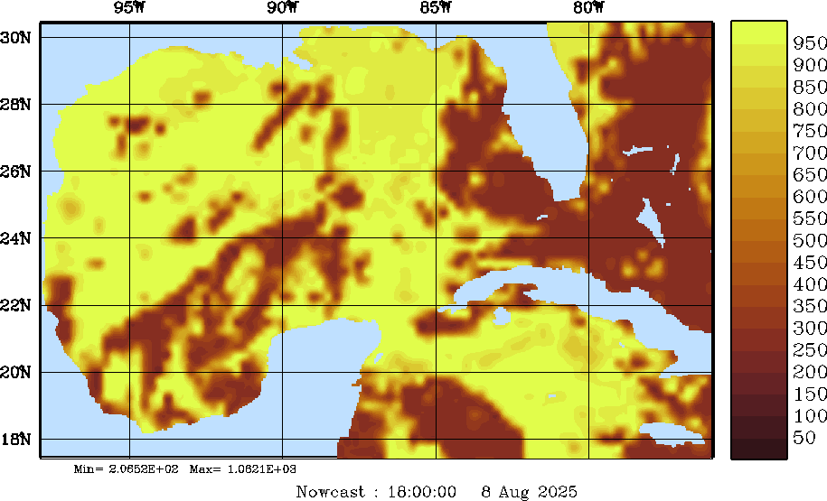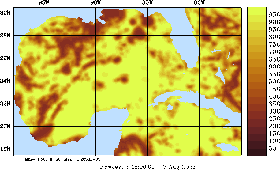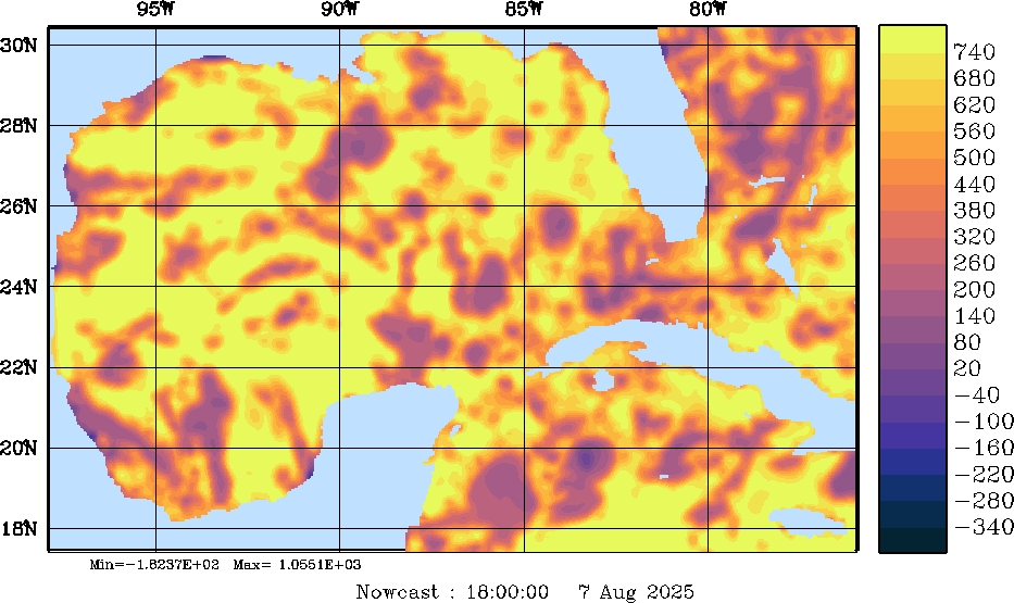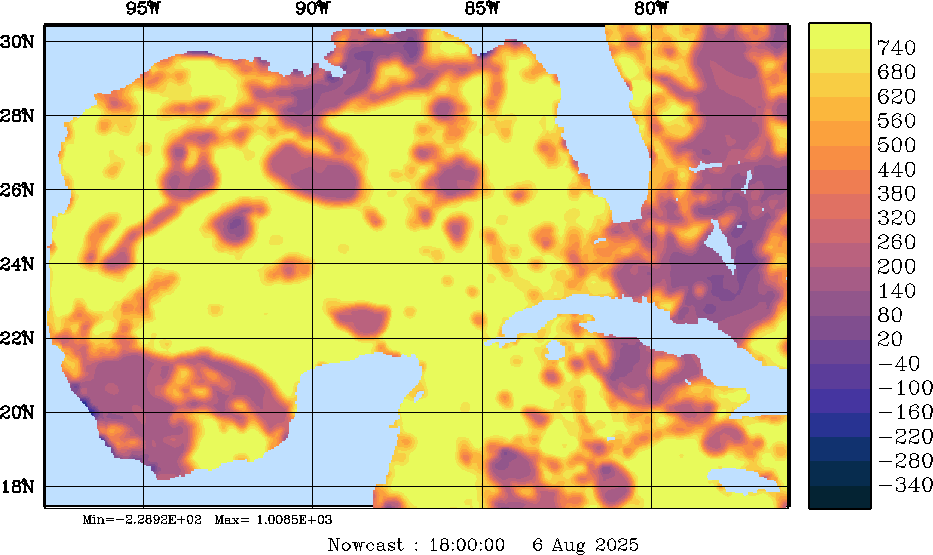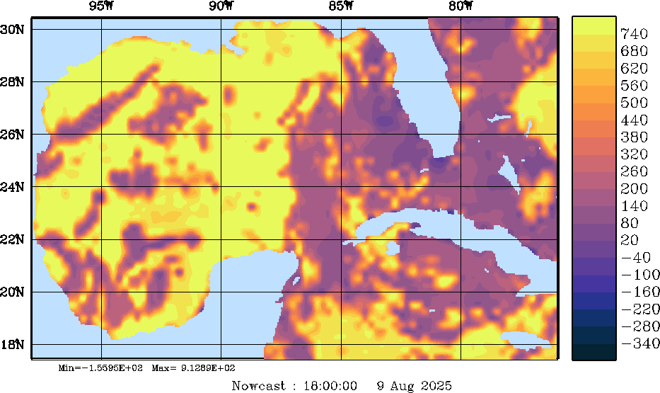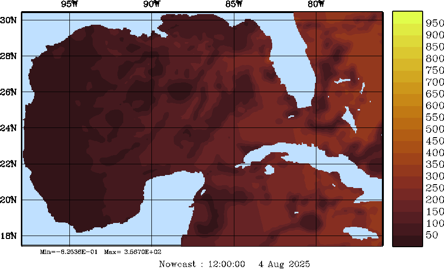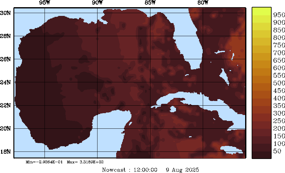 SW Radiation Snapshots (W/m2); processed by MSEAS from merged NCEP fields |
