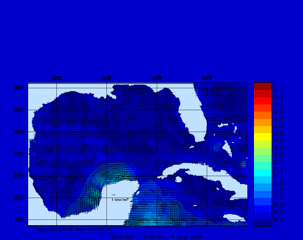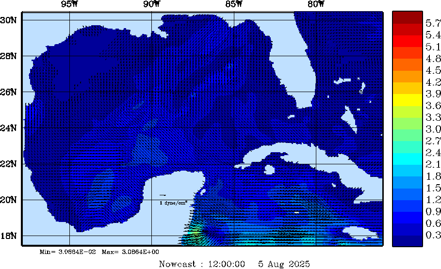 Wind Stress Snapshots (dynes/cm2); processed by MSEAS from merged NCEP fields |