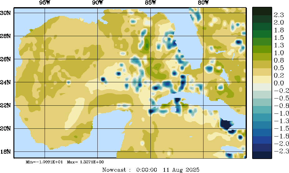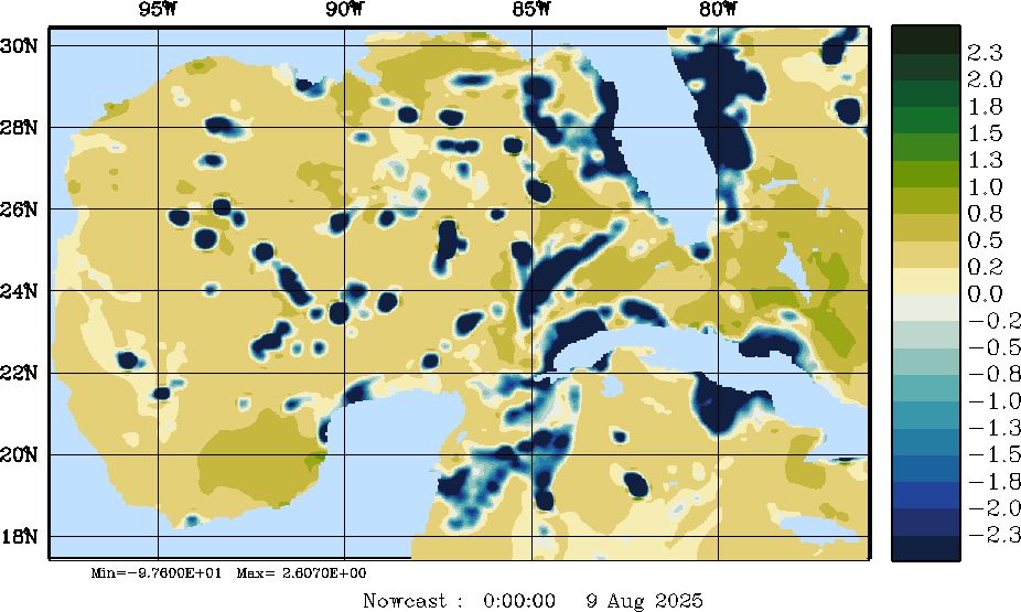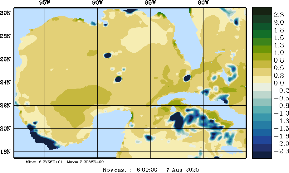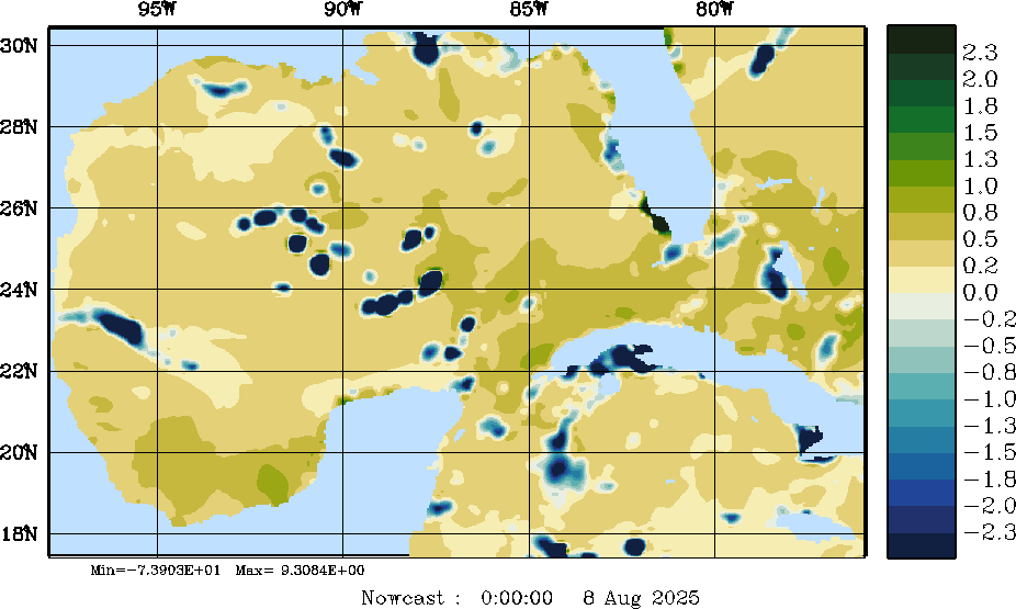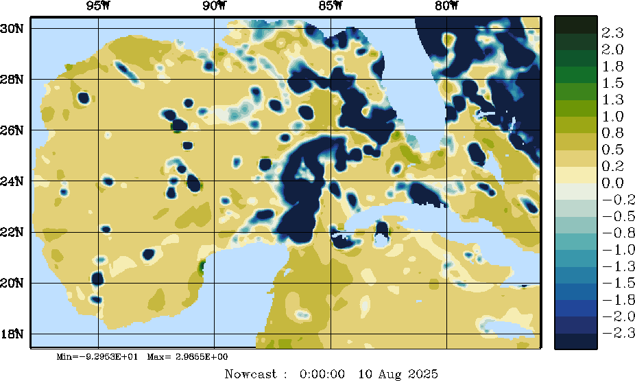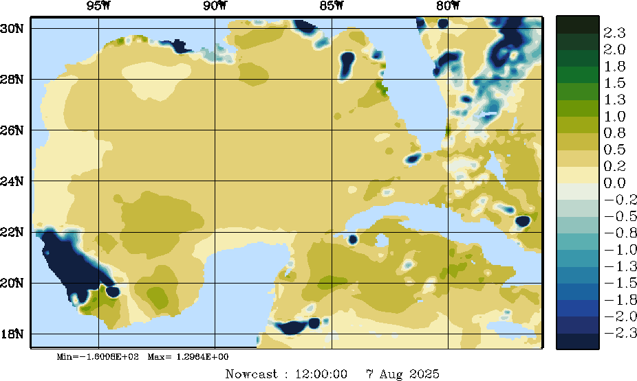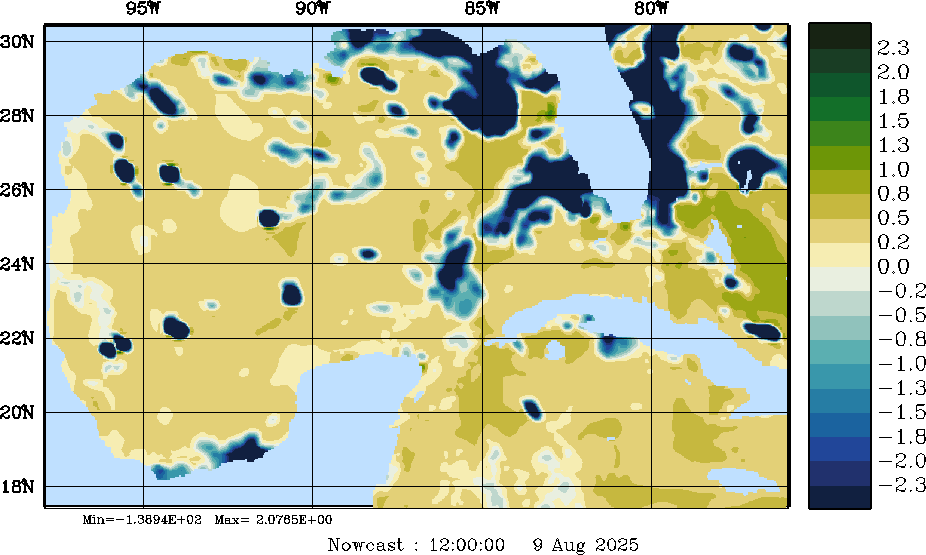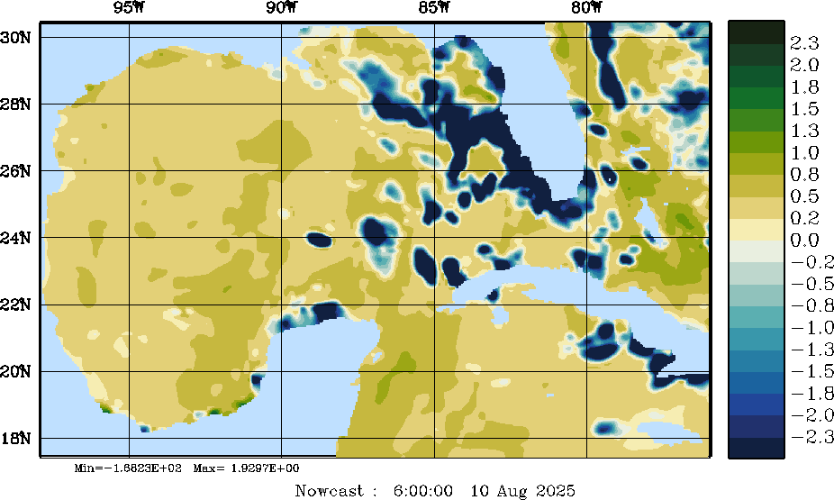 E - P Snapshots (cm/day); processed by MSEAS from merged NCEP fields |