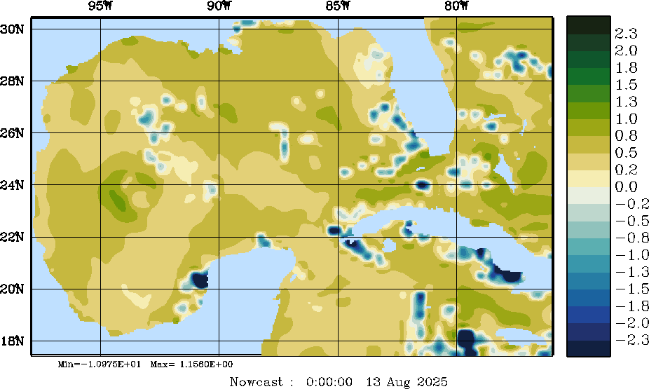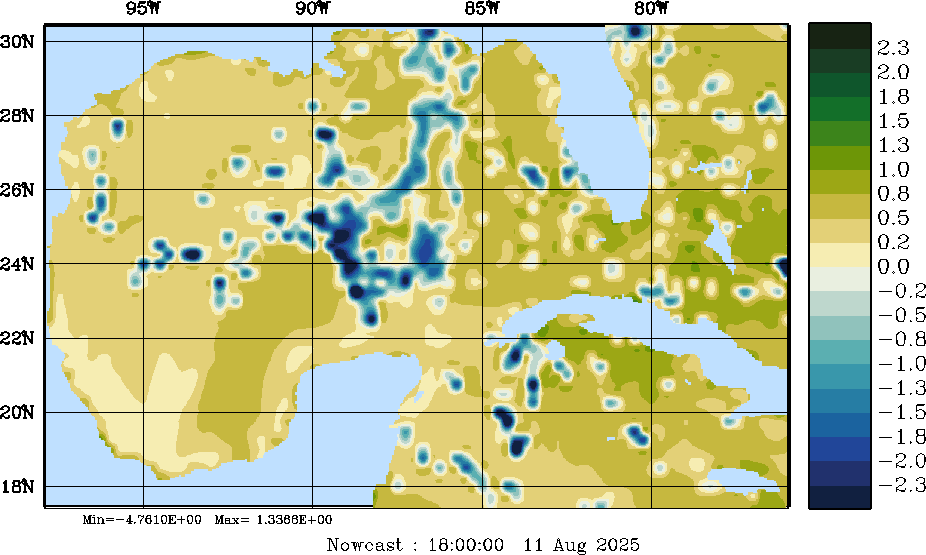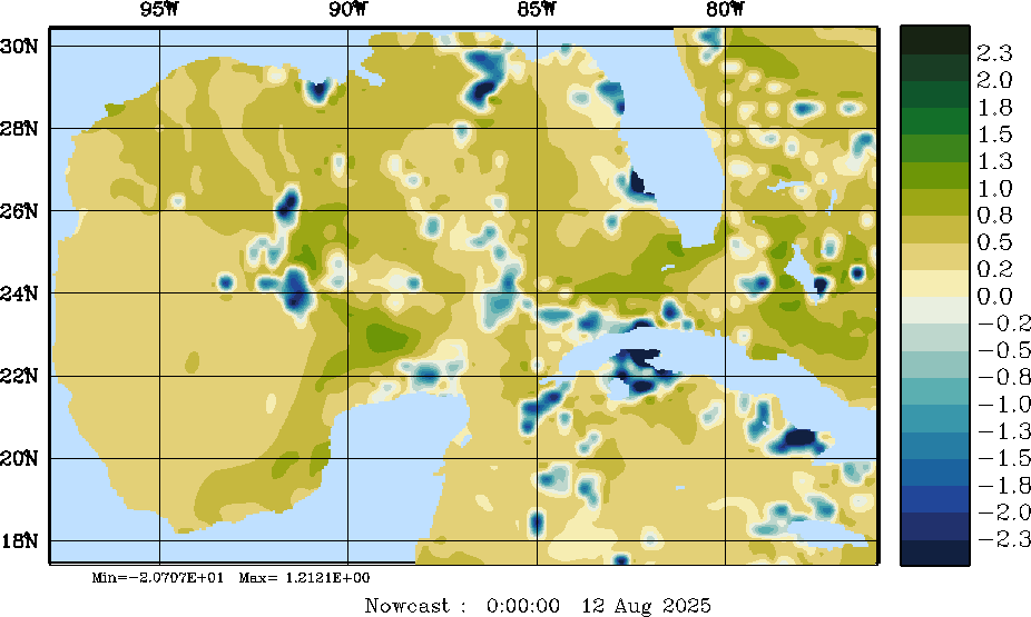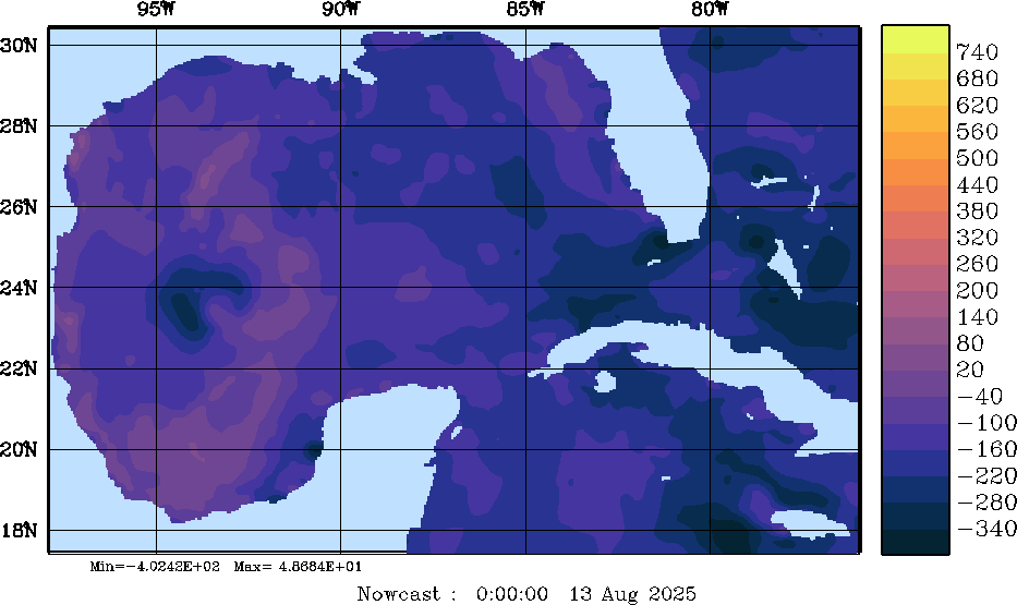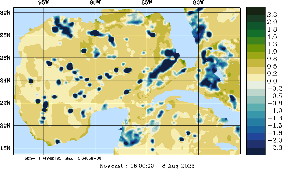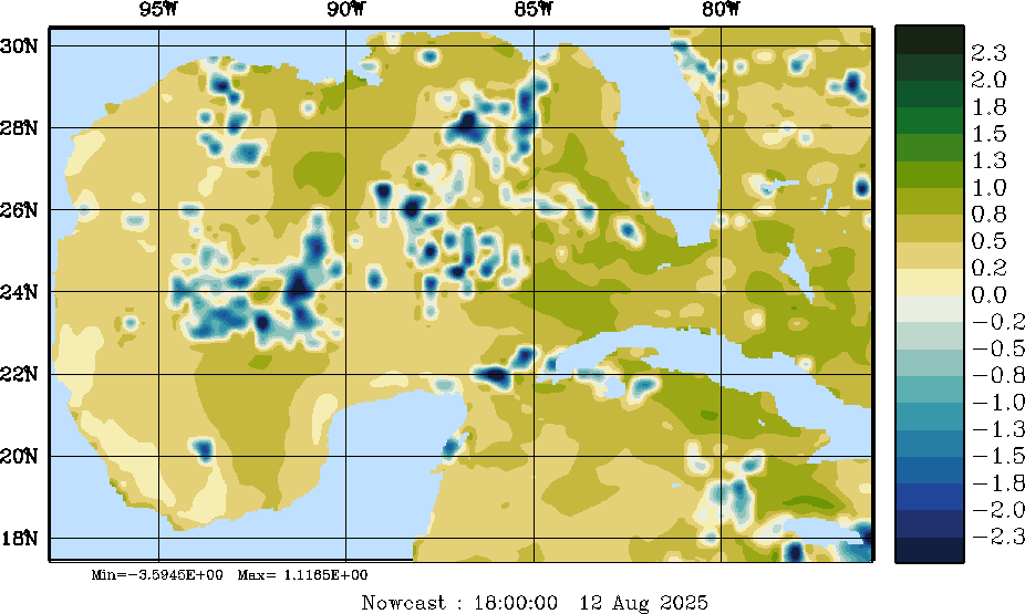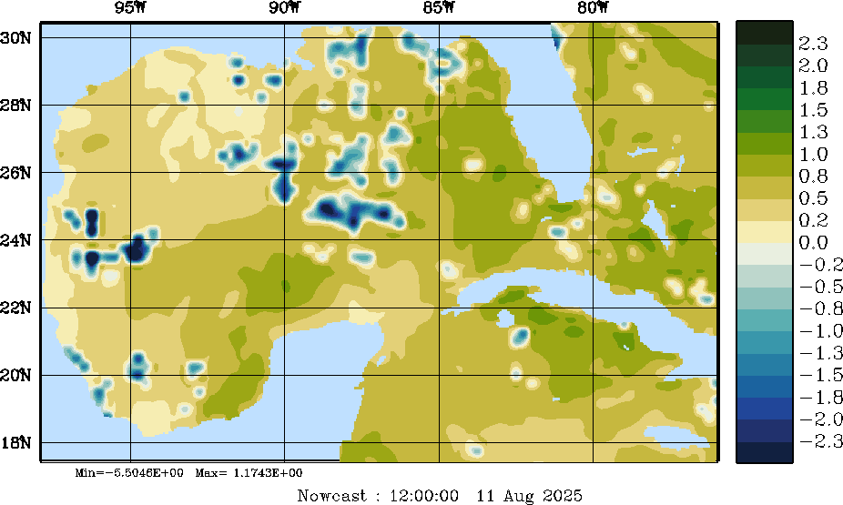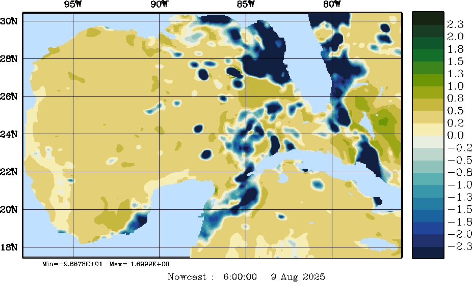 E - P Snapshots (cm/day); processed by MSEAS from merged NCEP fields |