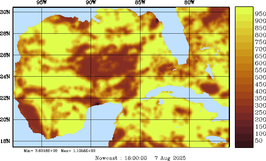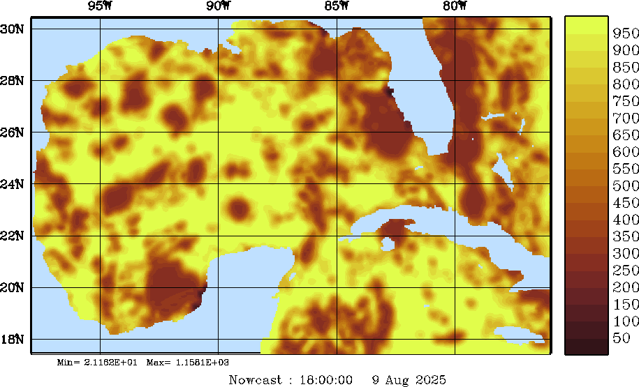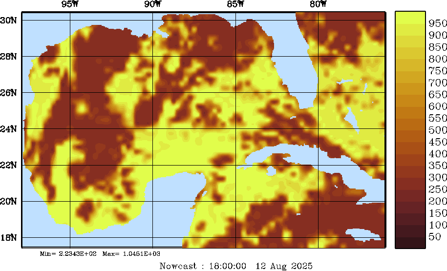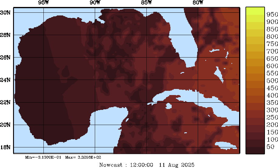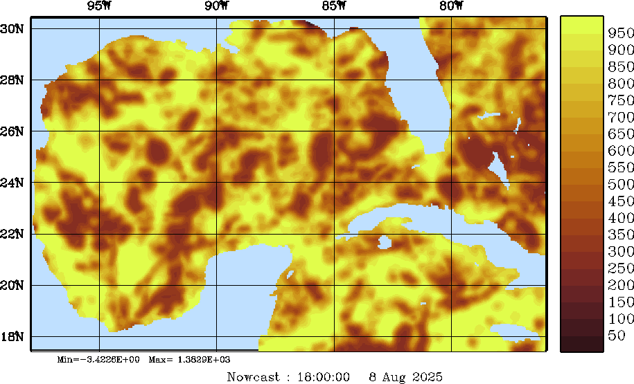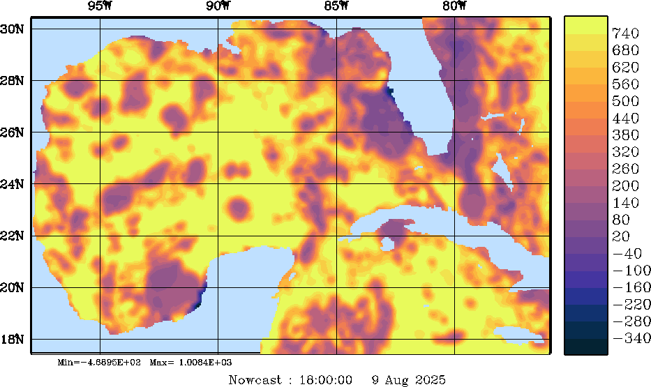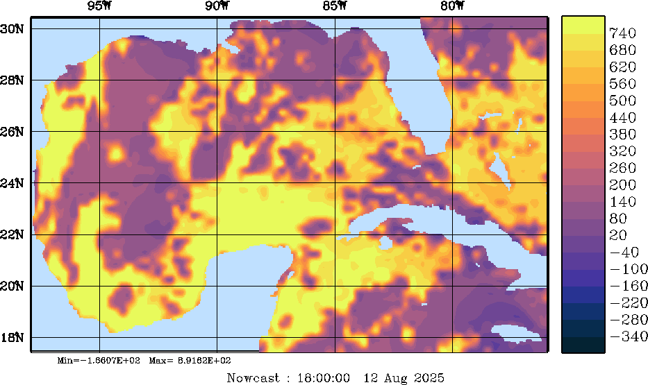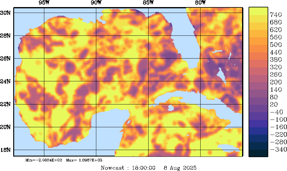 SW Radiation Snapshots (W/m2); processed by MSEAS from merged NCEP fields |