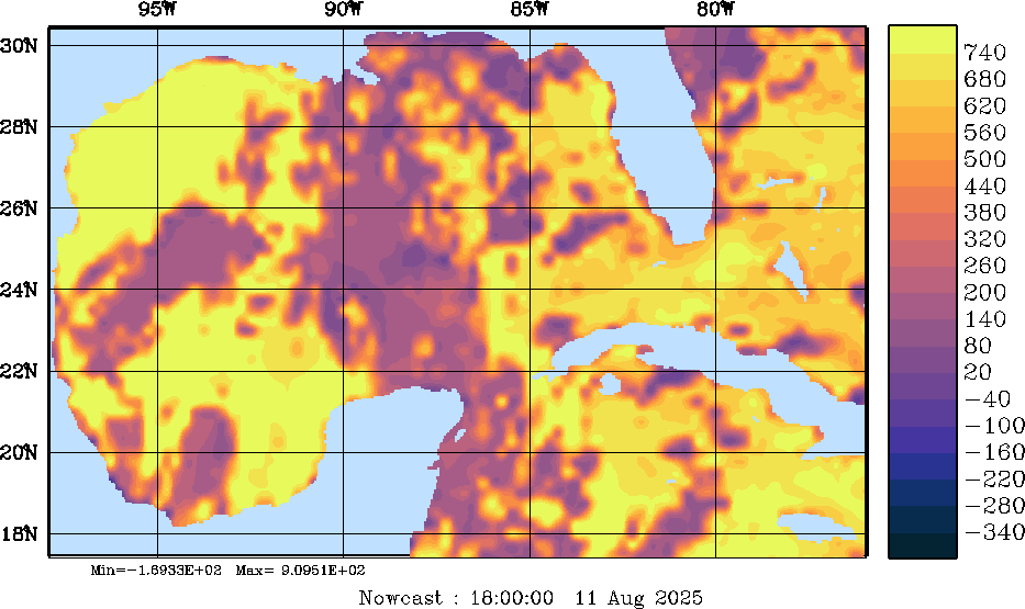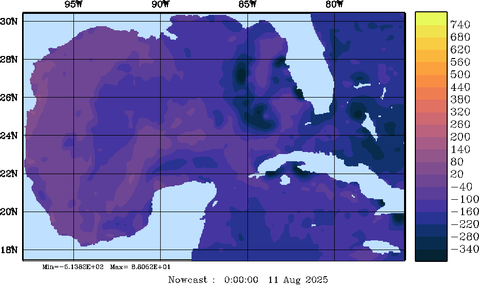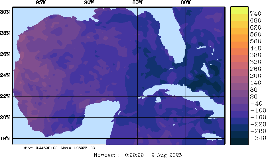 Net Heat Flux Snapshots (W/m2); processed by MSEAS from merged NCEP fields |