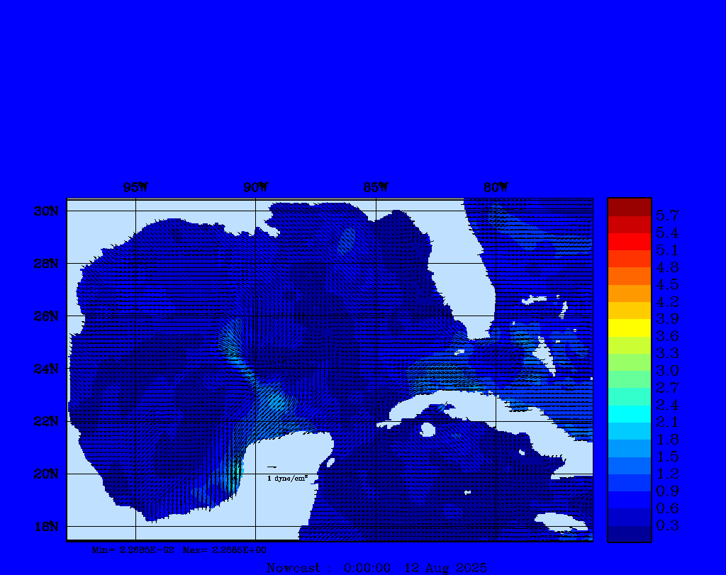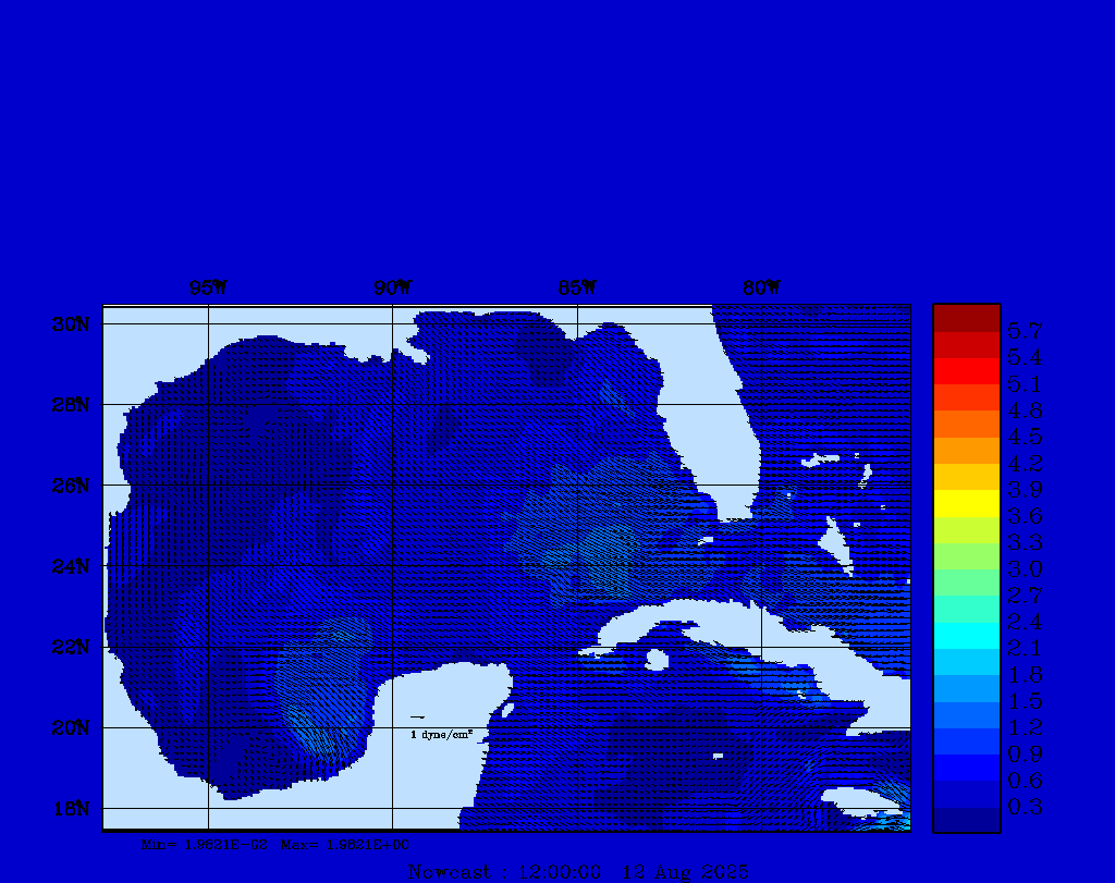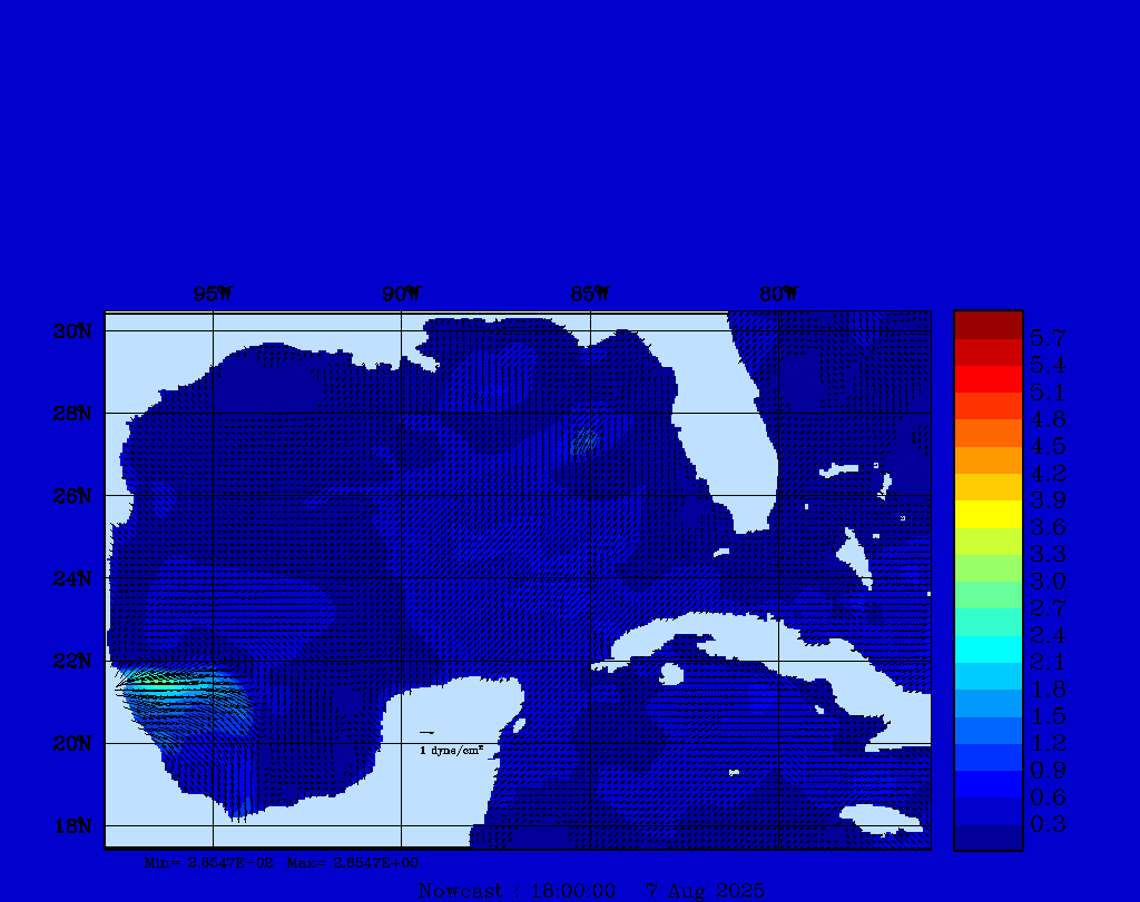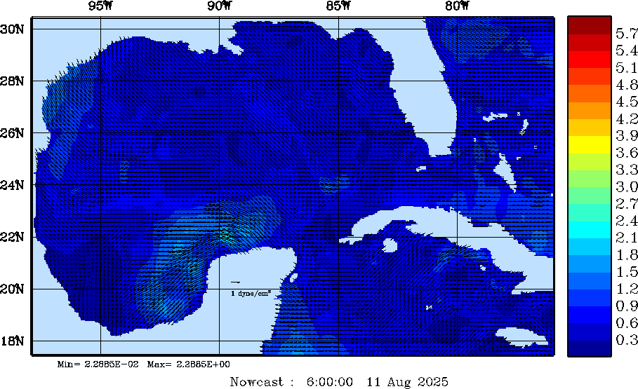 Wind Stress Snapshots (dynes/cm2); processed by MSEAS from merged NCEP fields |