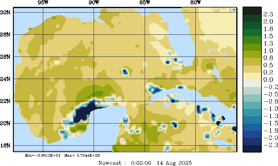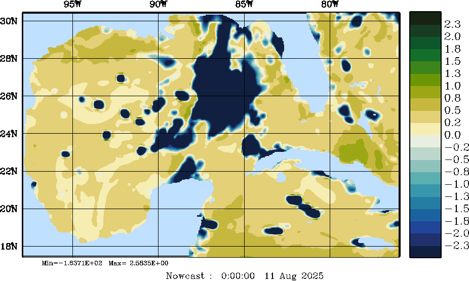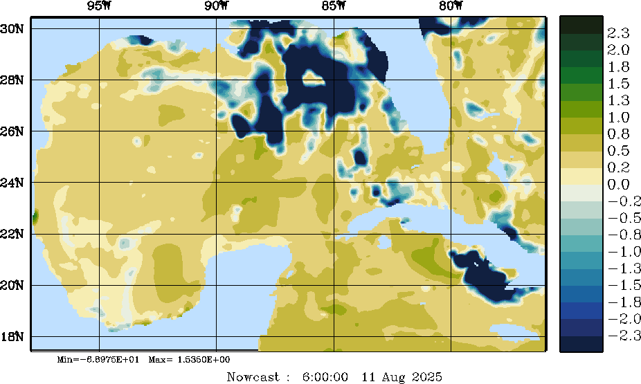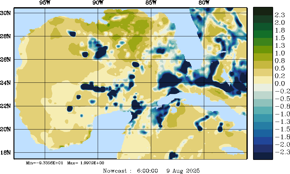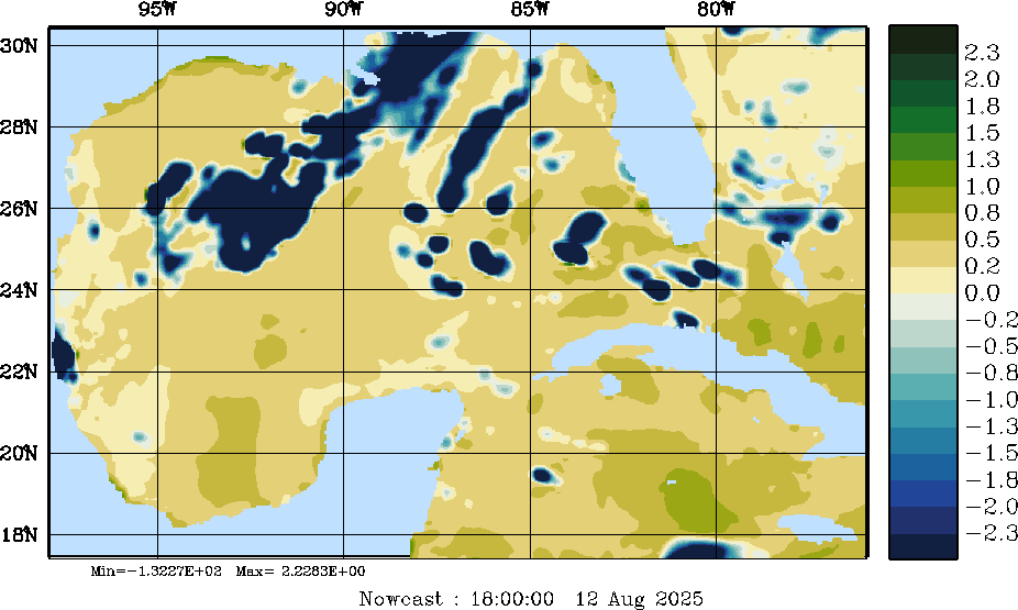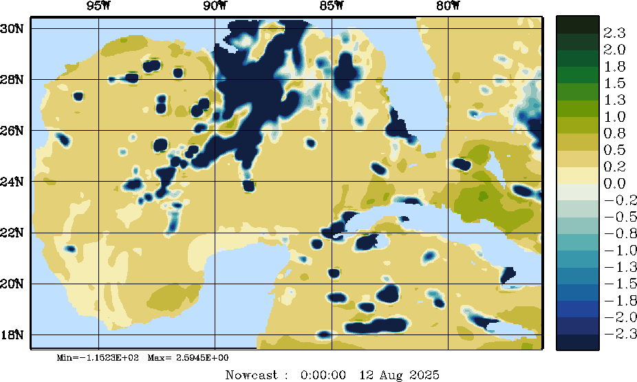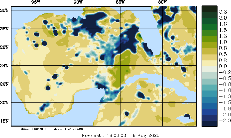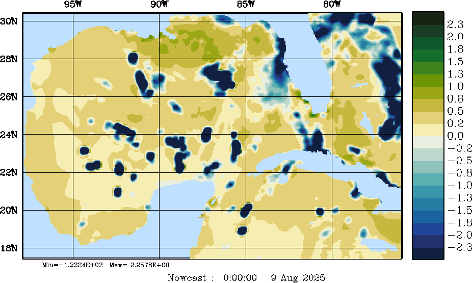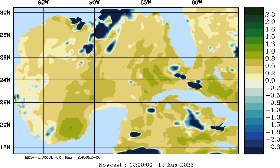 | E - P Snapshots (cm/day); processed by MSEAS from merged NCEP fields |