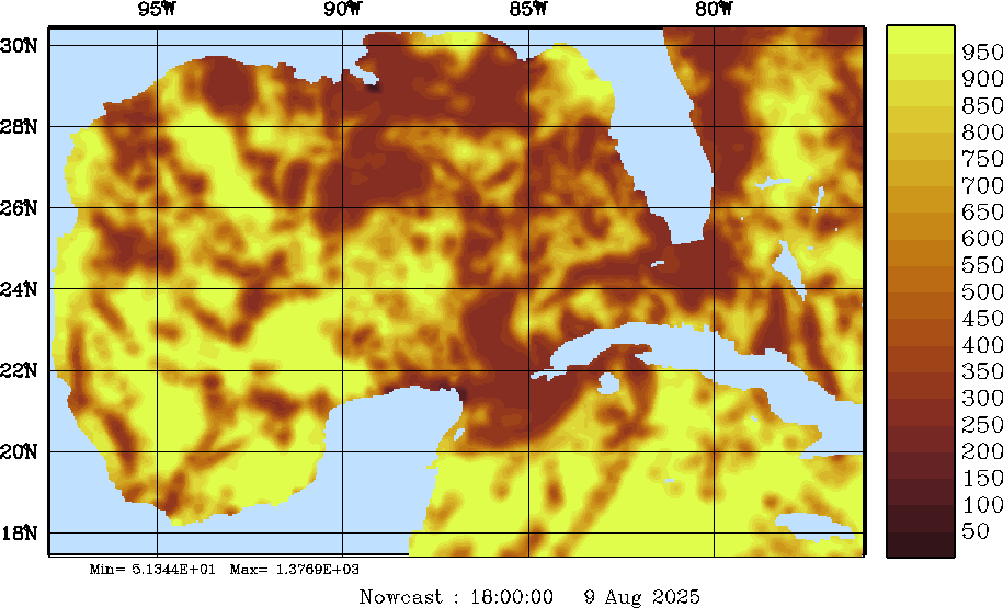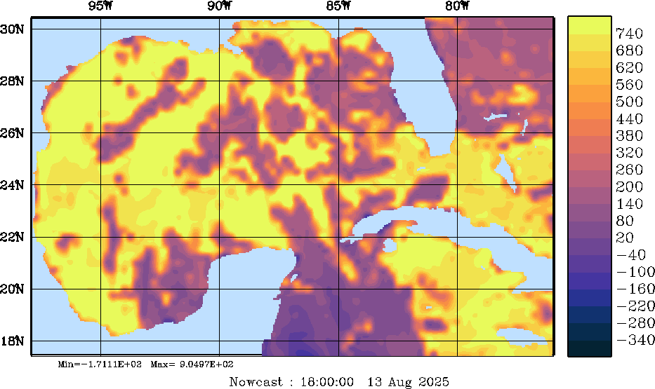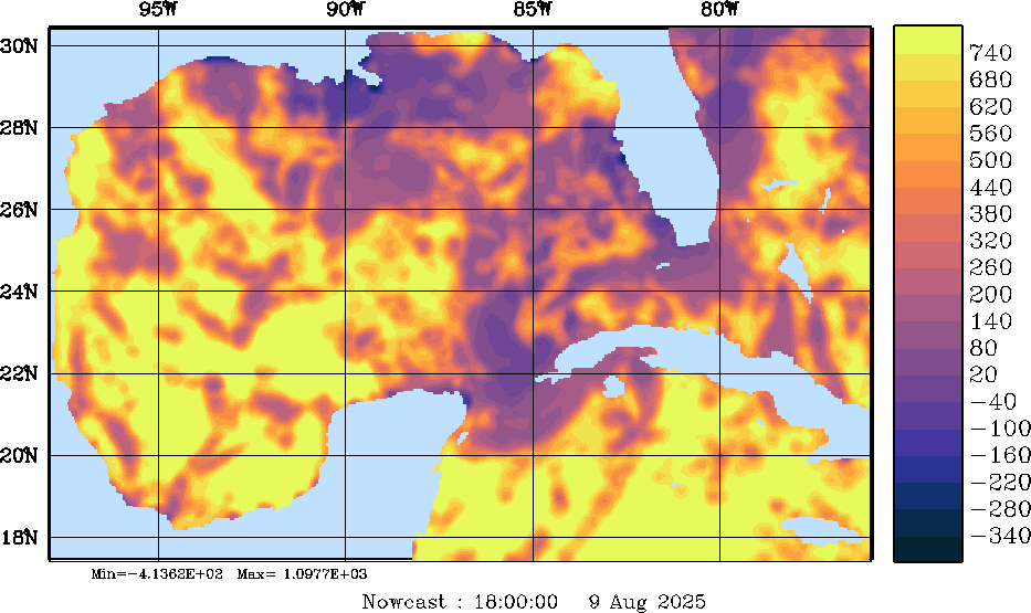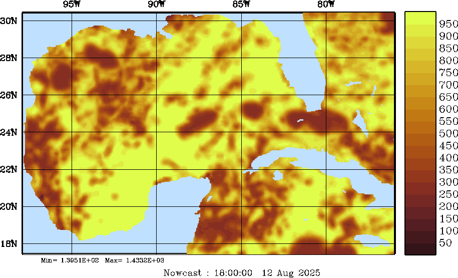 | SW Radiation Snapshots (W/m2); processed by MSEAS from merged NCEP fields |