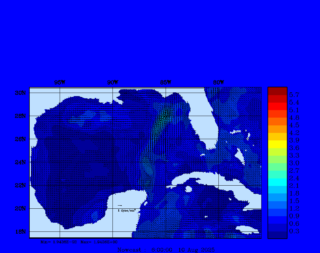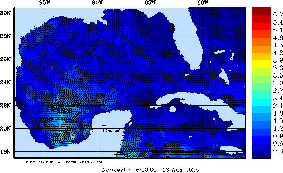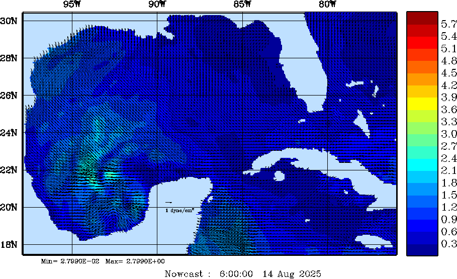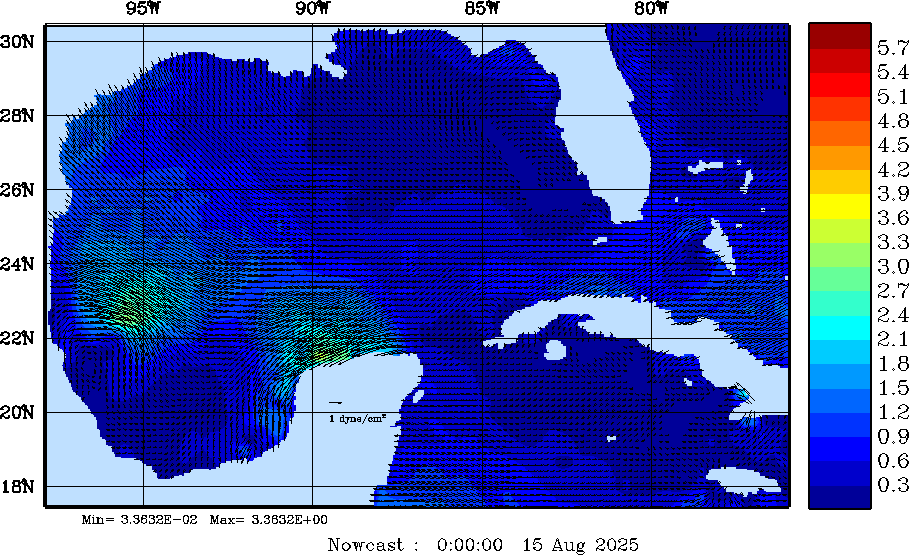 | Wind Stress Snapshots (dynes/cm2); processed by MSEAS from merged NCEP fields |
