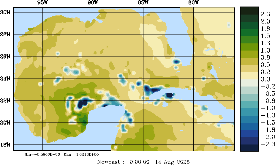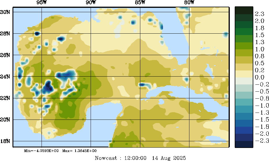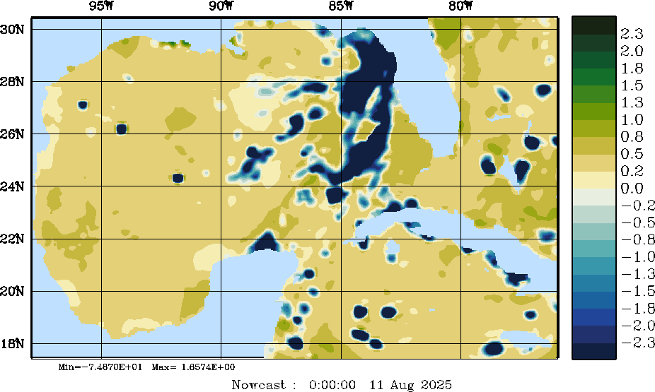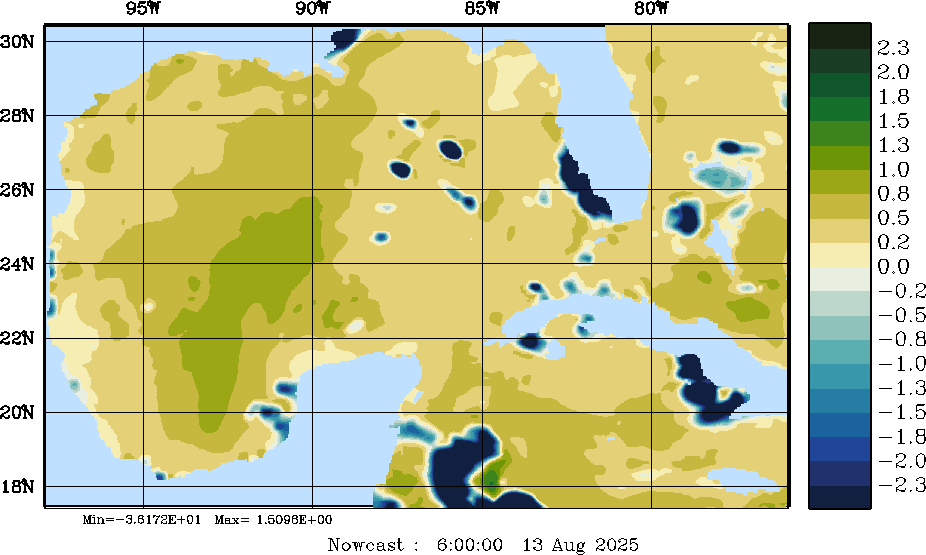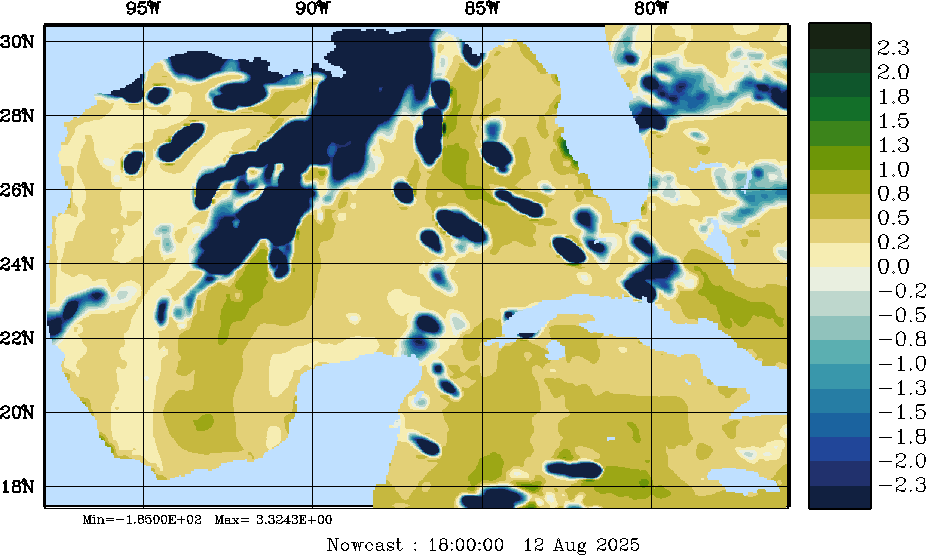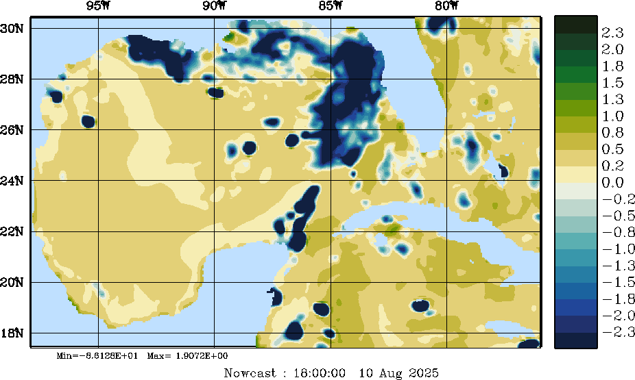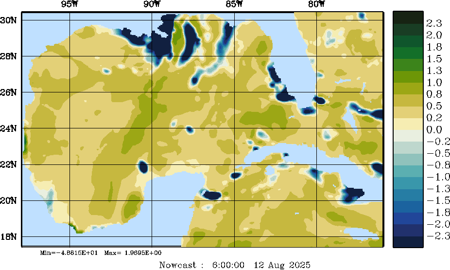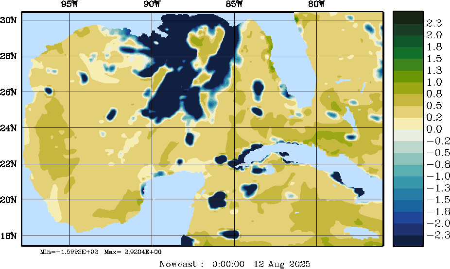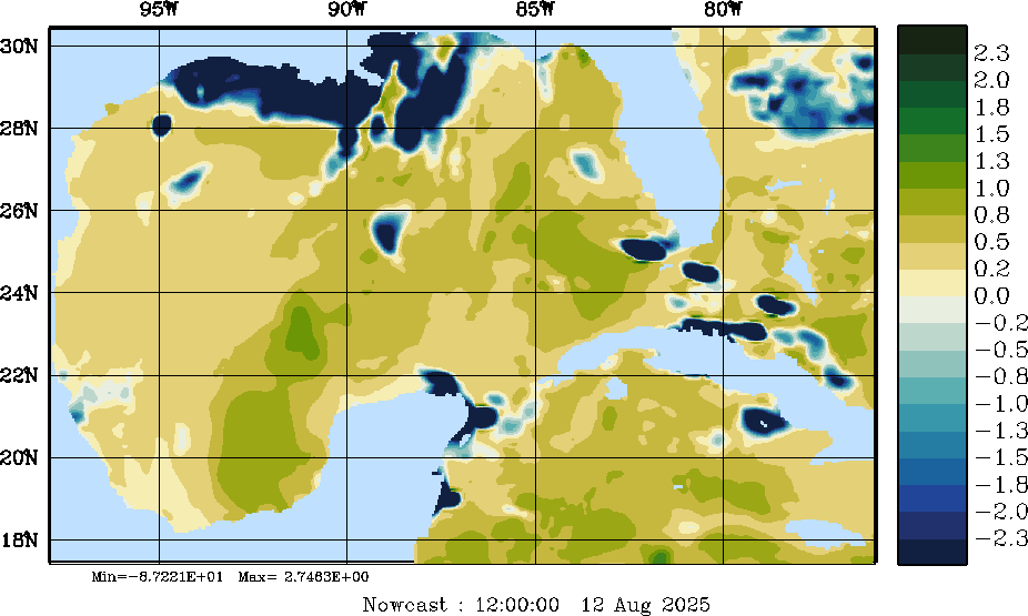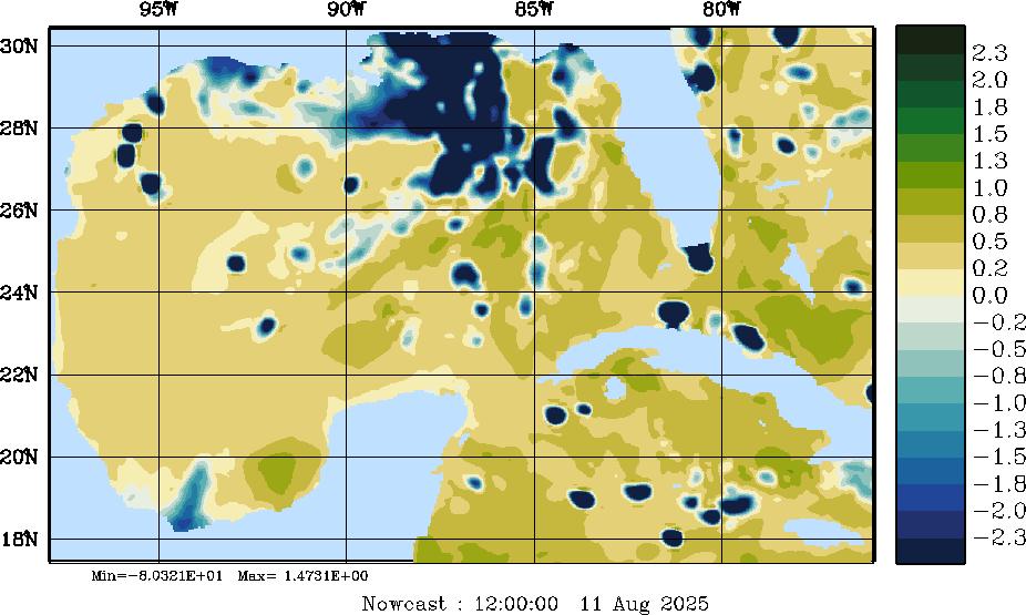 | E - P Snapshots (cm/day); processed by MSEAS from merged NCEP fields |