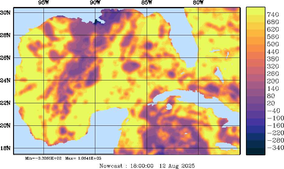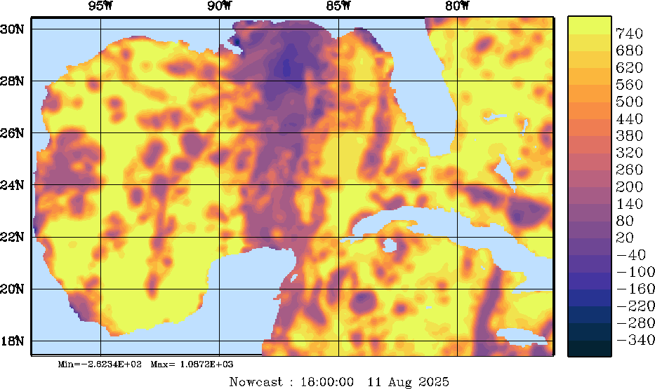 | SW Radiation Snapshots (W/m2); processed by MSEAS from merged NCEP fields |