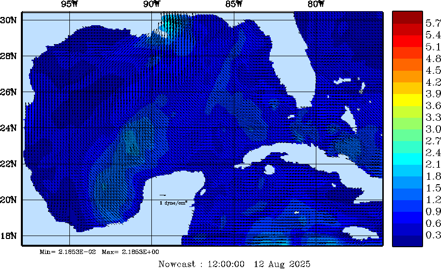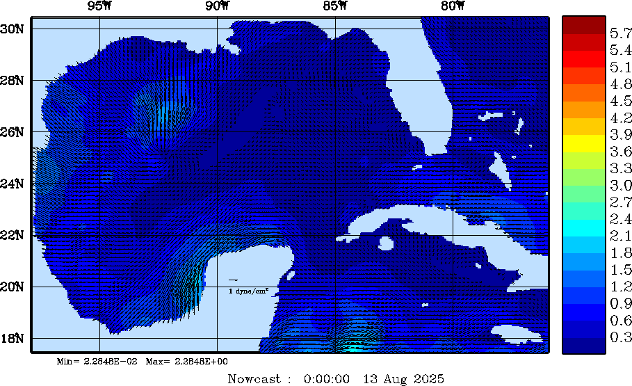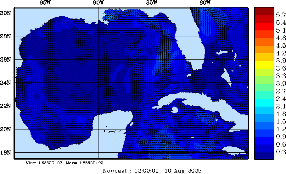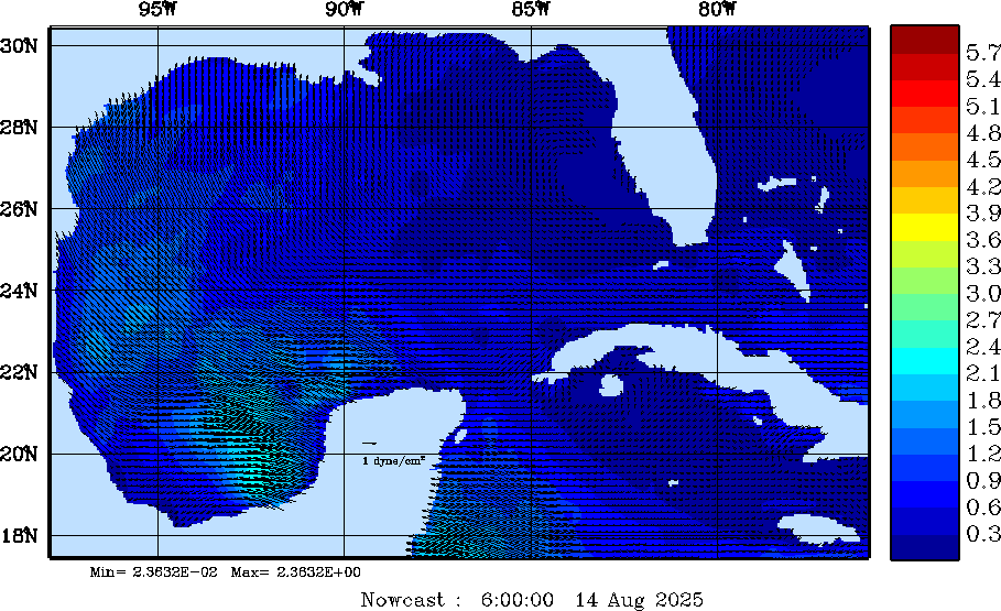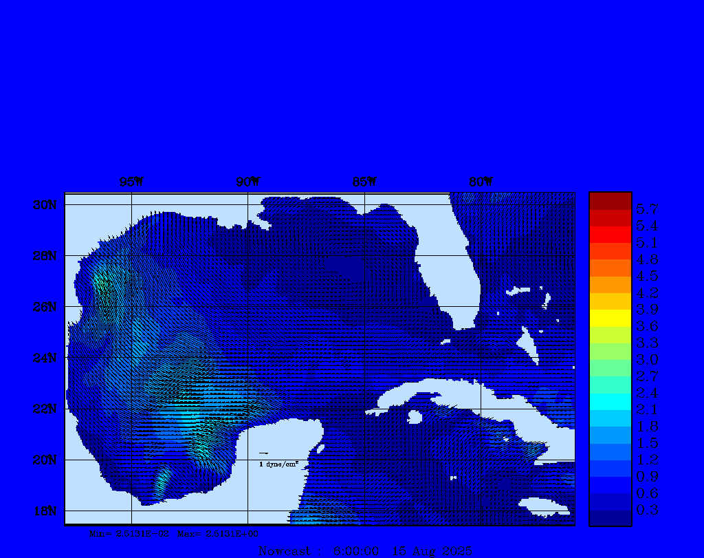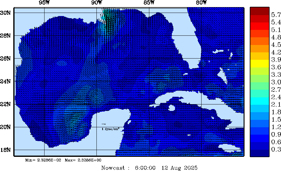| Wind Stress Snapshots (dynes/cm2); processed by MSEAS from merged NCEP fields |