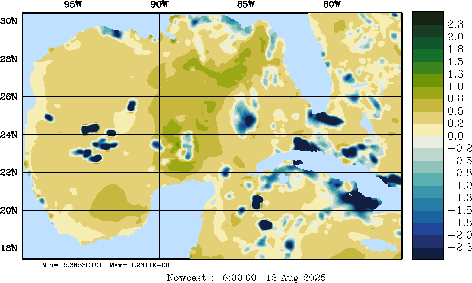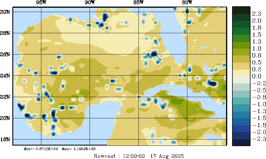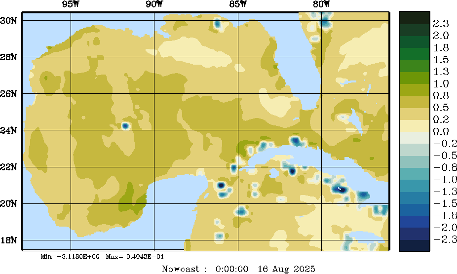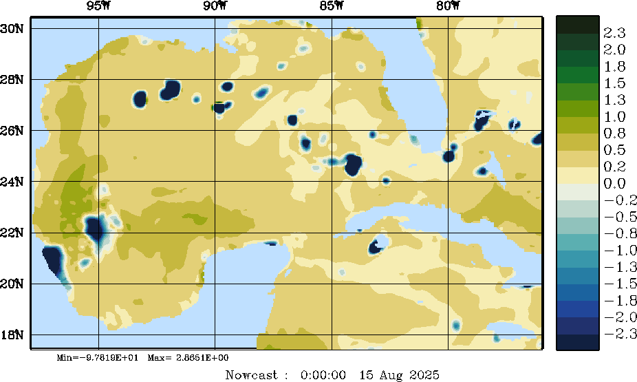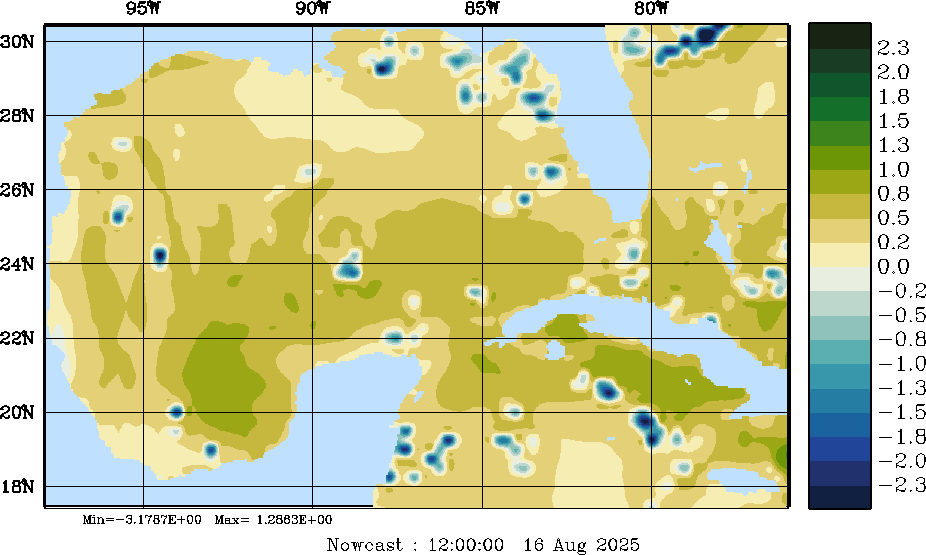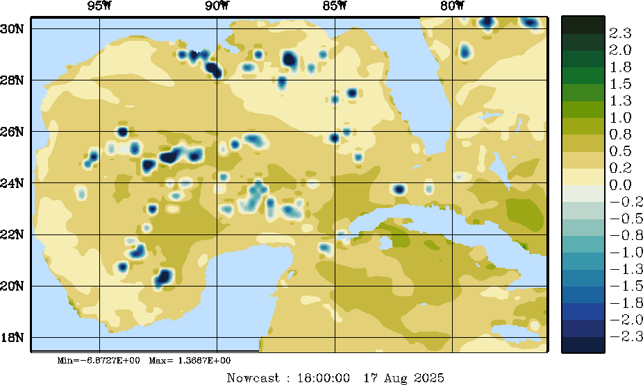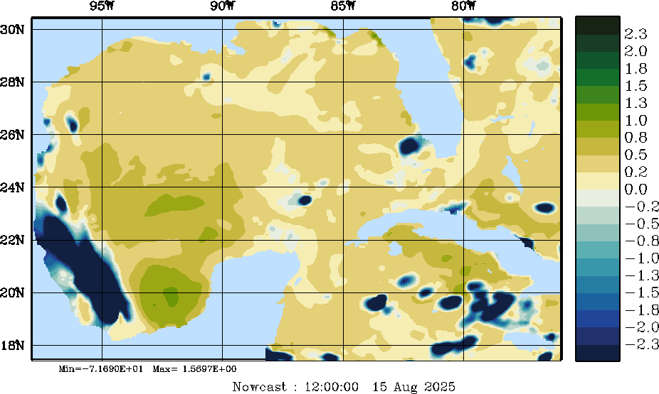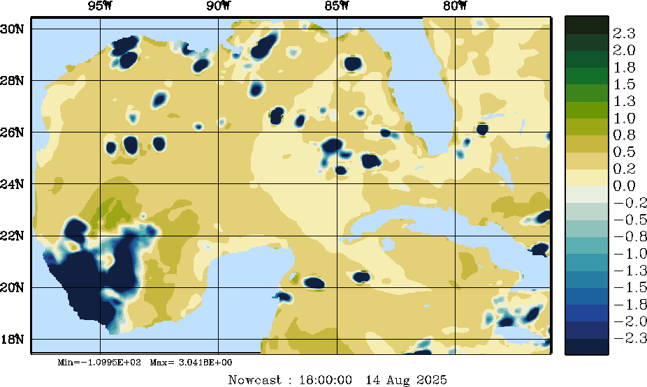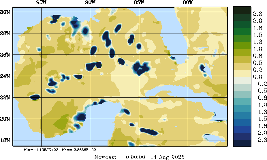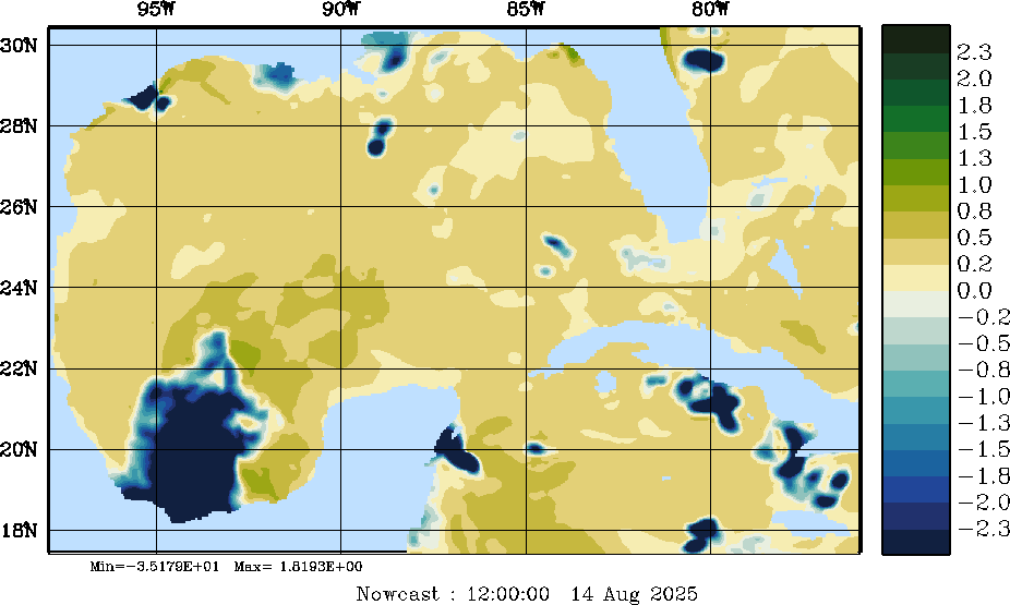 E - P Snapshots (cm/day); processed by MSEAS from merged NCEP fields |