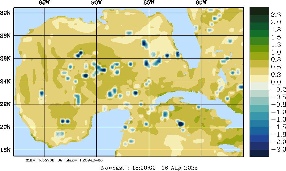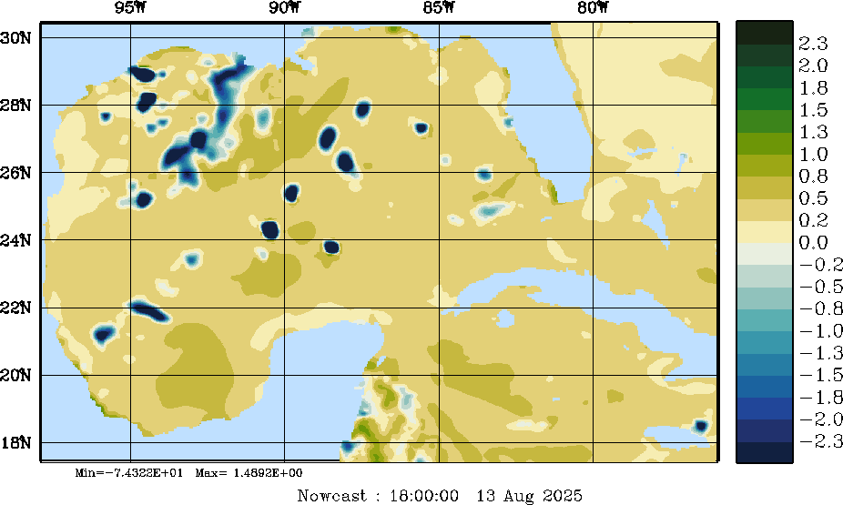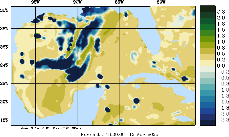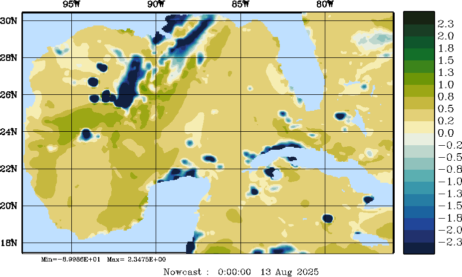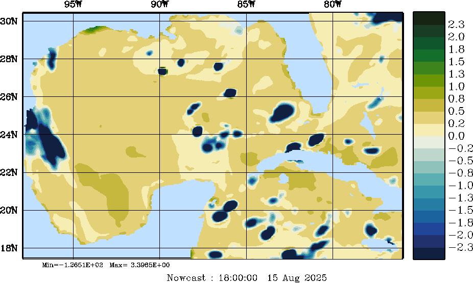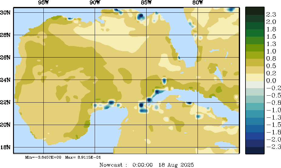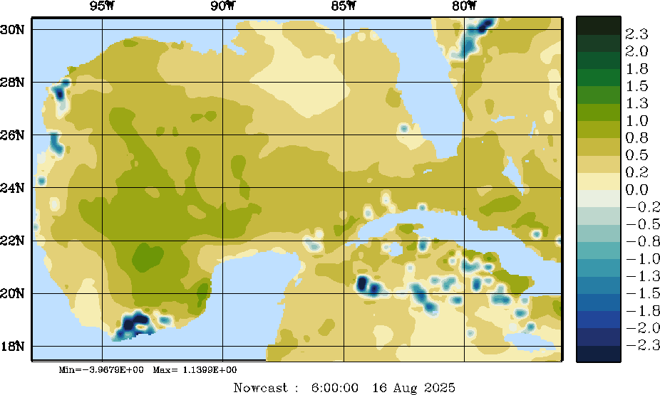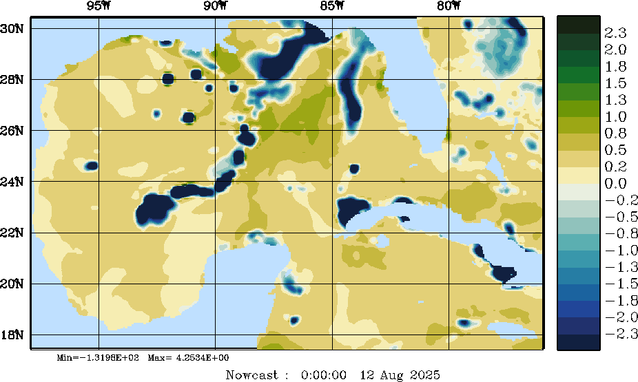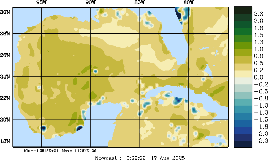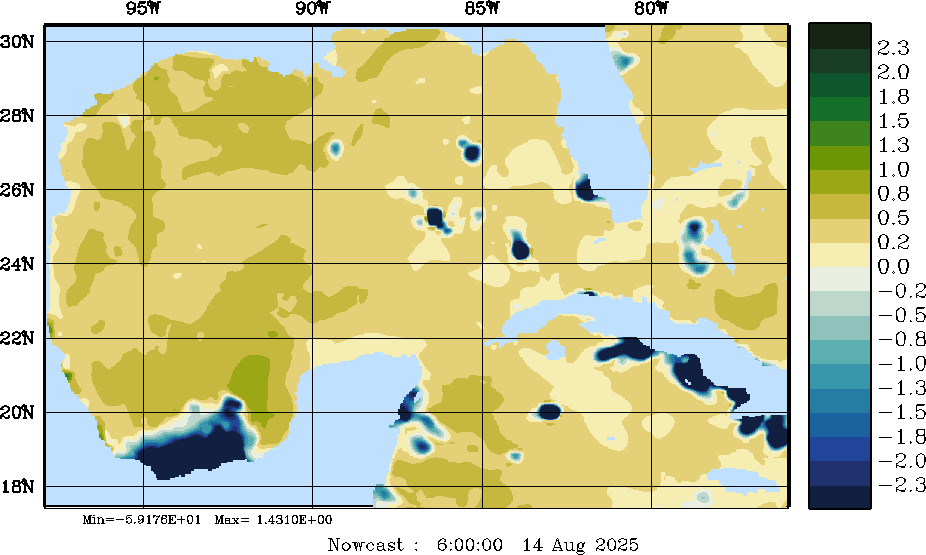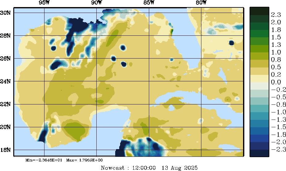 E - P Snapshots (cm/day); processed by MSEAS from merged NCEP fields |