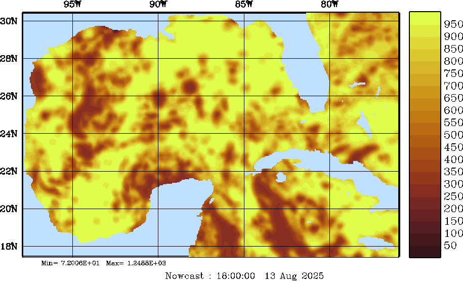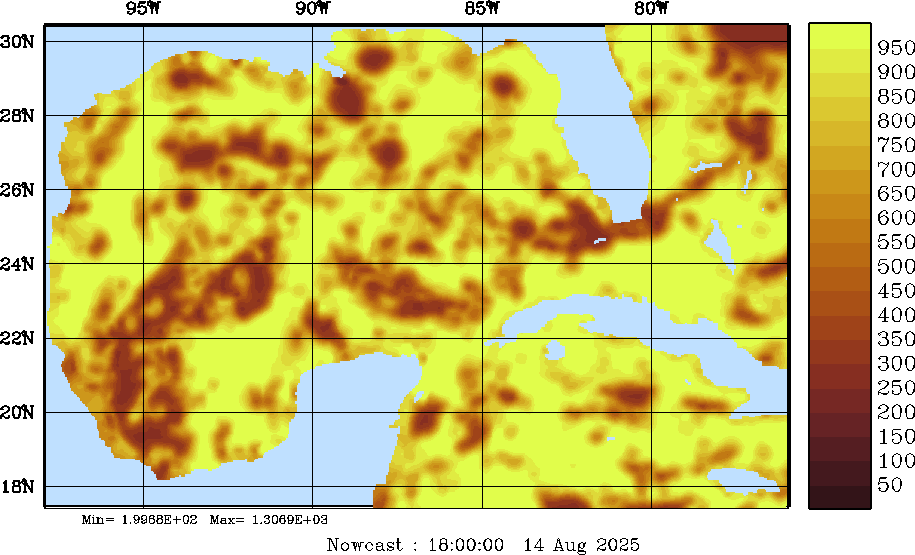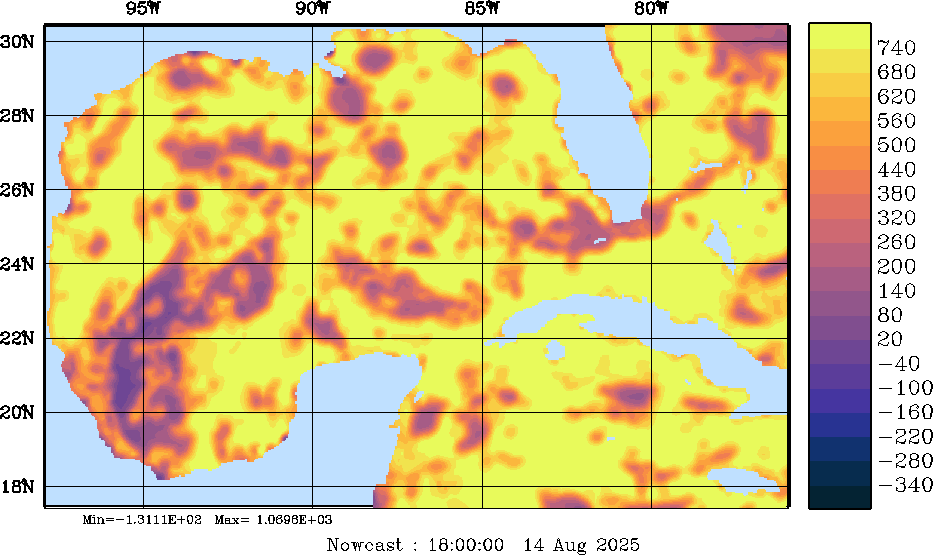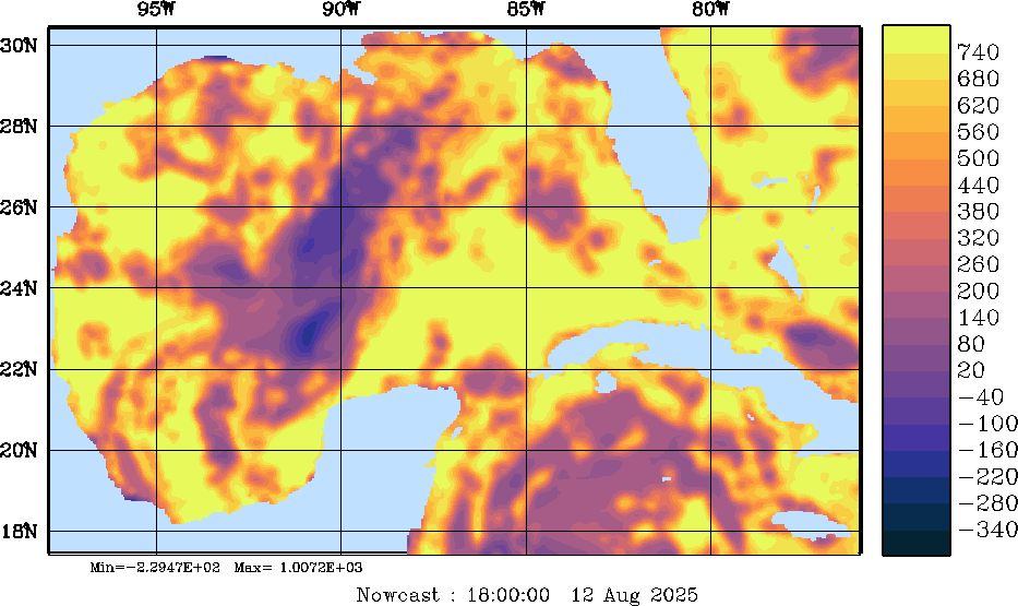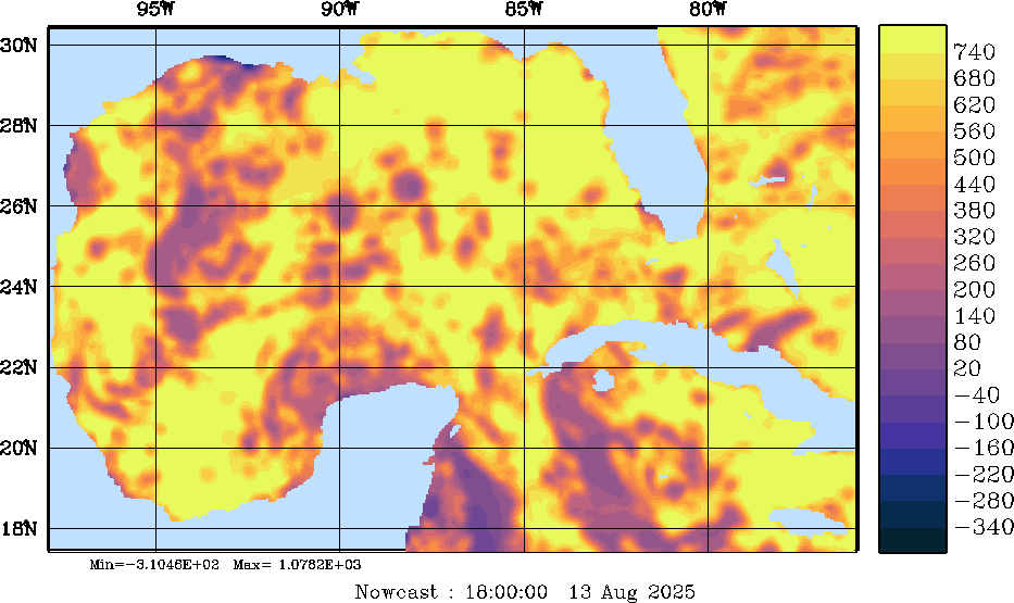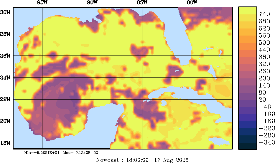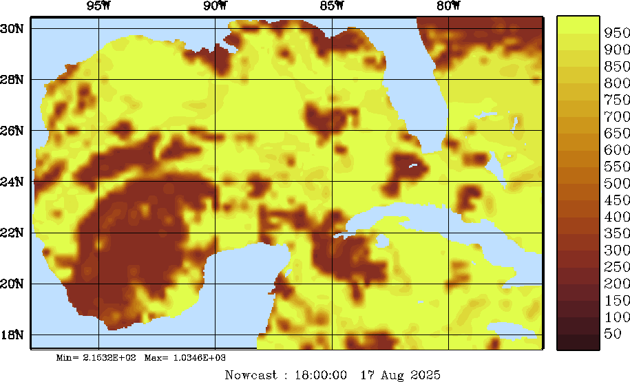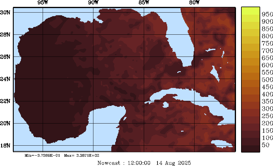 SW Radiation Snapshots (W/m2); processed by MSEAS from merged NCEP fields |