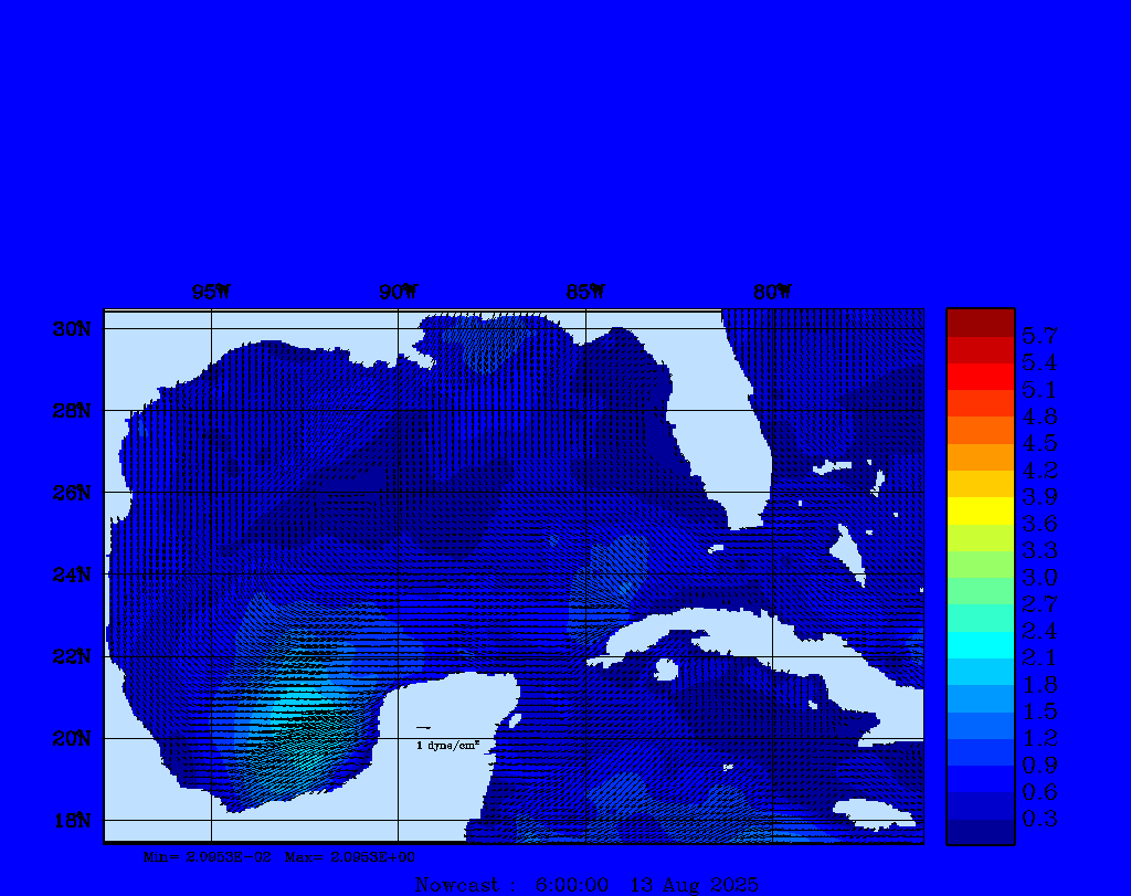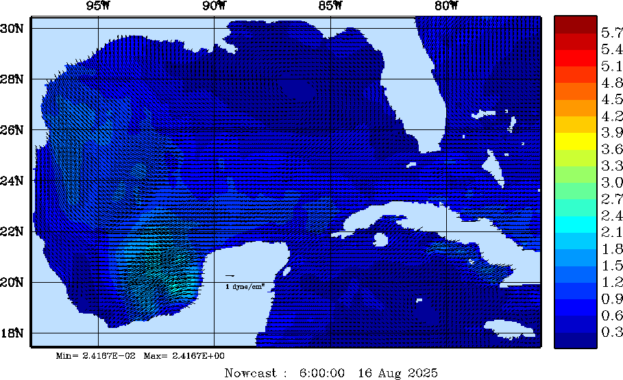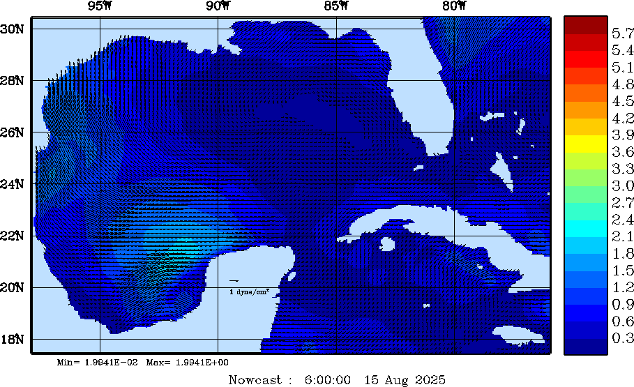 Wind Stress Snapshots (dynes/cm2); processed by MSEAS from merged NCEP fields |