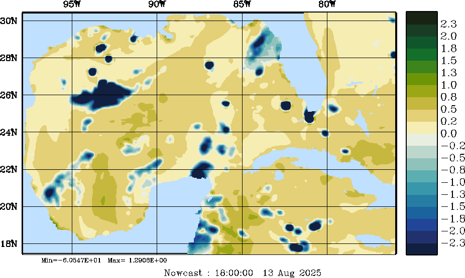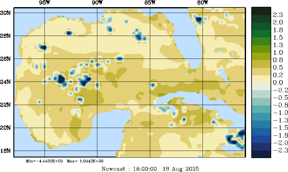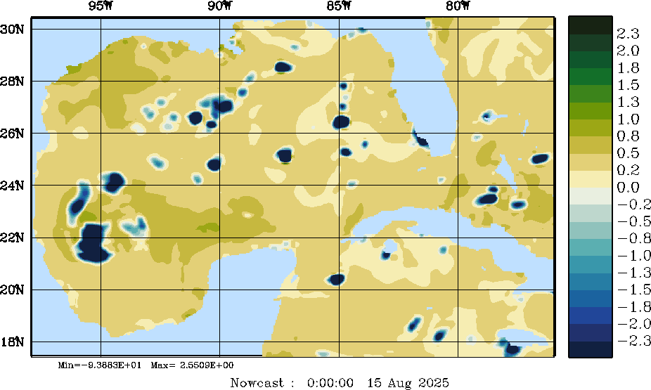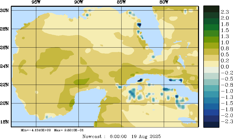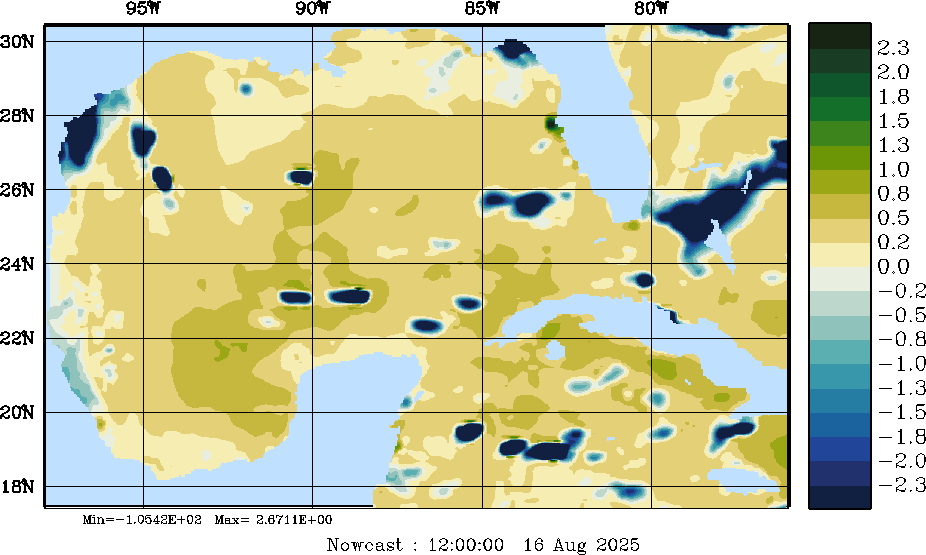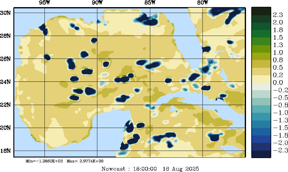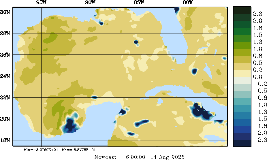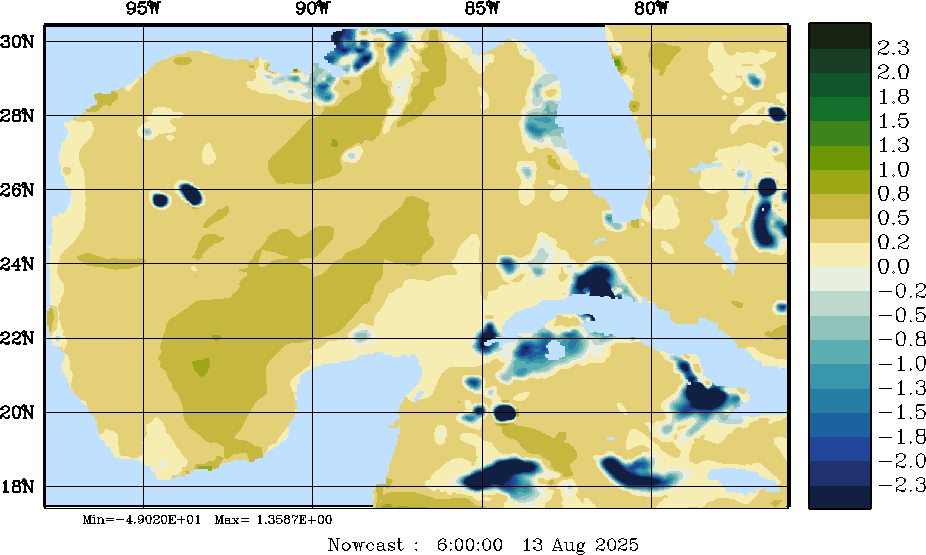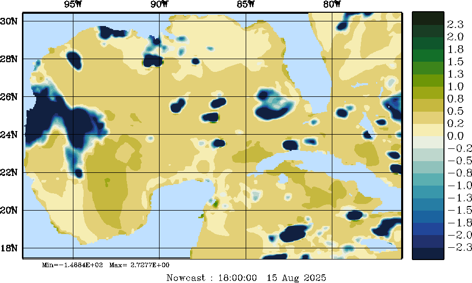 | E - P Snapshots (cm/day); processed by MSEAS from merged NCEP fields |