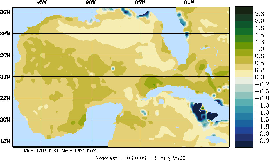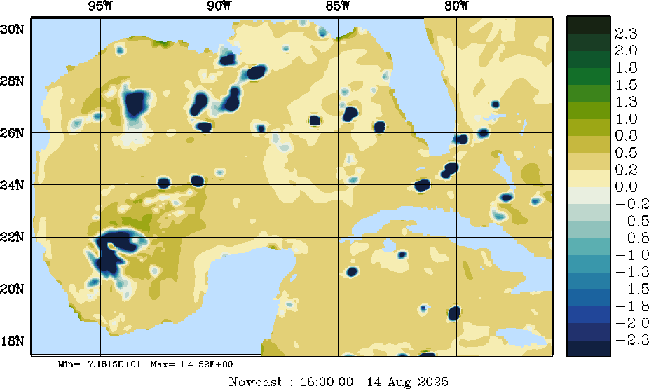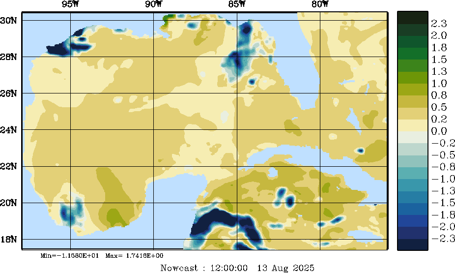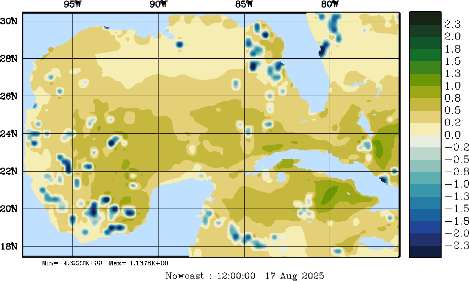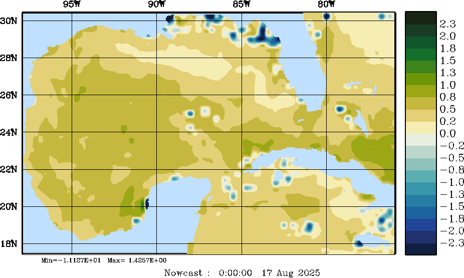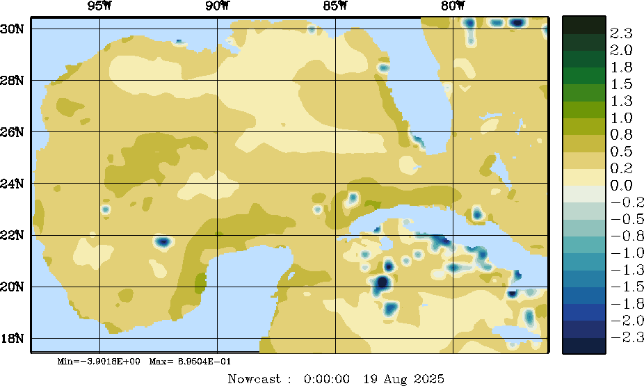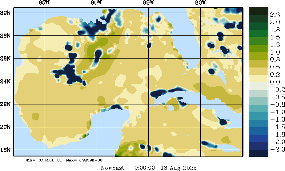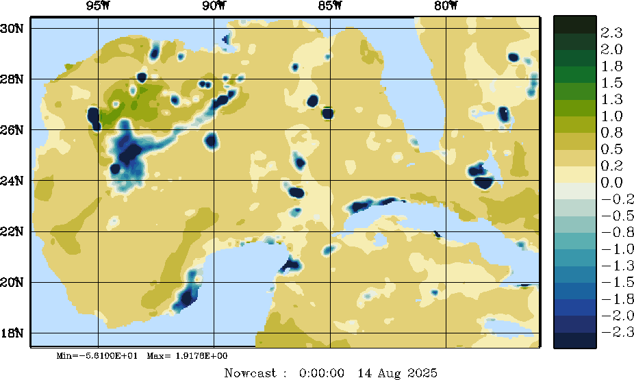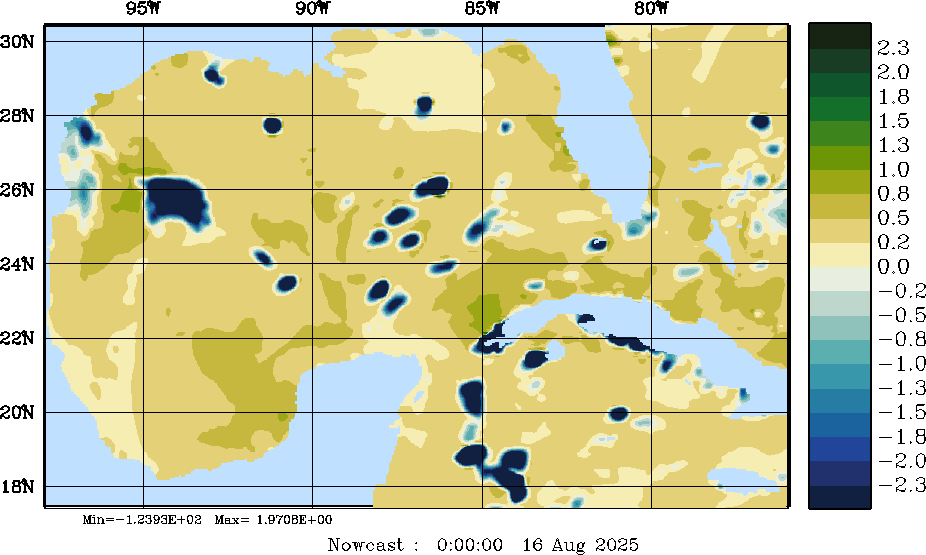 | E - P Snapshots (cm/day); processed by MSEAS from merged NCEP fields |