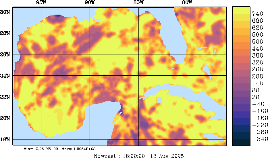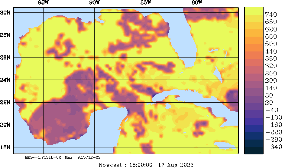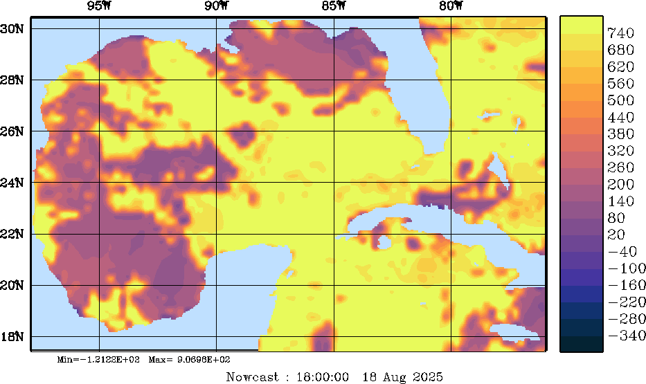 | SW Radiation Snapshots (W/m2); processed by MSEAS from merged NCEP fields |
