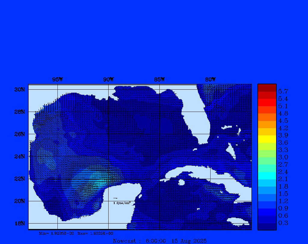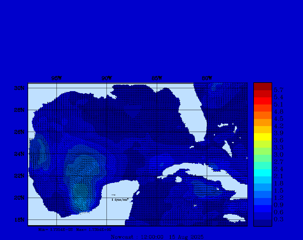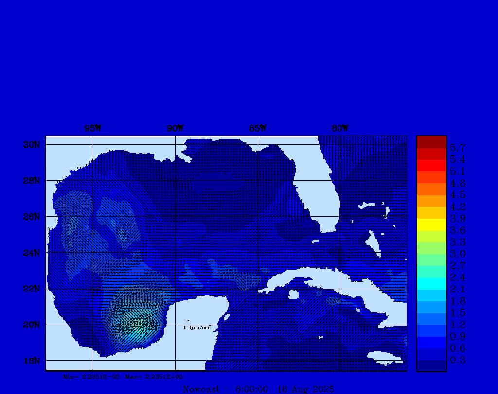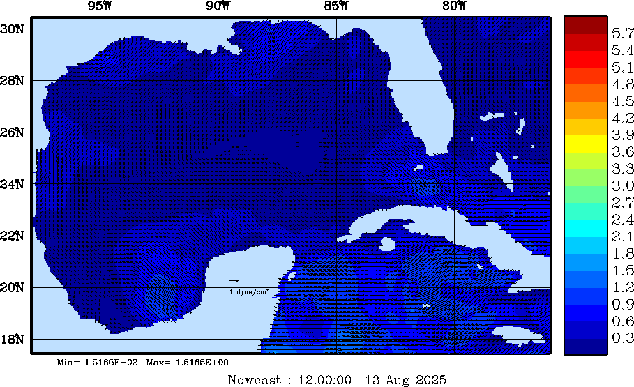 | Wind Stress Snapshots (dynes/cm2); processed by MSEAS from merged NCEP fields |