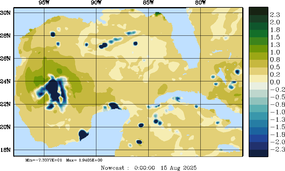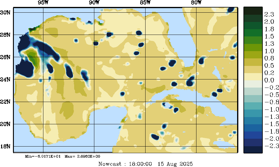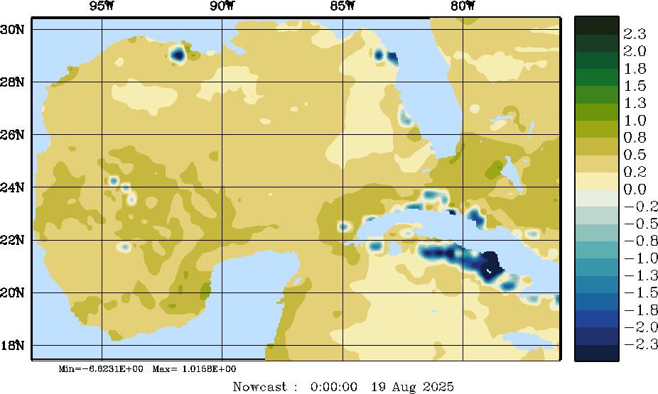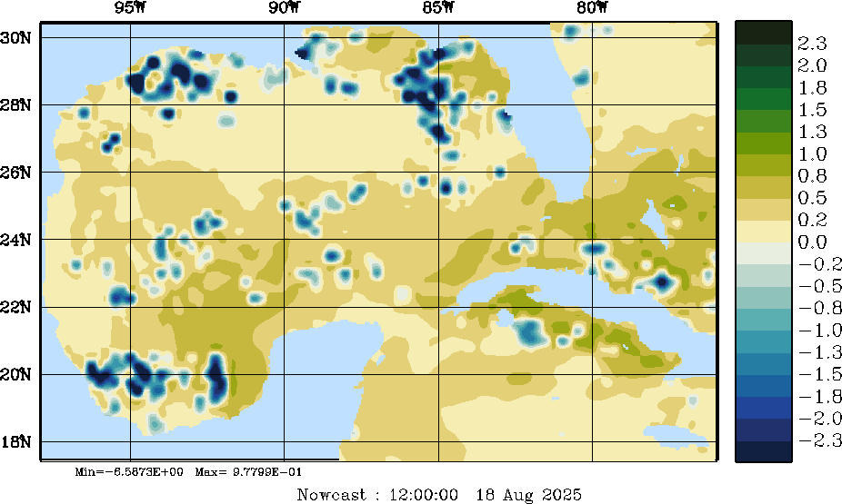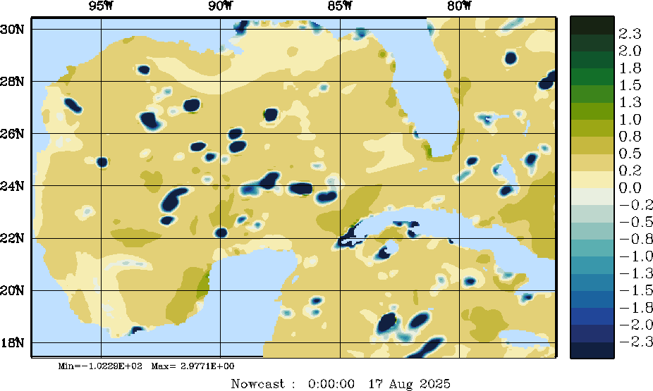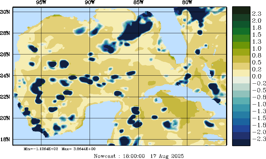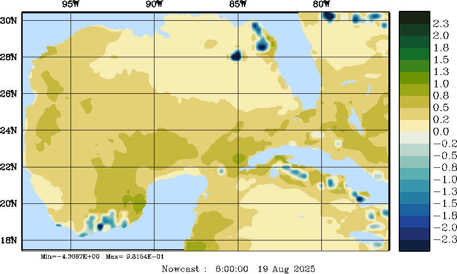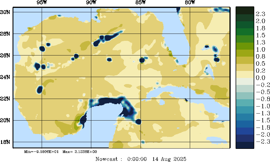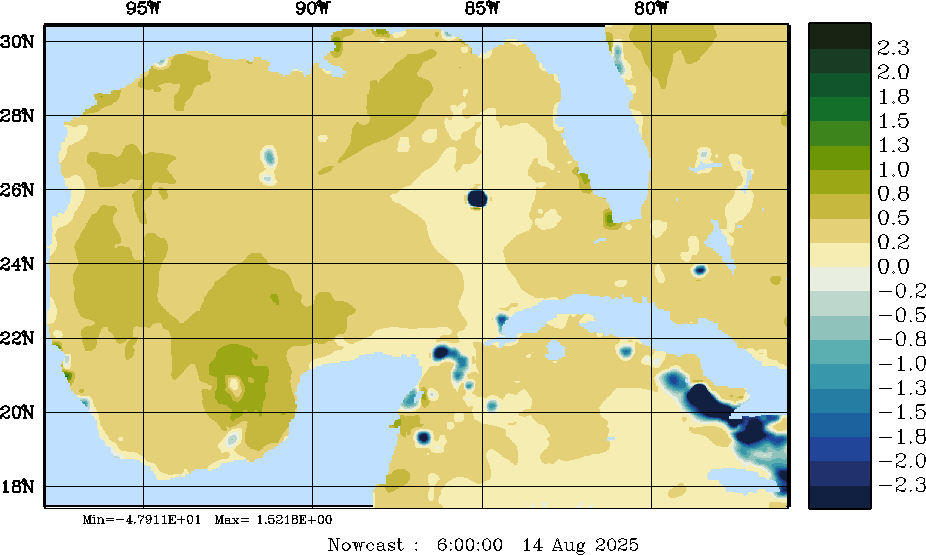 E - P Snapshots (cm/day); processed by MSEAS from merged NCEP fields |
