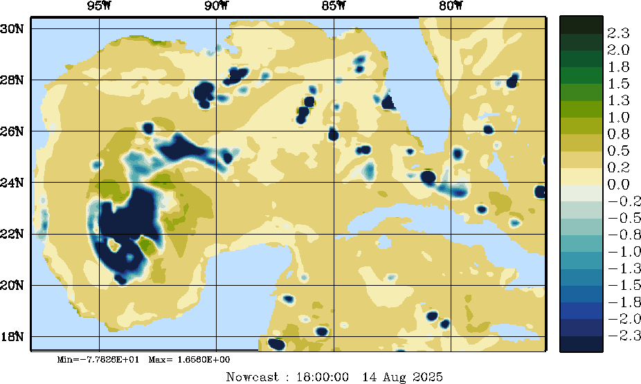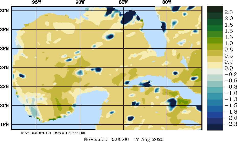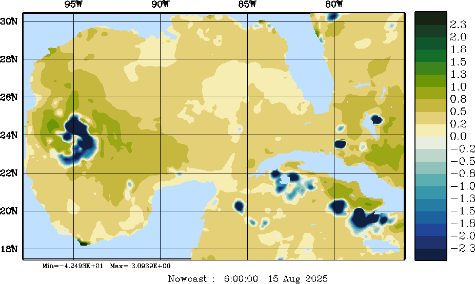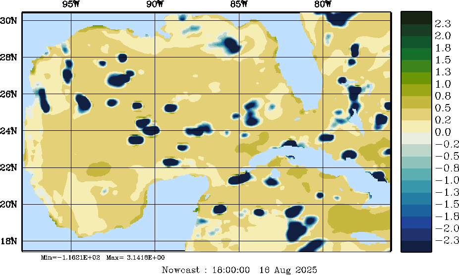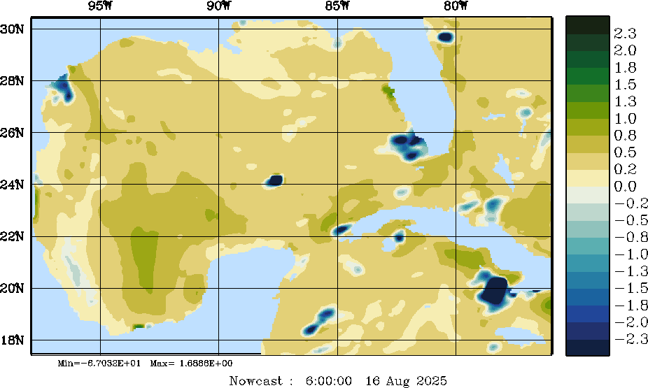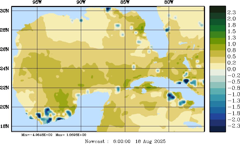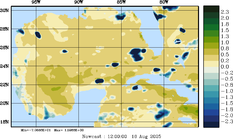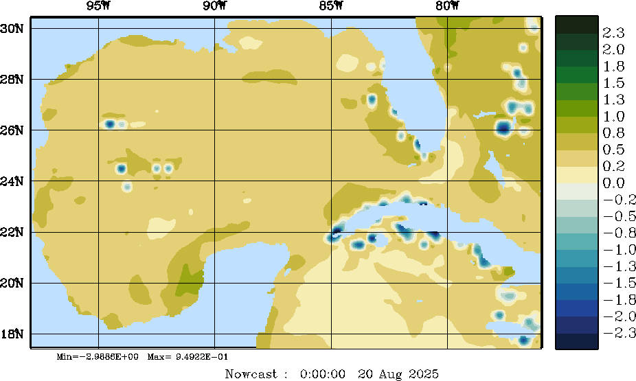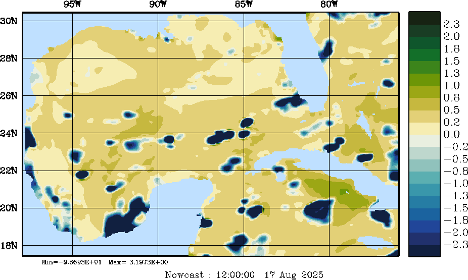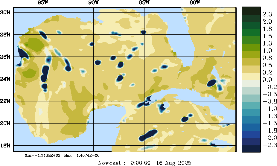 E - P Snapshots (cm/day); processed by MSEAS from merged NCEP fields |