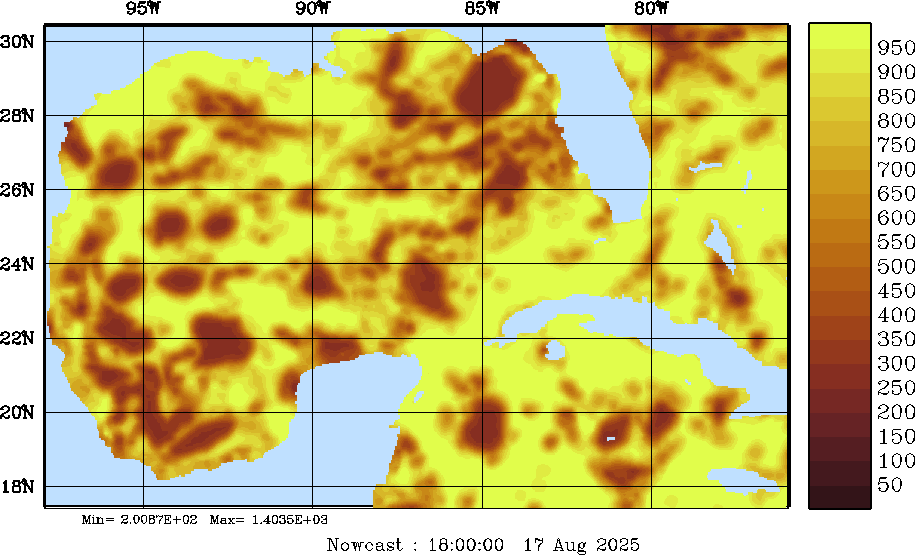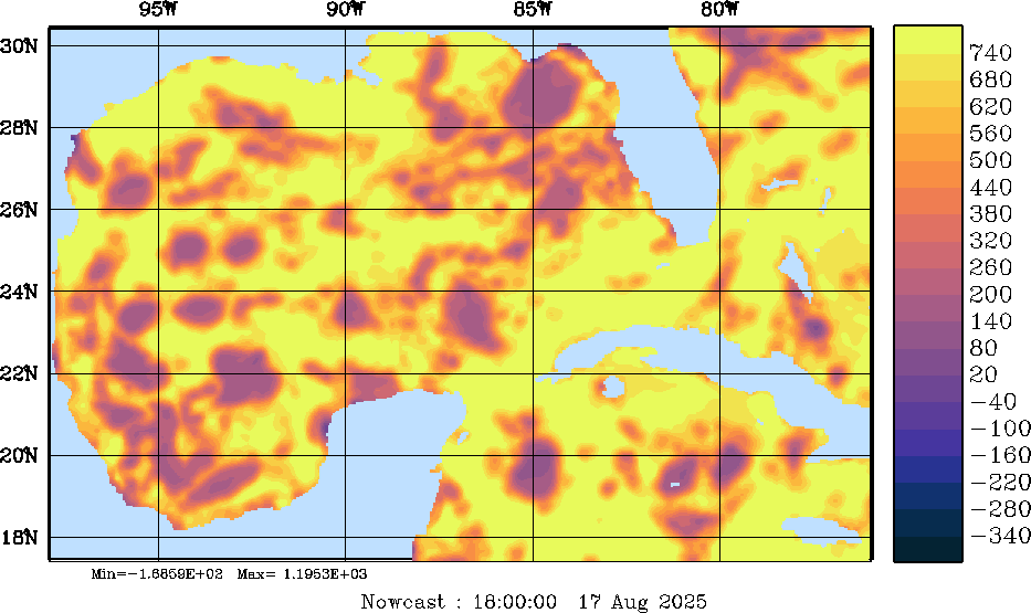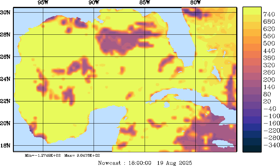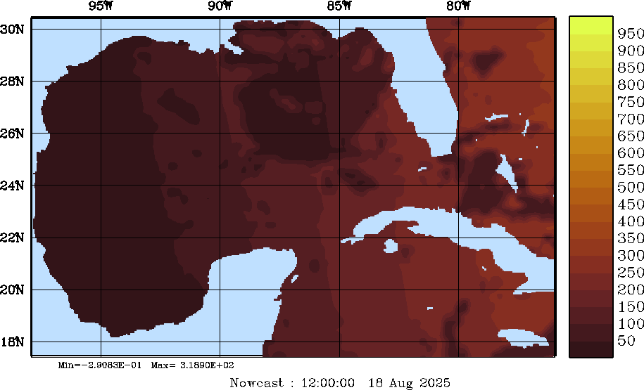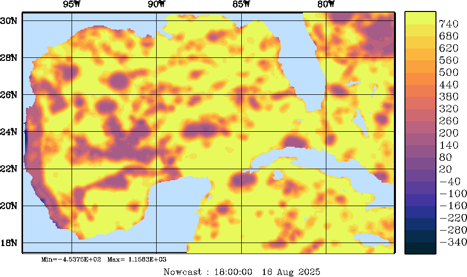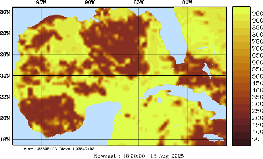SW Radiation Snapshots (W/m2); processed by MSEAS from merged NCEP fields |