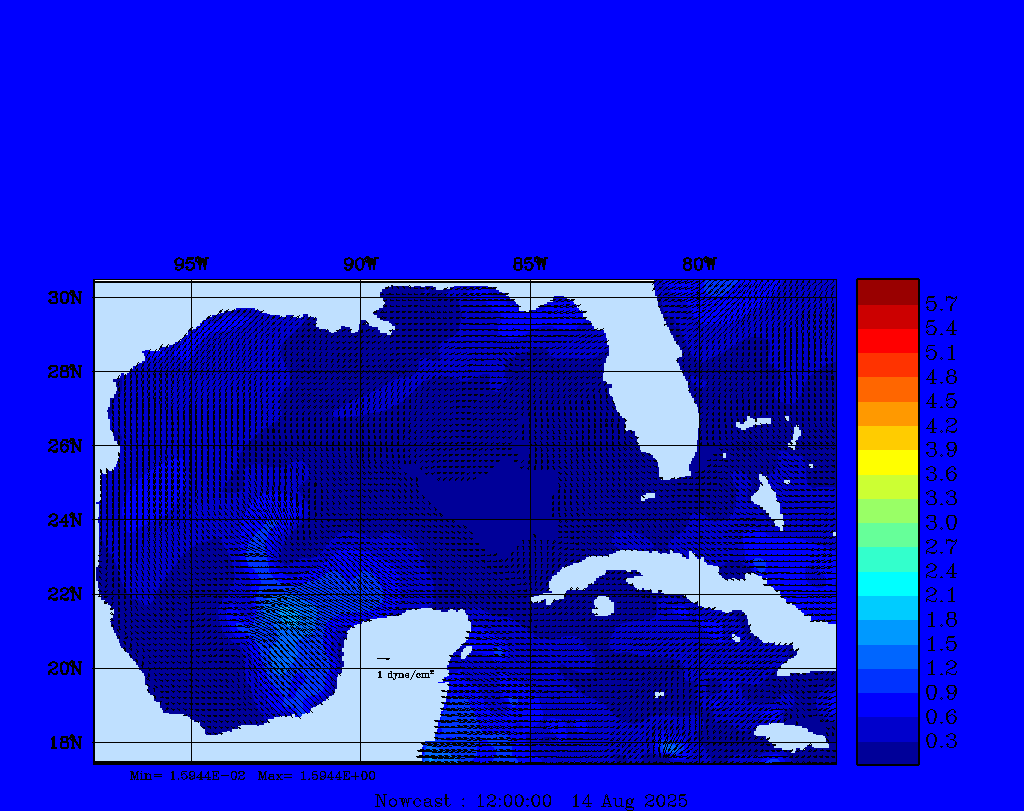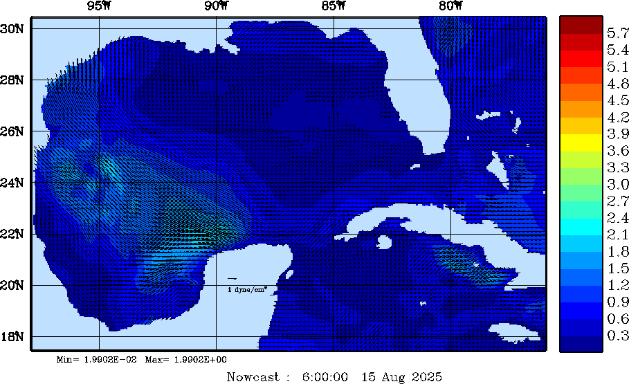 Wind Stress Snapshots (dynes/cm2); processed by MSEAS from merged NCEP fields |
