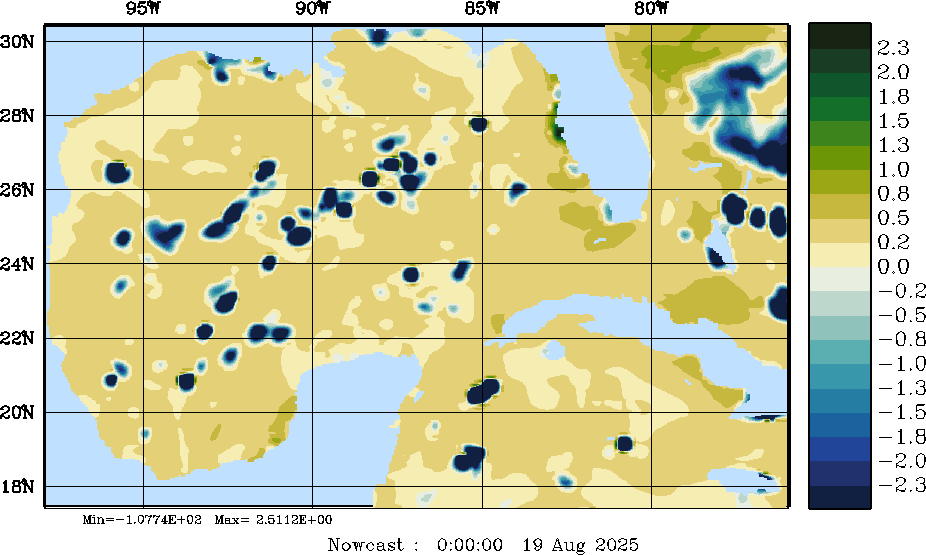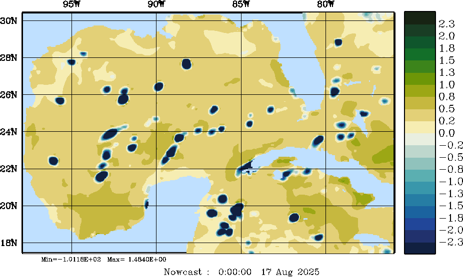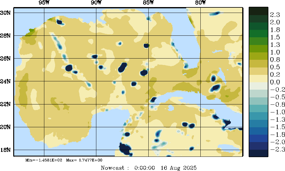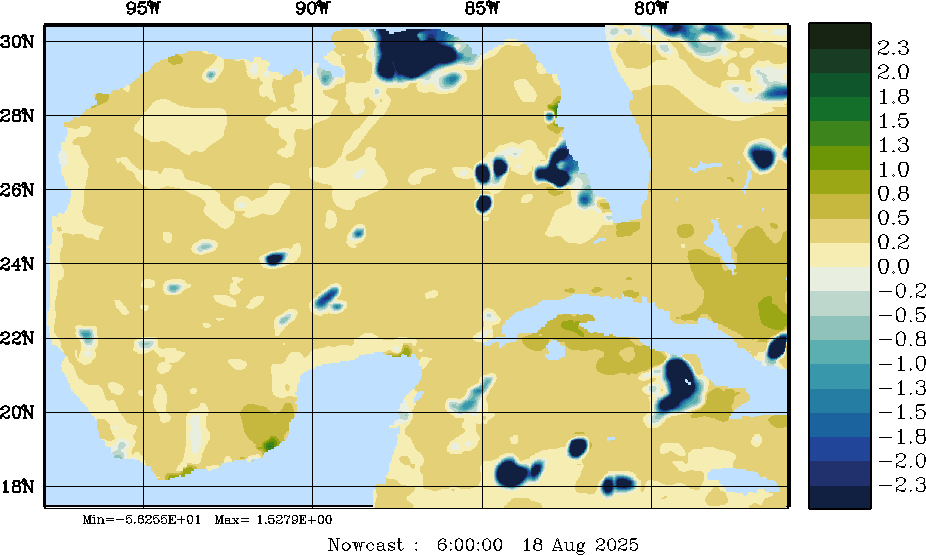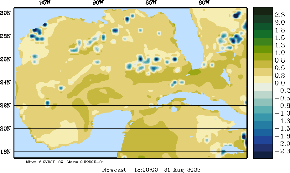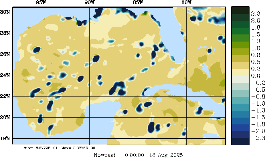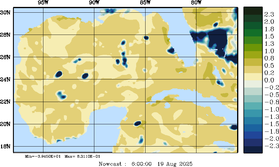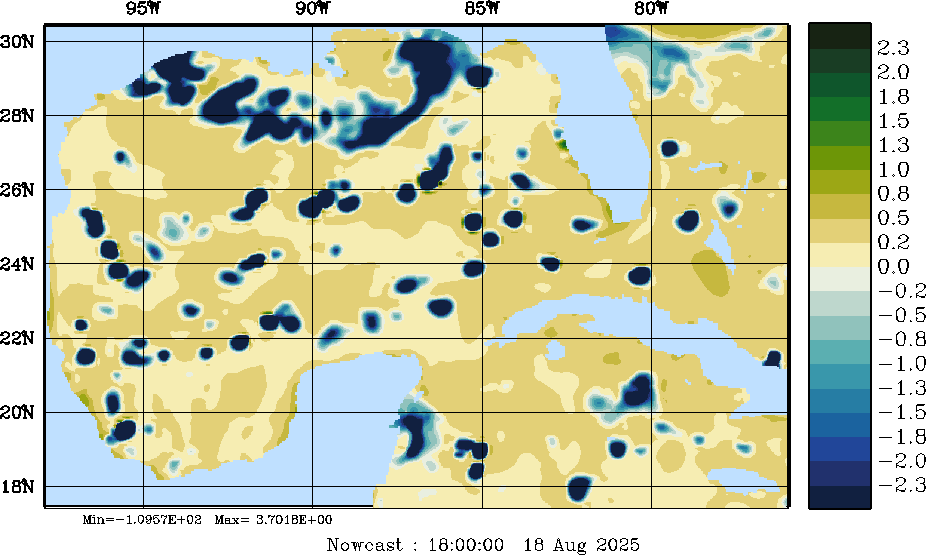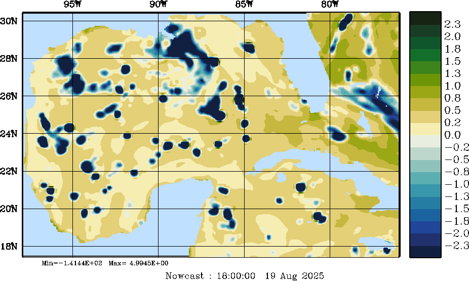 E - P Snapshots (cm/day); processed by MSEAS from merged NCEP fields |