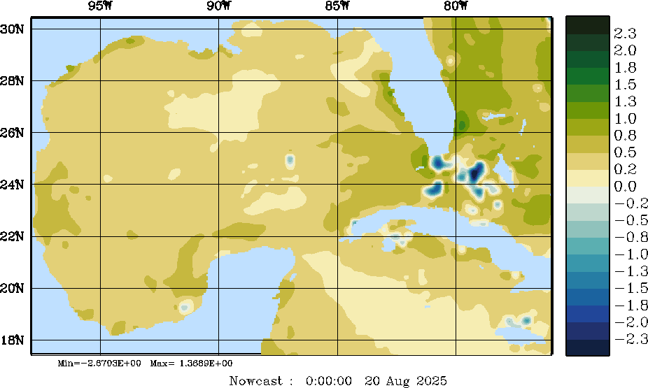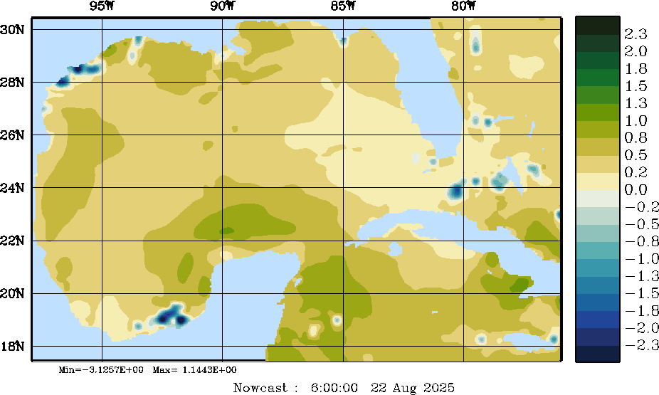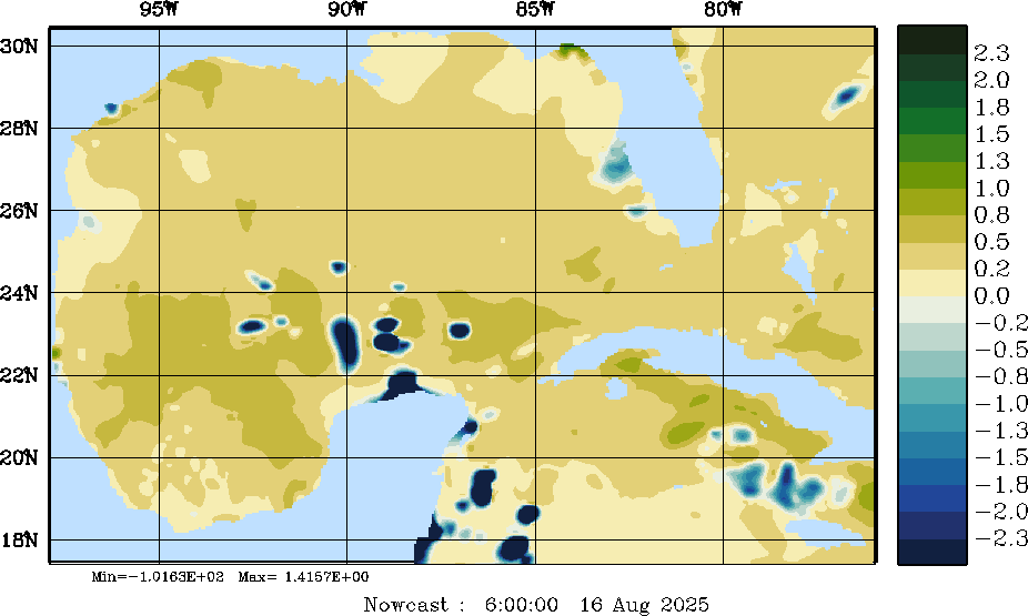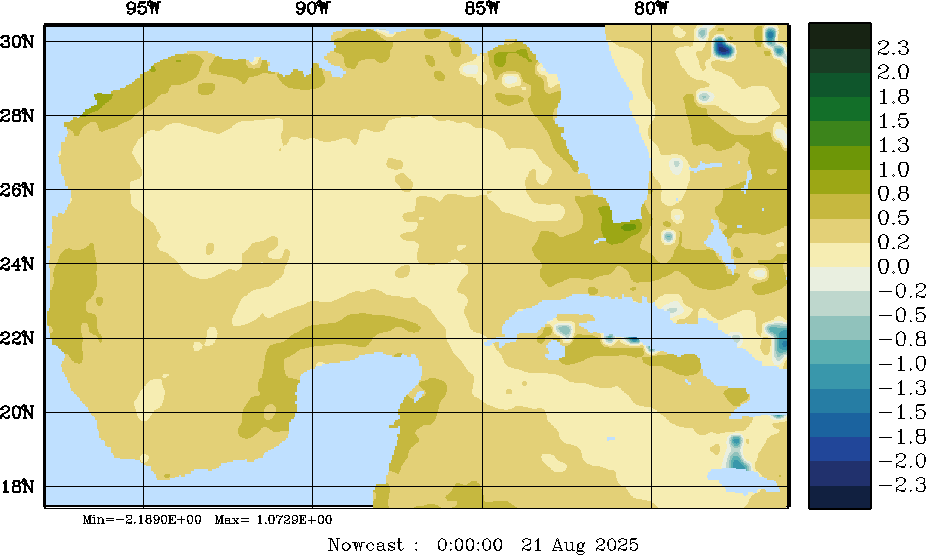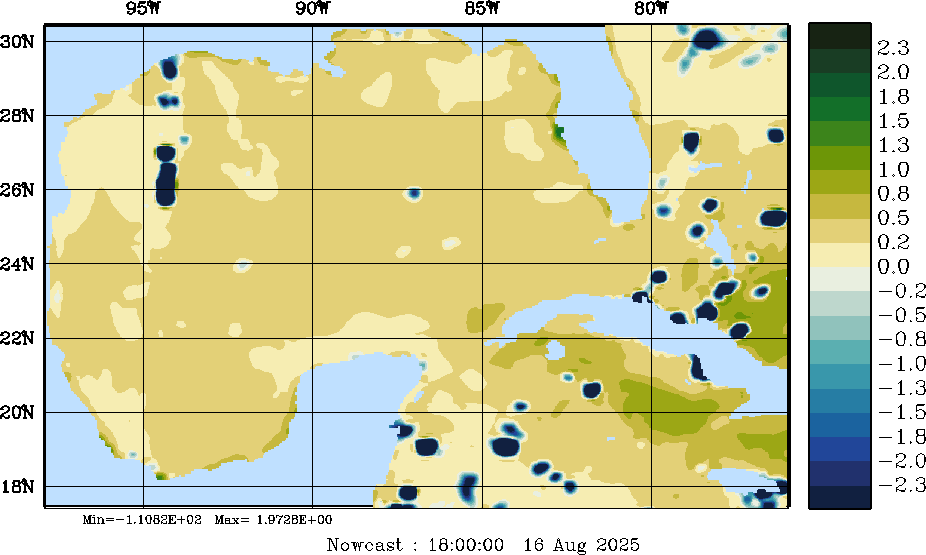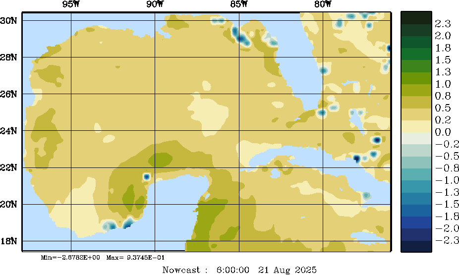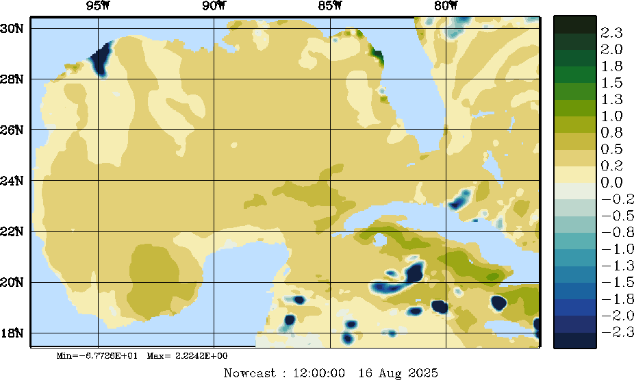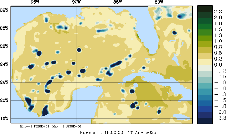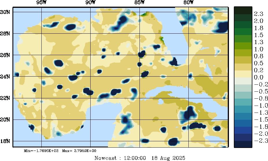 E - P Snapshots (cm/day); processed by MSEAS from merged NCEP fields |