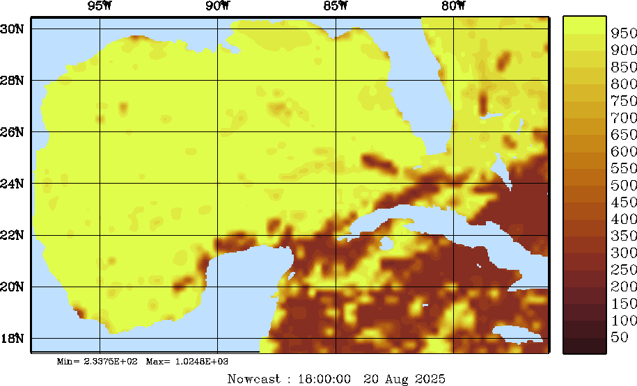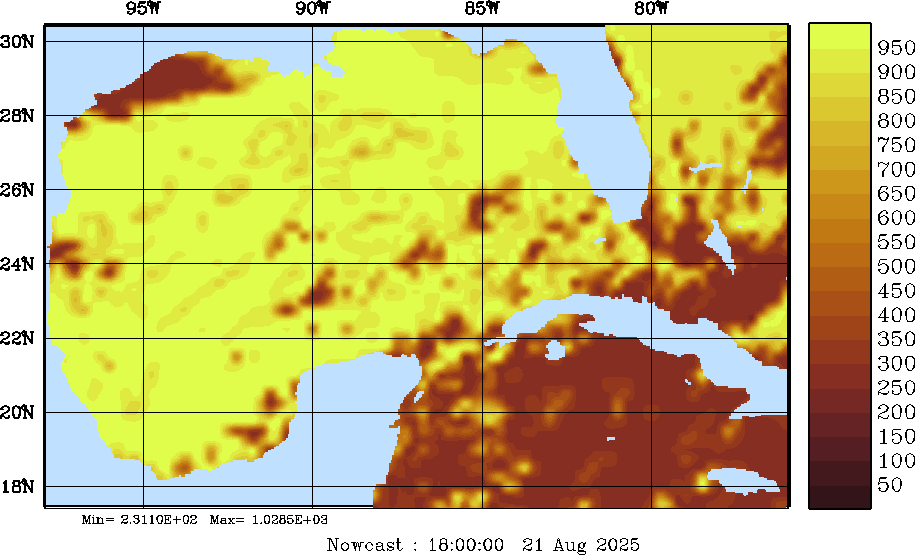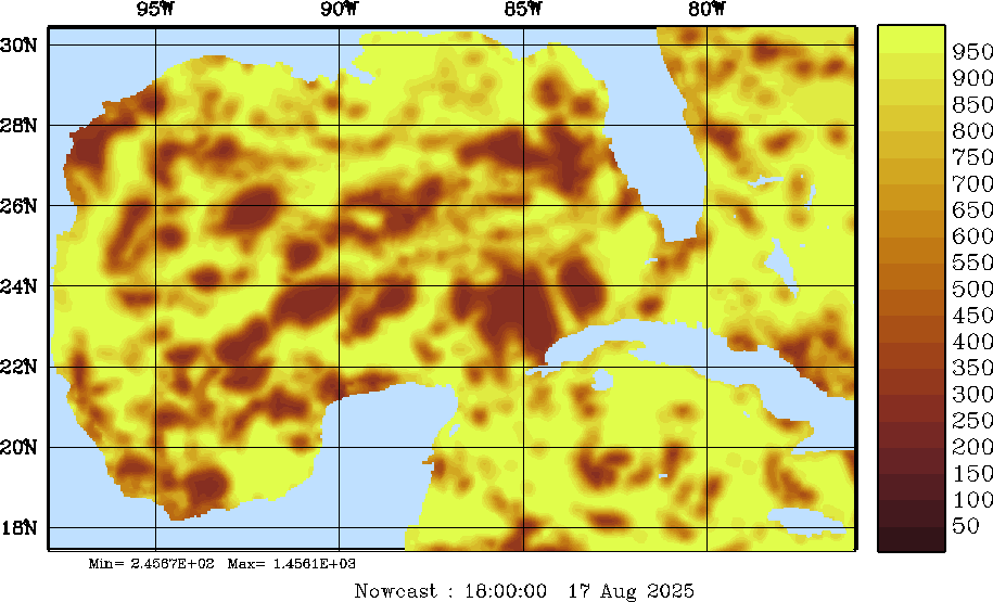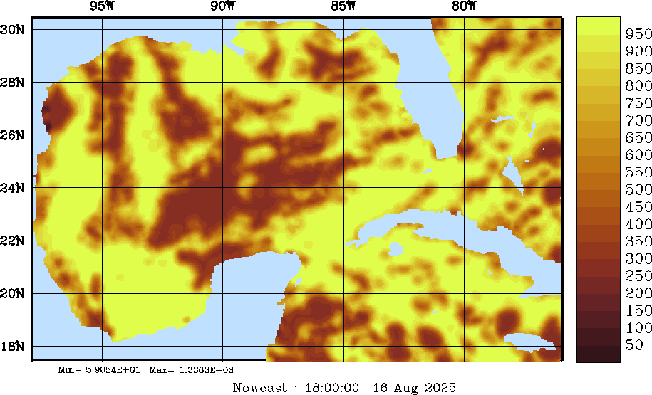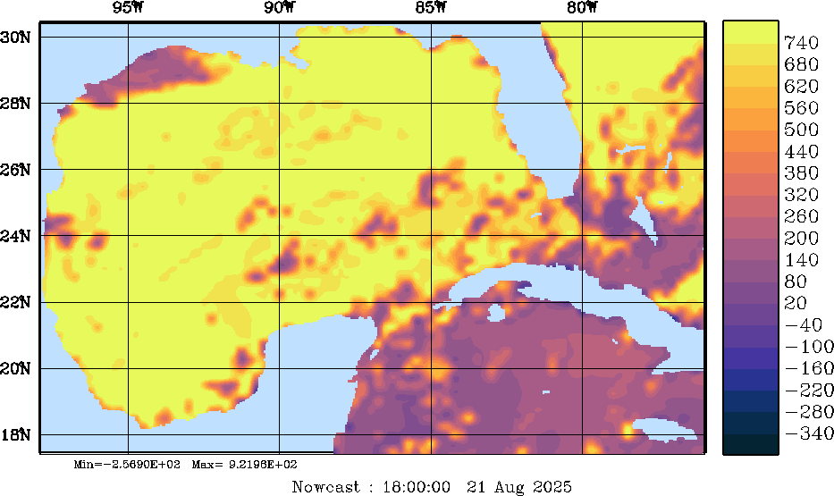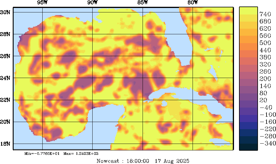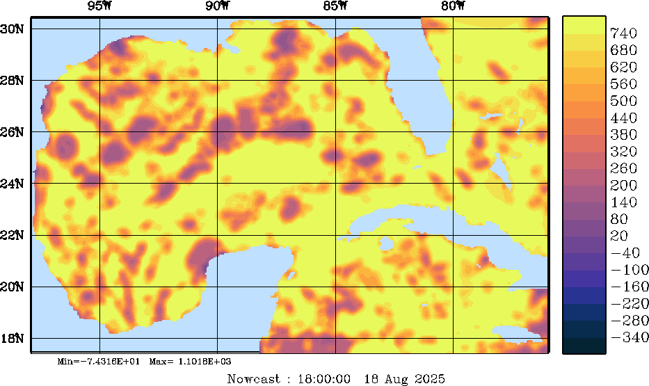 SW Radiation Snapshots (W/m2); processed by MSEAS from merged NCEP fields |